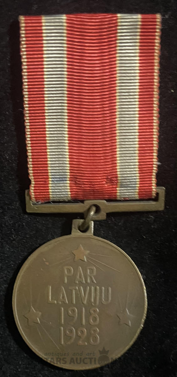 Latvijas Atbrīvošanas kara 10 gadu jubilejas ( 1918.-1928.) medaļa, standarta izmērs, lenta piešūta uz otru pusi