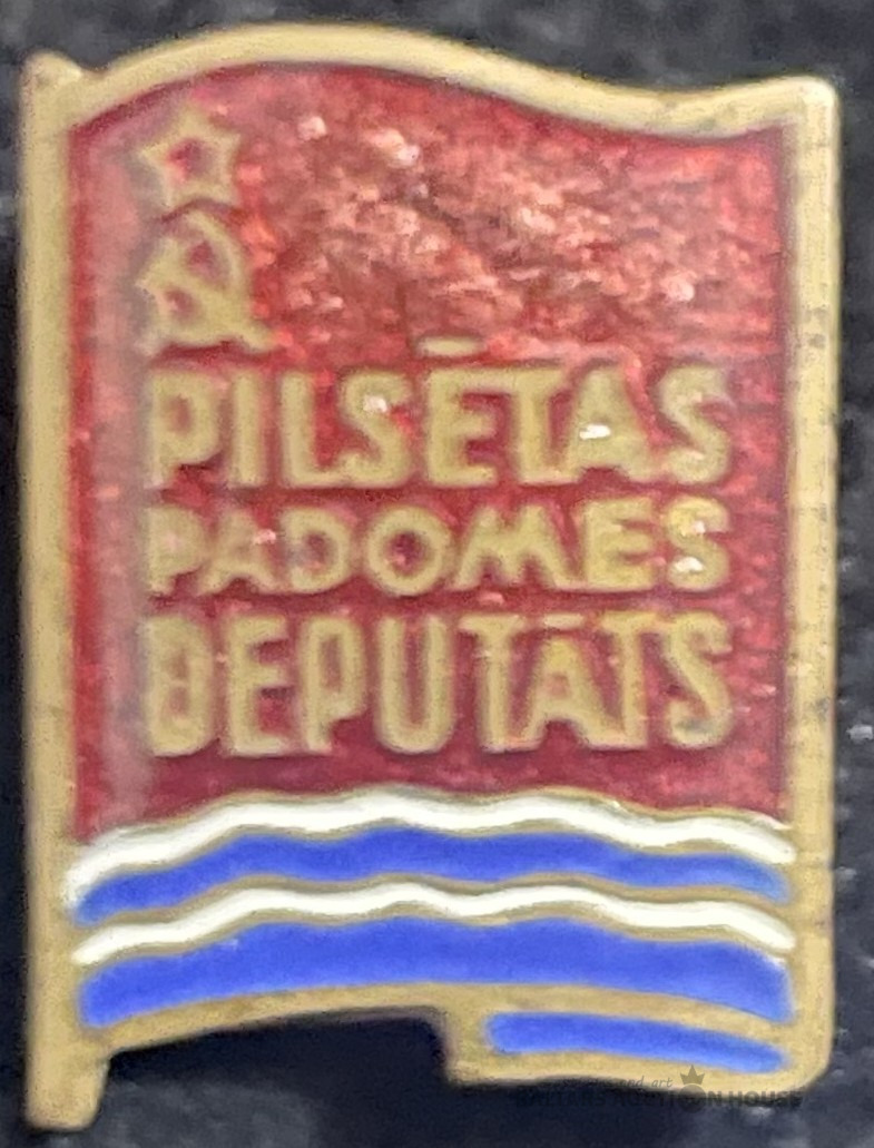 Nozīmīte Ciema Padomes deputāts, PSRS laiki, 2x1,4 cm, misiņš emalja
