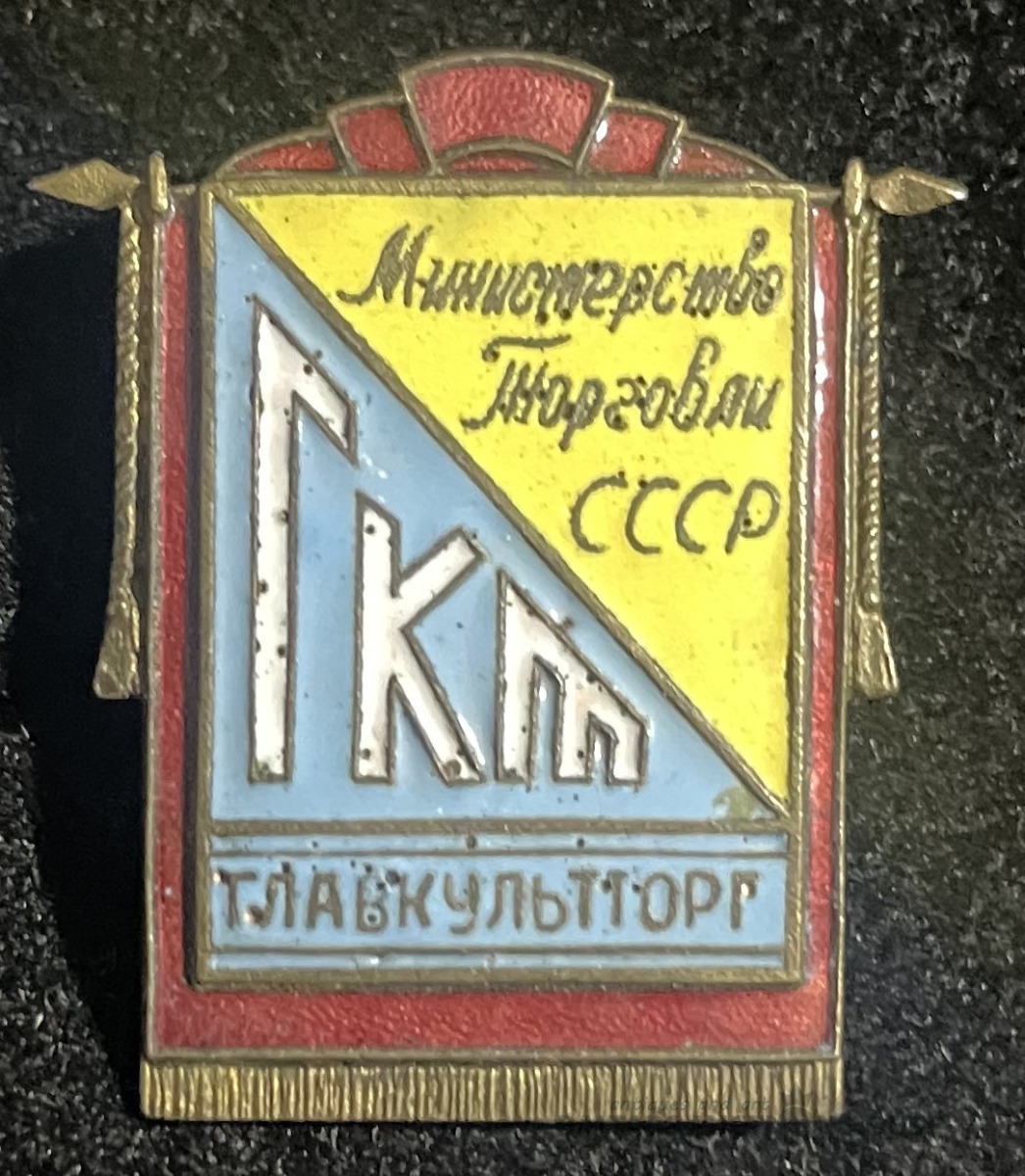 Nozīme Glavkuļttorg, PSRS Tirdzniecības ministrija, misiņš, emalja, 2,9x2,3 cm
