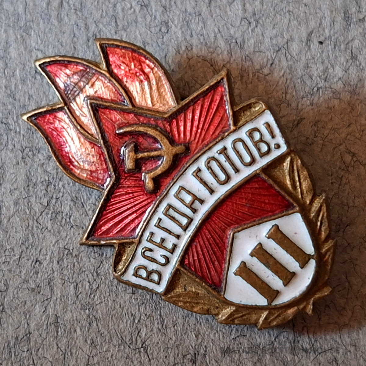 PSRS Pionieru nozīmīte "Vienmēr gatavs!" 3. klase. Nozīmīte tika piešķirta trešās klases skolēniem, kuri iestājās Pionieru organizācijā. Uz zīmes ir uzraksts "Vienmēr gatavs!" Tā tika nēsāta kreisajā krūšu pusē kā piederības organizācijas biedram simbols. Šis 3. klases nozīmītes dizains pastāvēja no 1952. līdz 1967. gadam.
