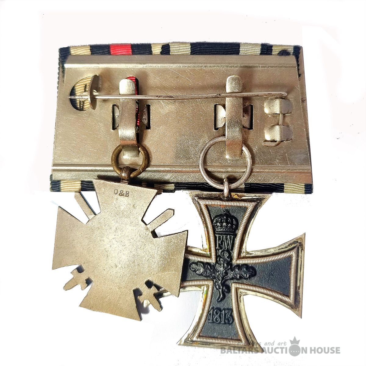 Lentes stienis diviem Vācijas militārajiem apbalvojumiem no Pirmā pasaules kara: Dzelzs krusta II šķiras (pa kreisi) un Pirmā pasaules kara Goda krusta 1914./1918. (pa labi). Lielisks kolekcionējams stāvoklis.