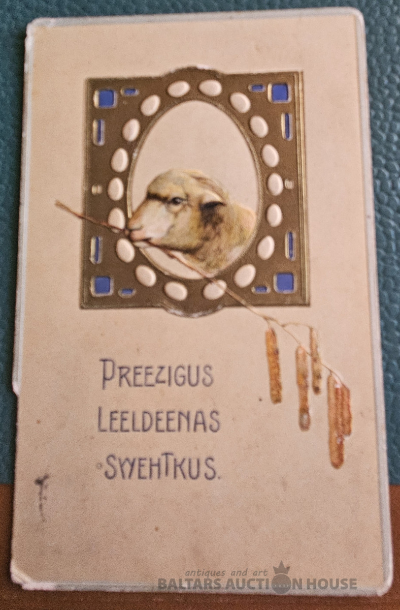 Pastkarte .Priecīgas Lieldienas svētkus. Zīmējis A.Apsītis.