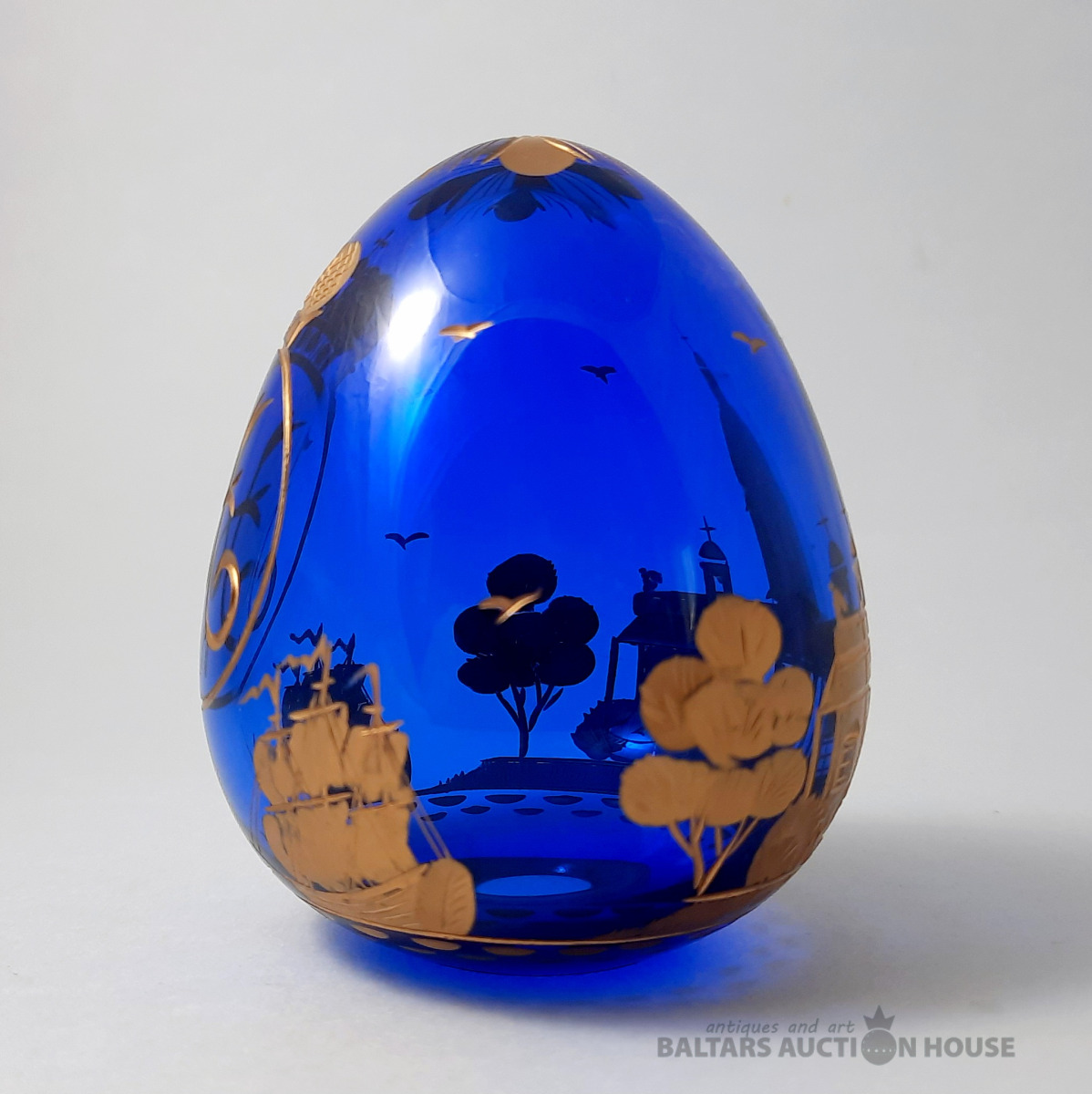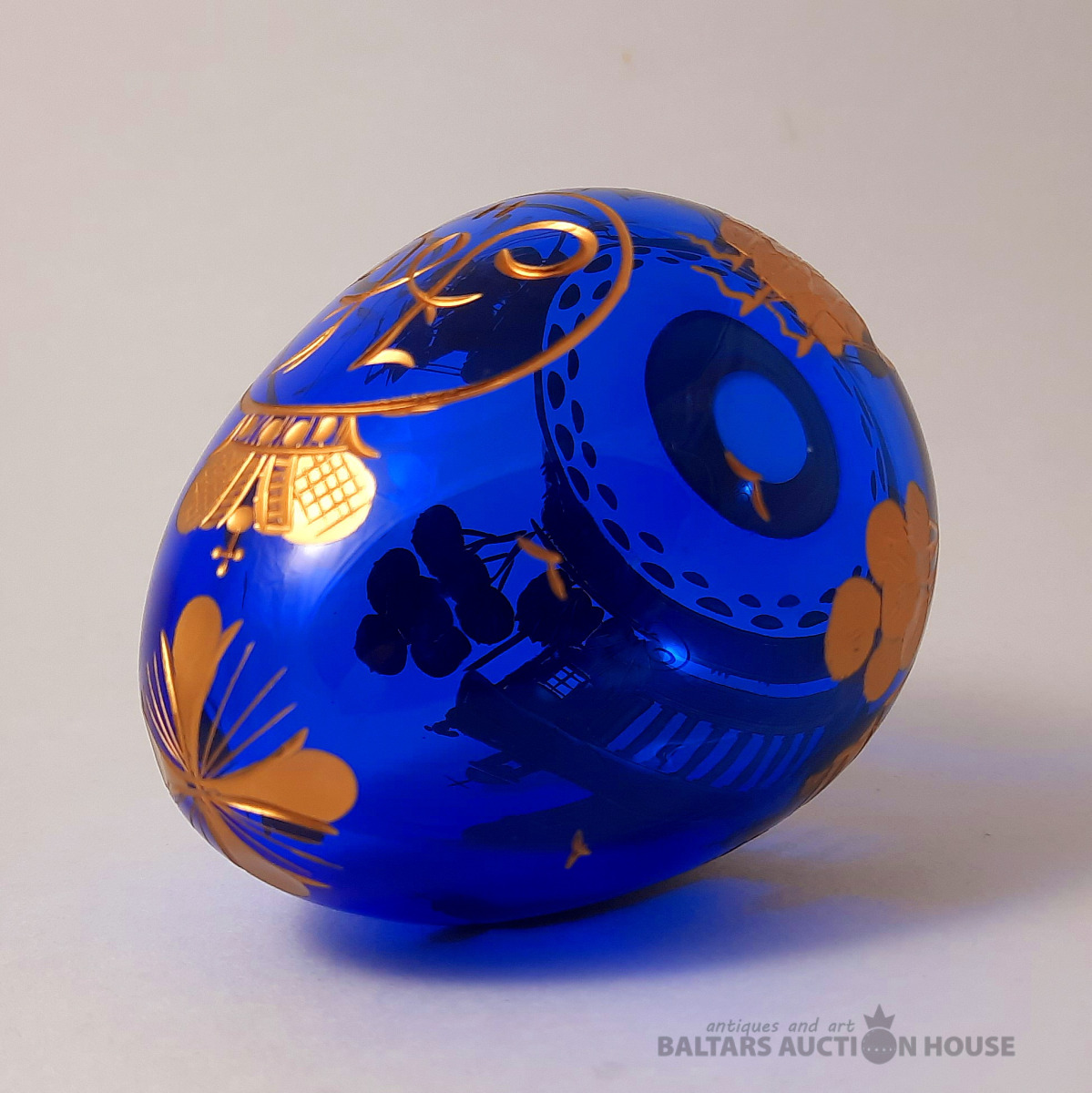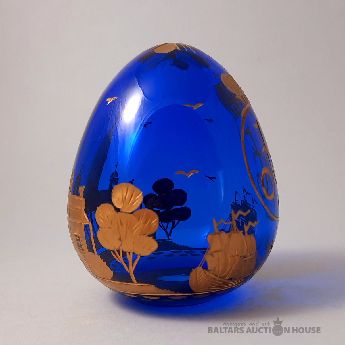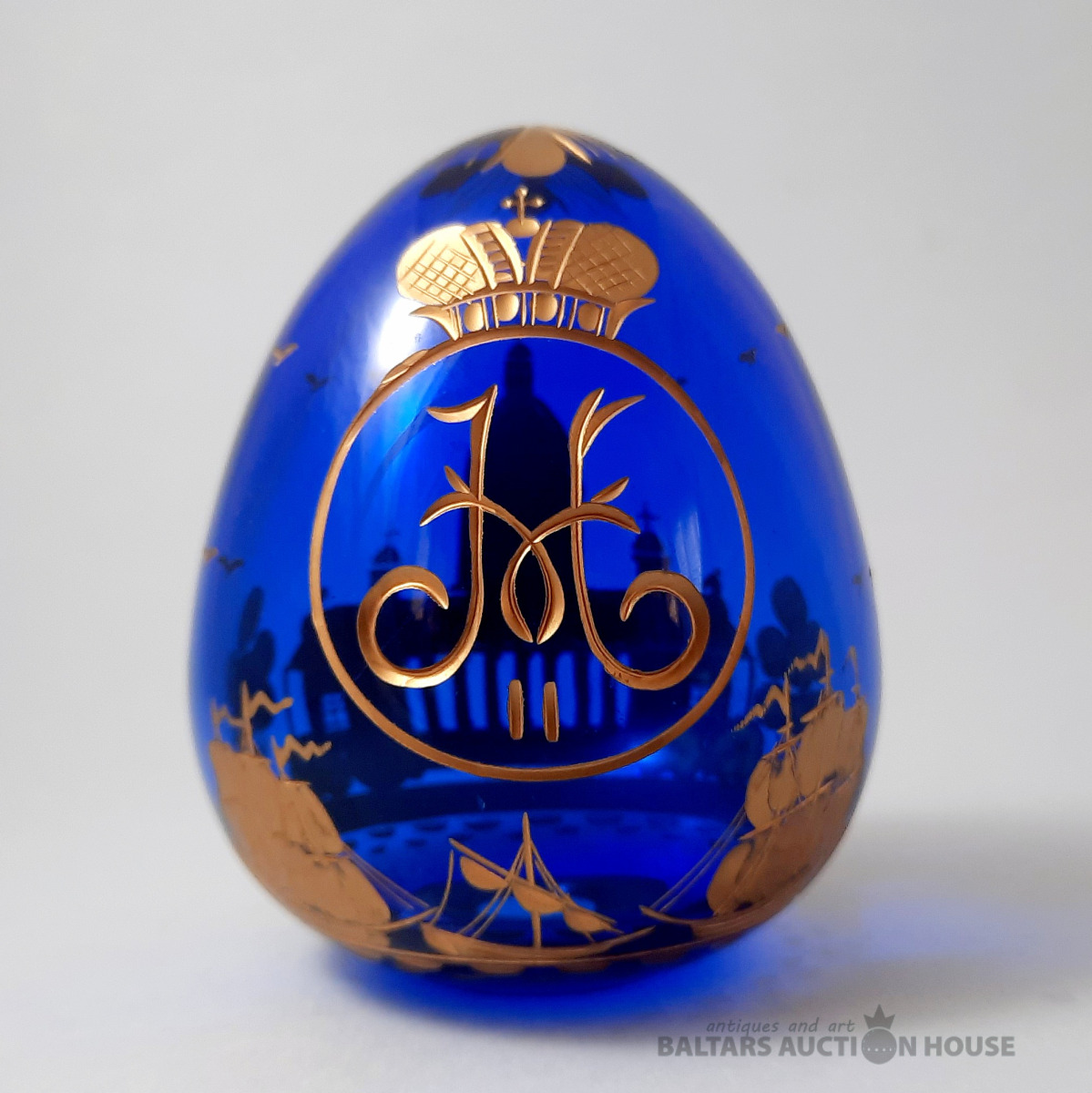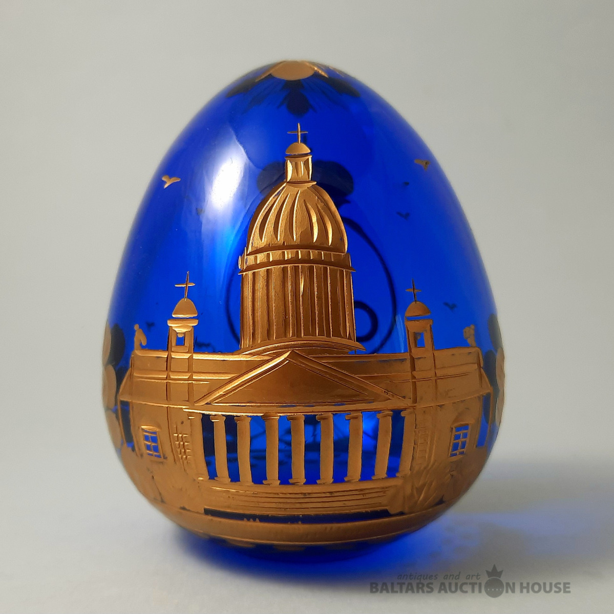 Svētā Īzaka katedrāles ola. Kobalta stikls, gravējums, pulēšana, apzeltīšana. Roku darbs. 1995. FABERGE. Augstums: 9 cm.