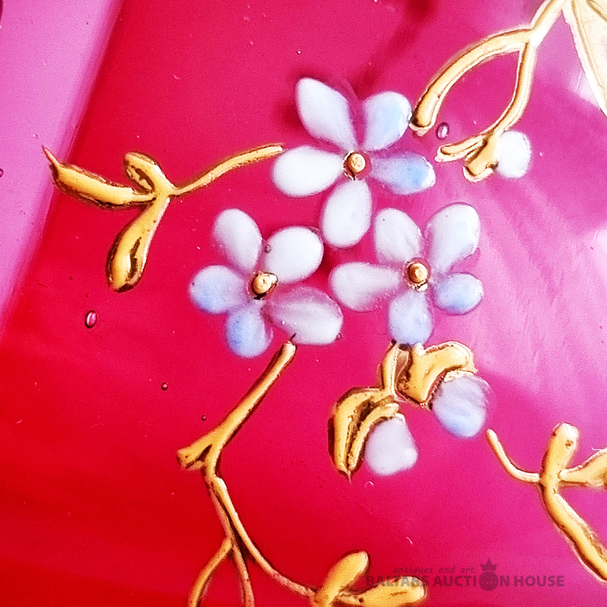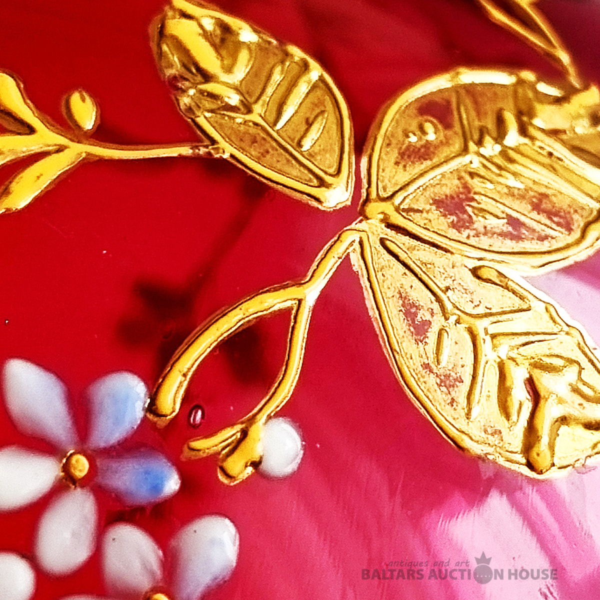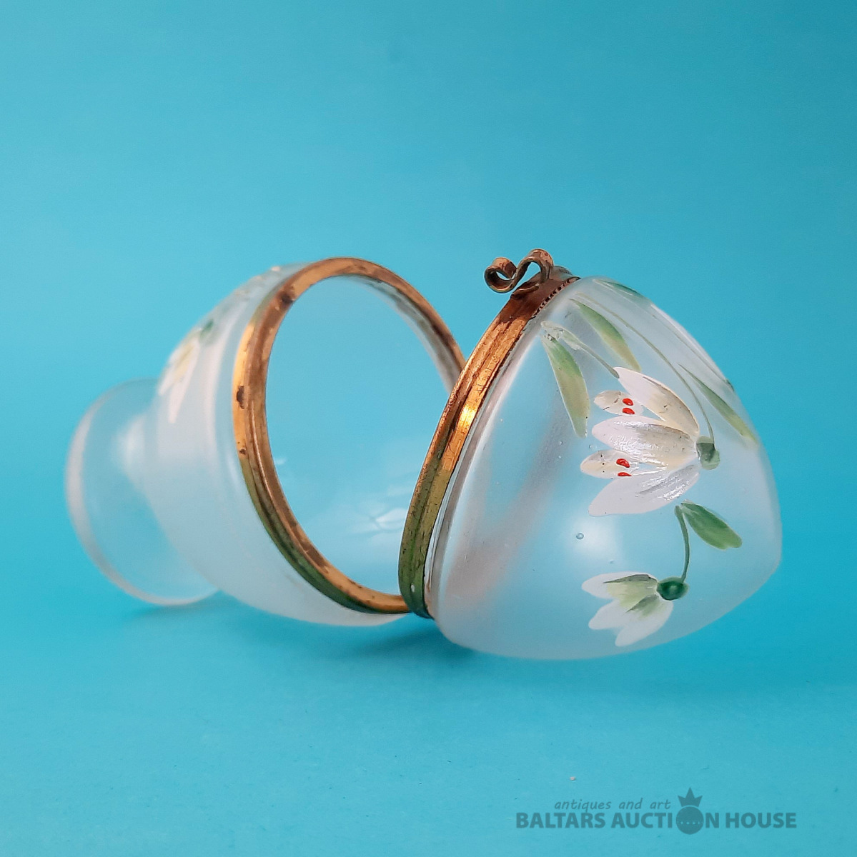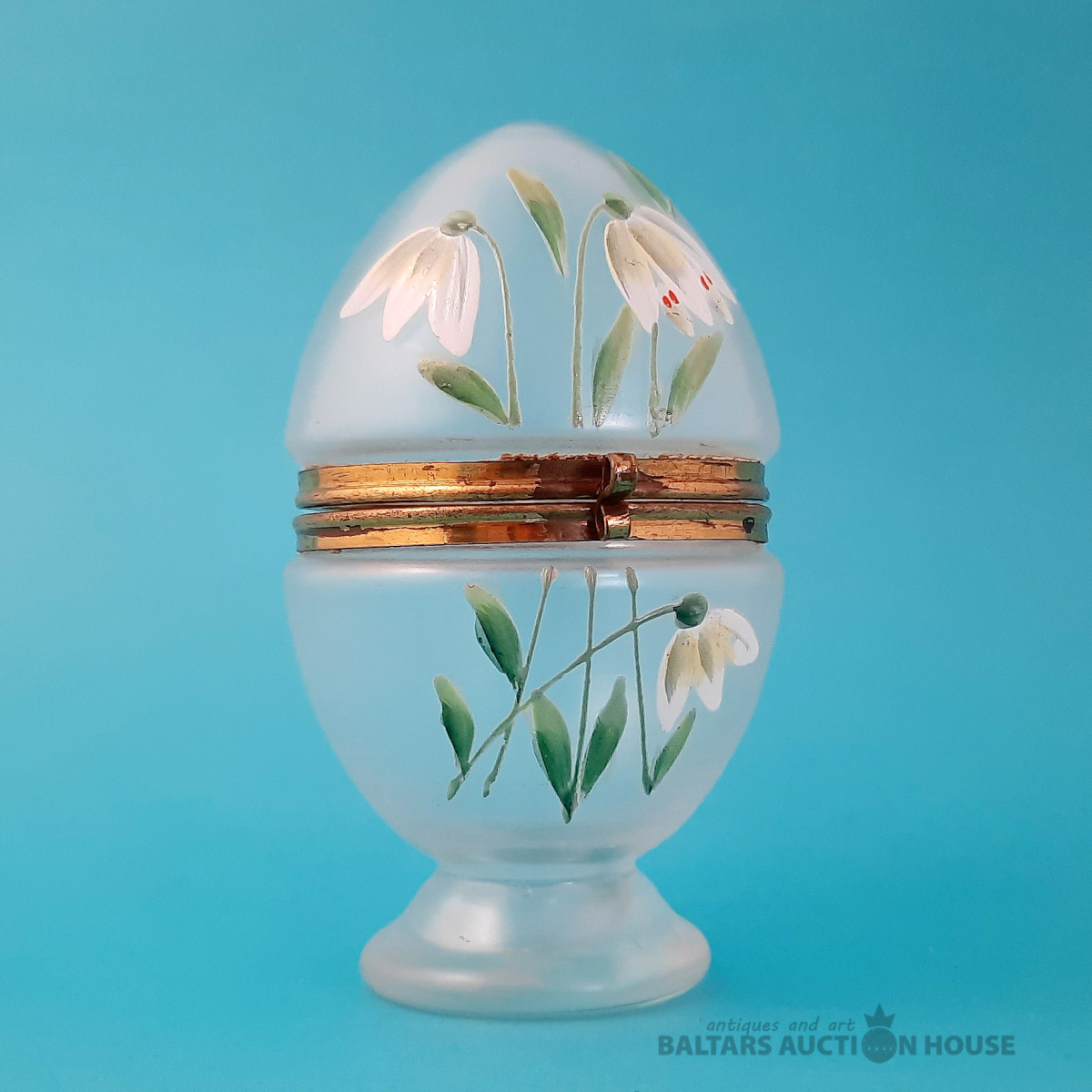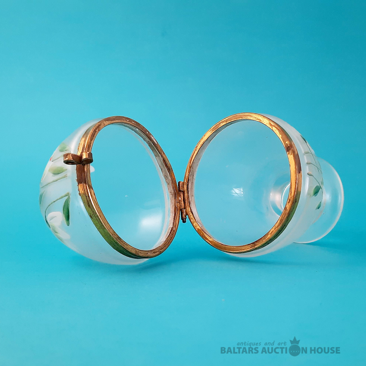 Antīka "olu" kārba, stikls, emaljas gleznojums, (maijpuķītes), misiņš. Eiropa.