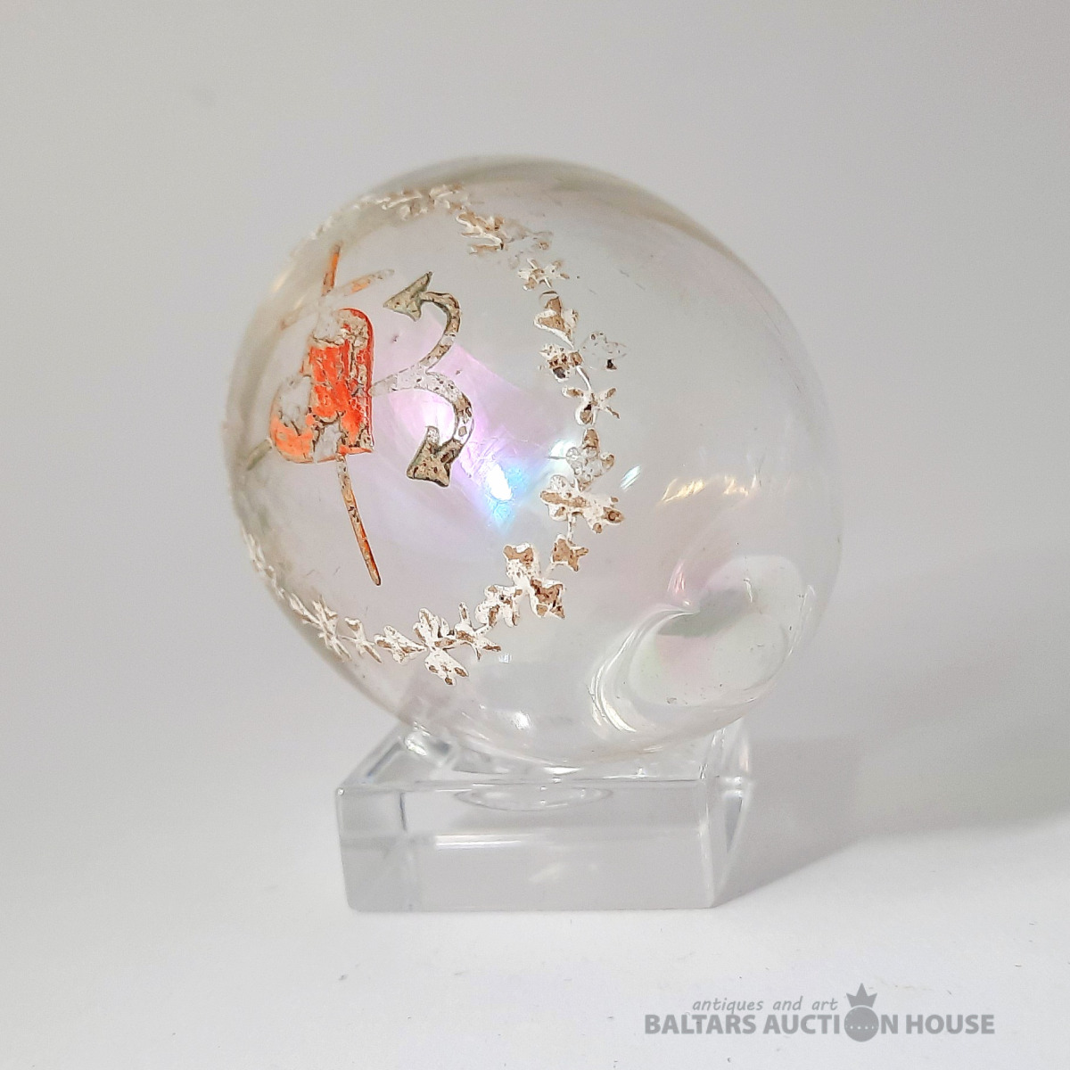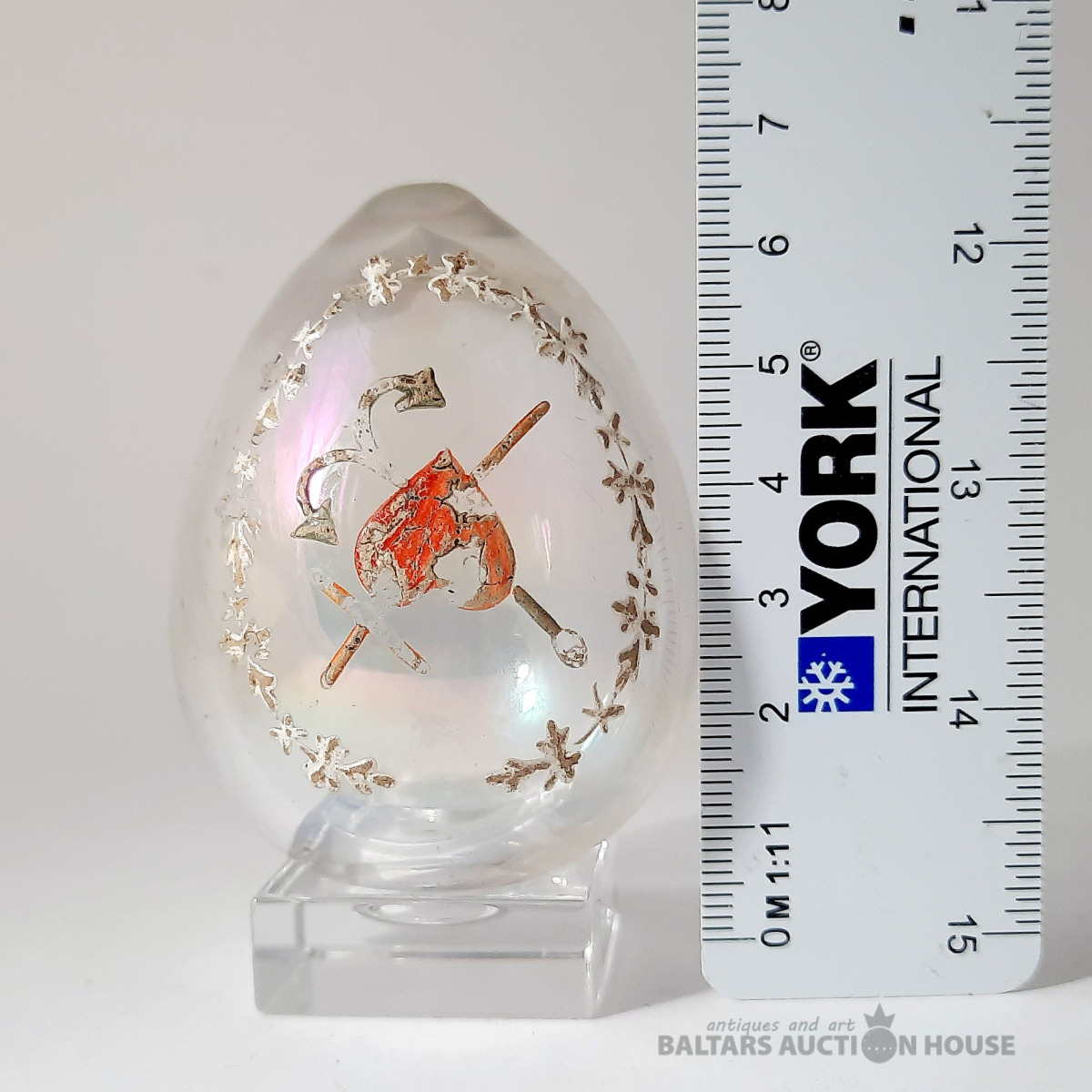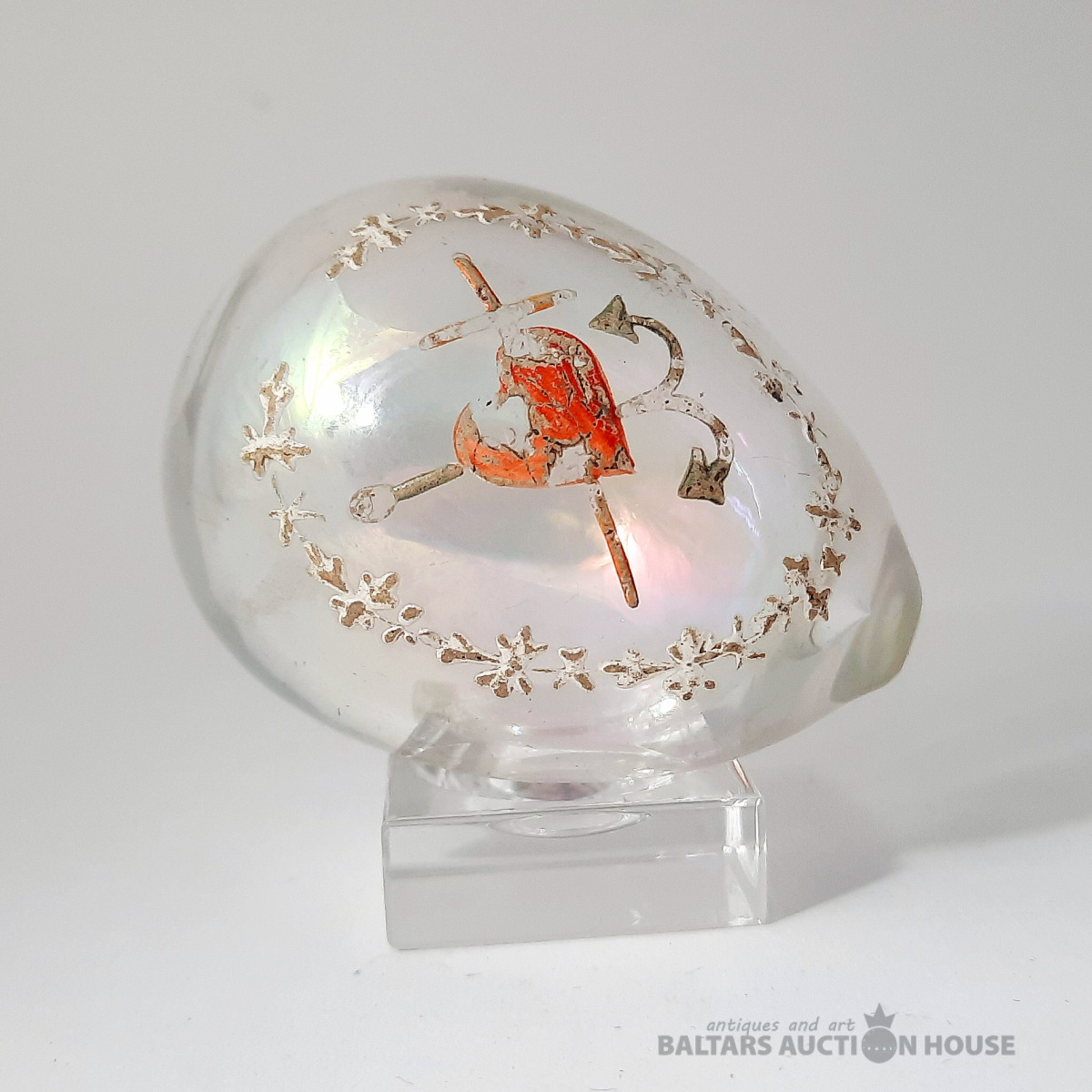 Lieldienu dāvana! Antīka Lieldienu ola, 6 cm, stikls. "TICĪBA-CERĪBA-MĪLESTĪBA". Krievija pirms 1917. gada. Lietojuma pazīmes.