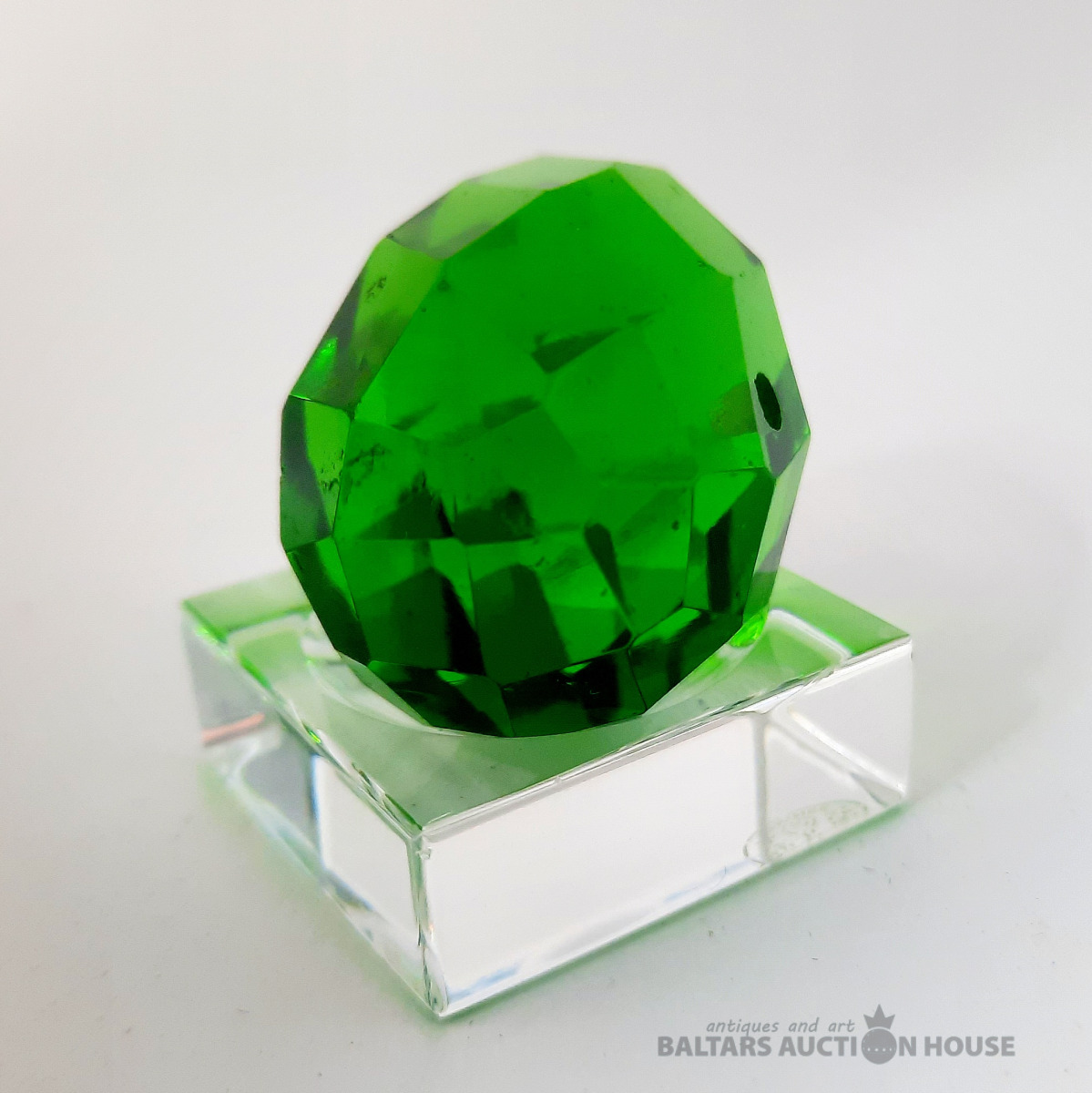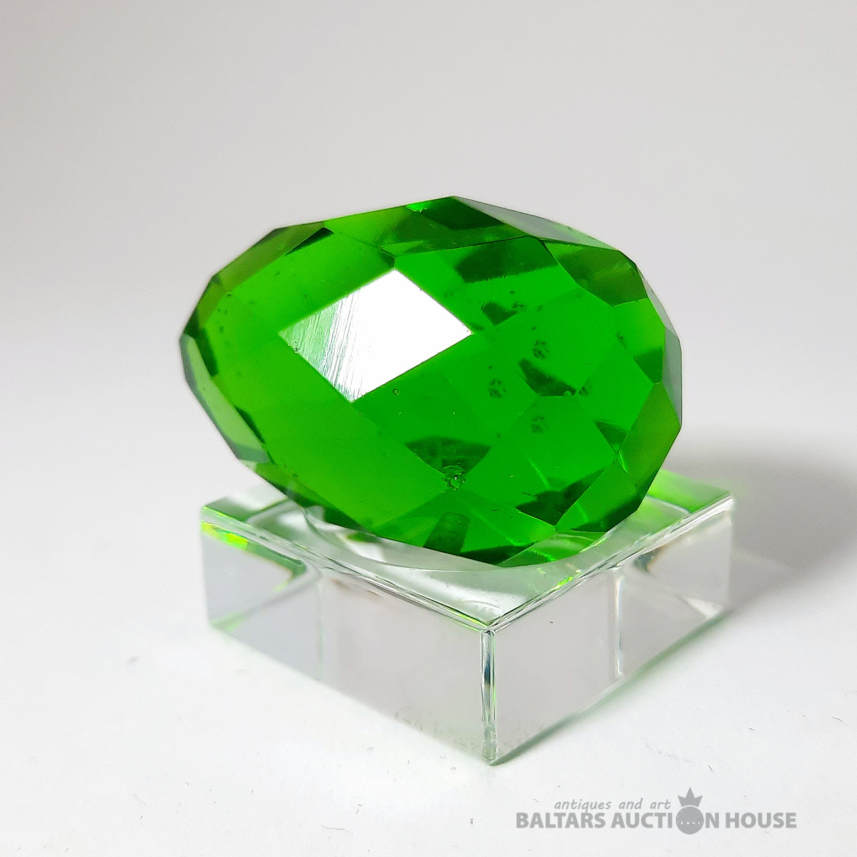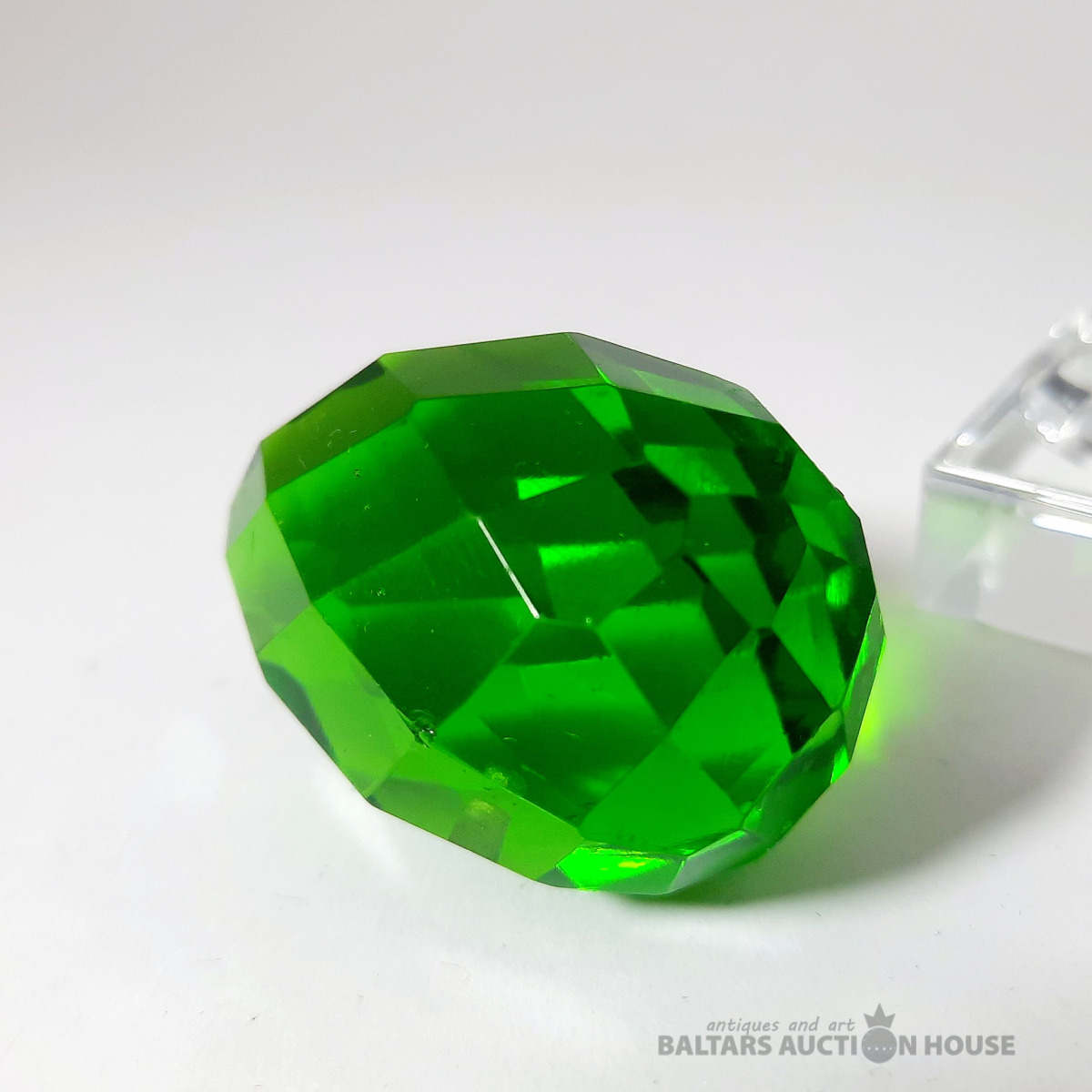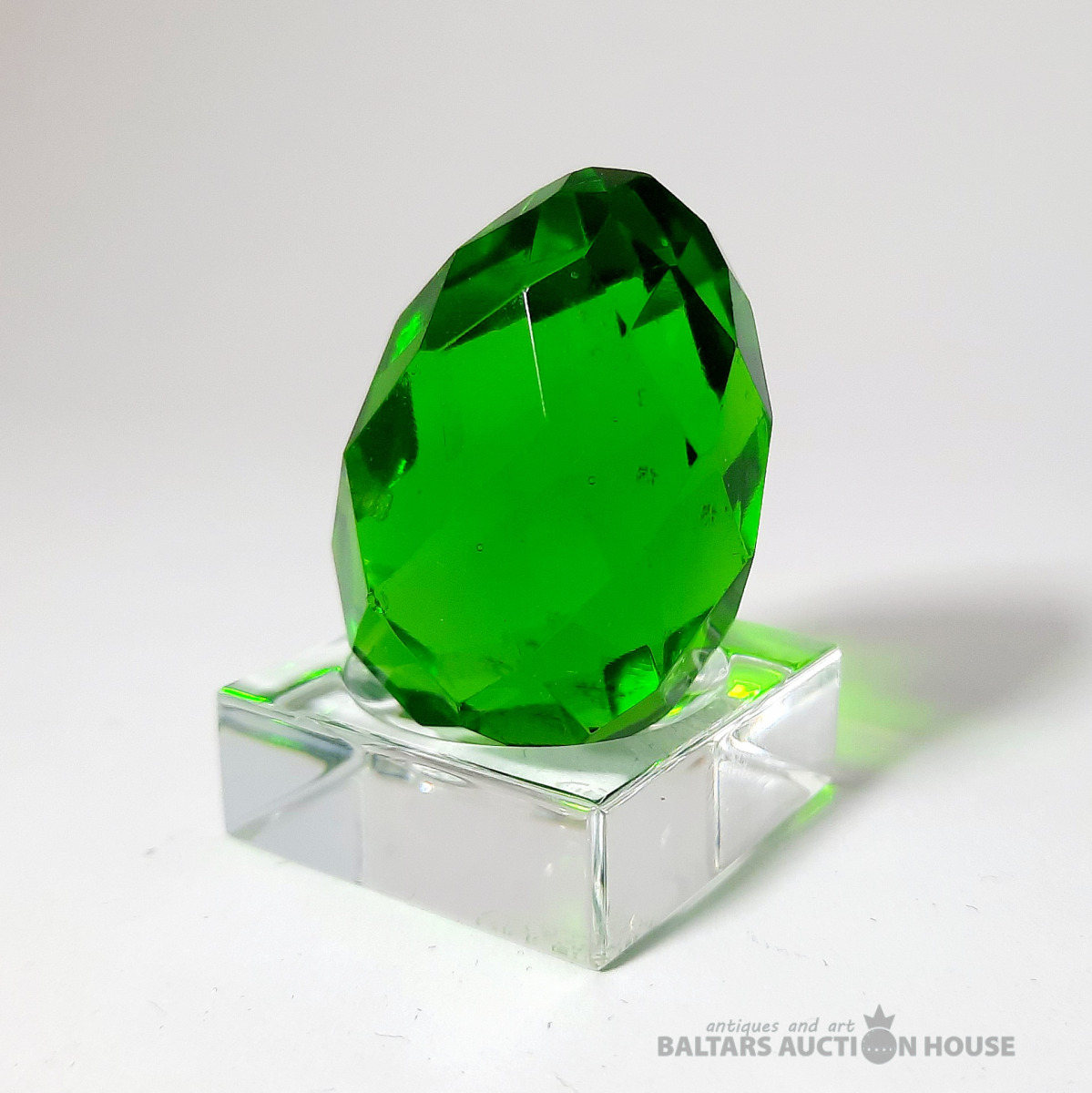 Slīpēta Lieldienu ola. Zaļš stikls. Antīks slīpējums. 20. gadsimta sākums. Augstums: 4 cm., Statīvs nav pārdošanā!!!!!