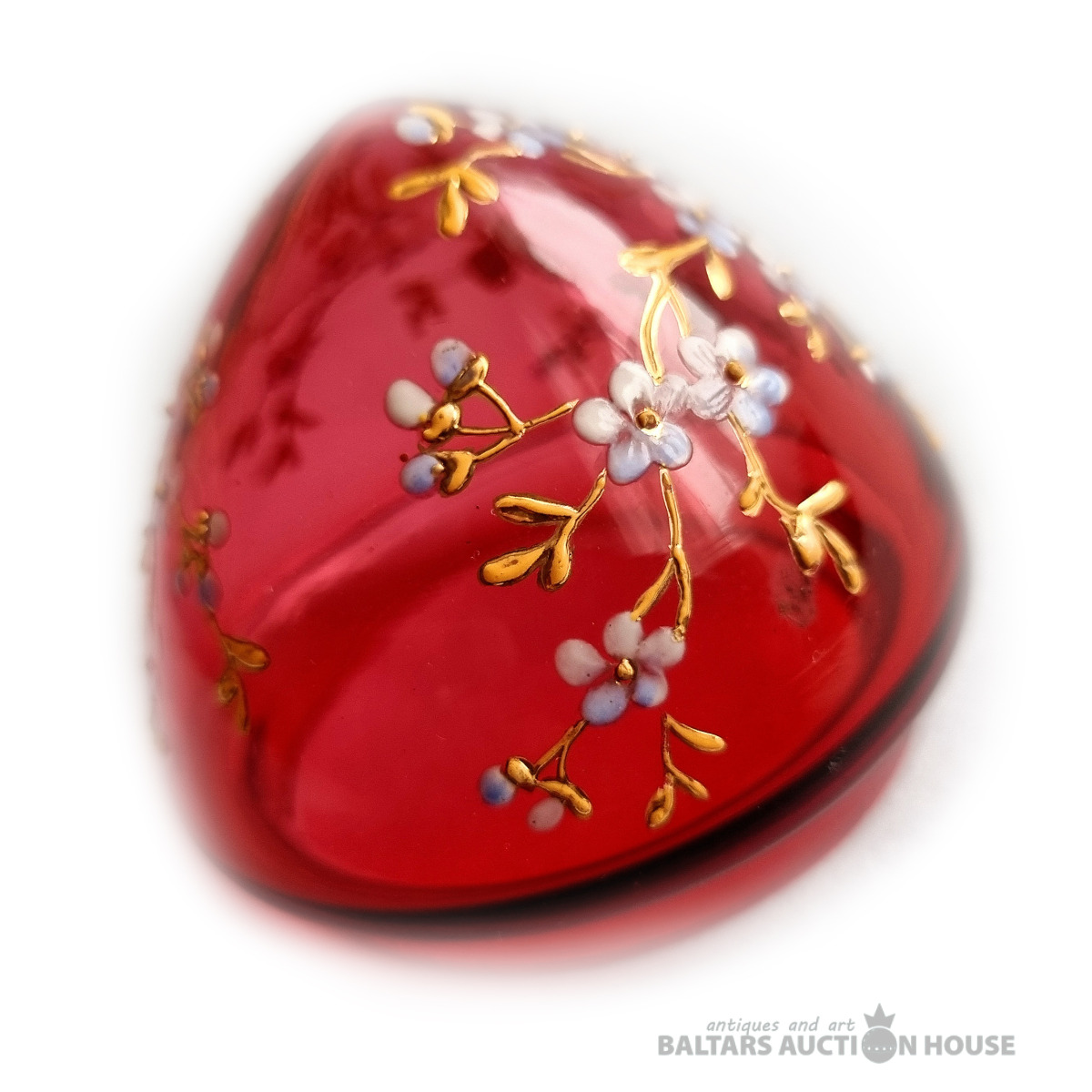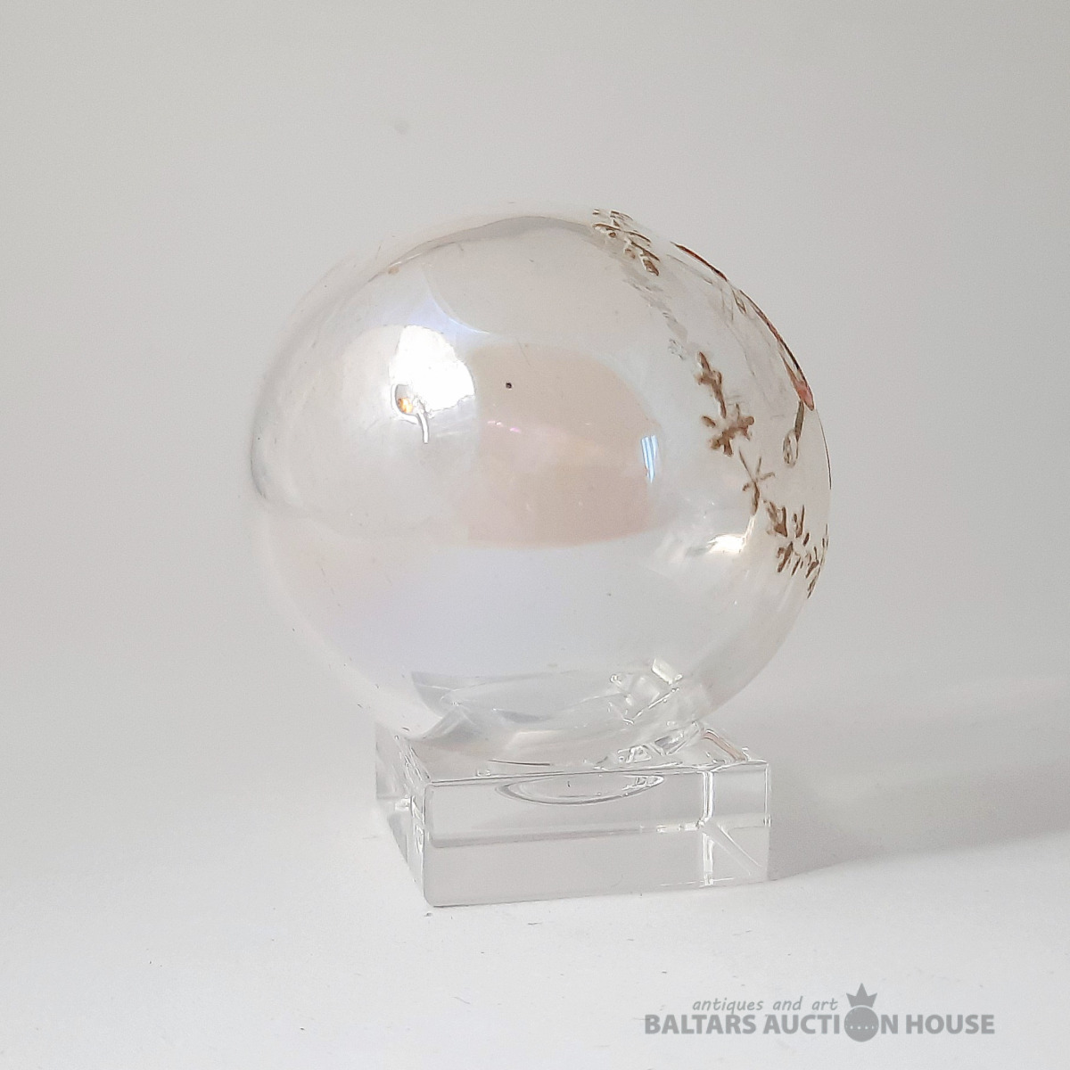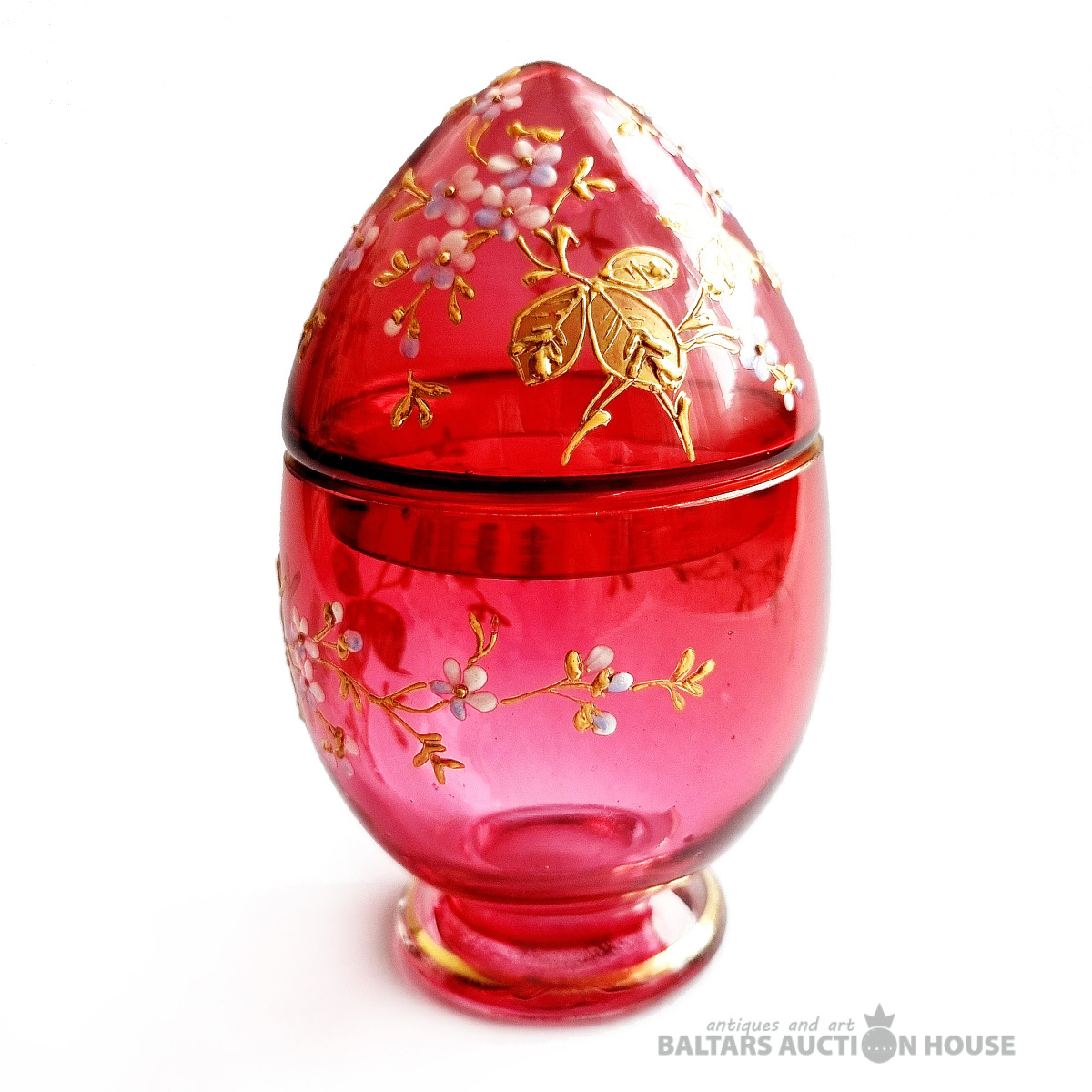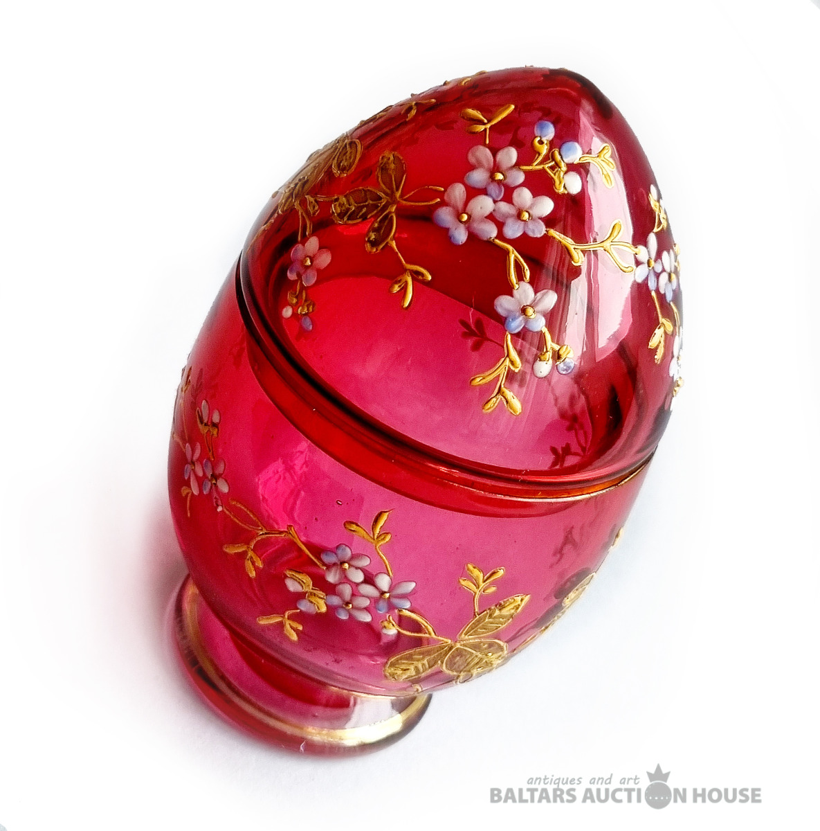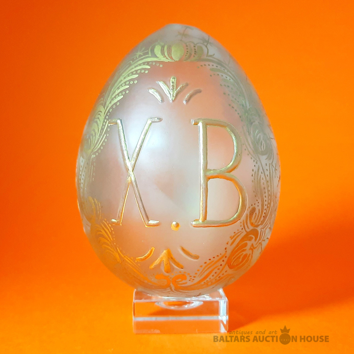 Stikla Lieldienu ola ar ziedu gleznojumu. Valsts: Cariskā Krievija. Vecums: 1890–1910. Izmērs (cm): Augstums 9 cm. Materiāls: Stikls. Stāvoklis: Lieli, Statīvs nav pārdošanā!!!!!