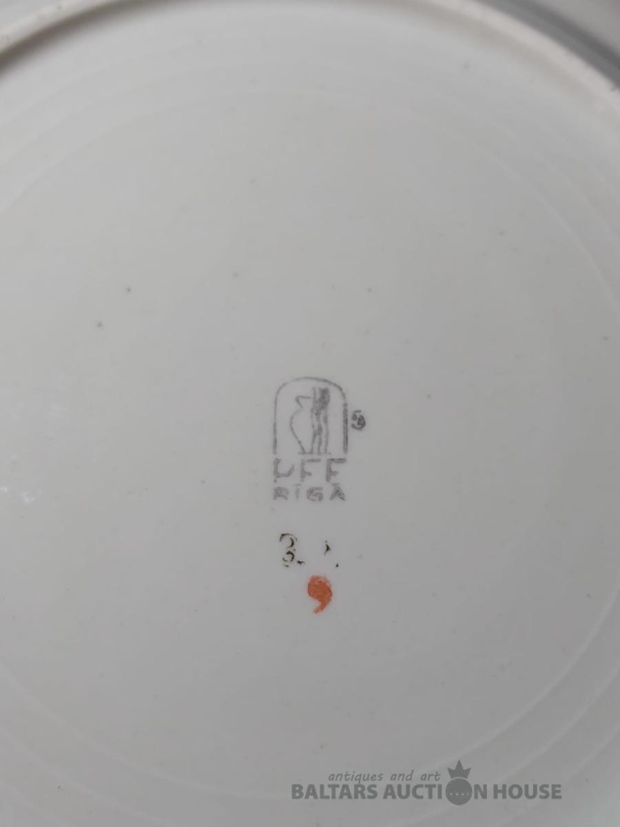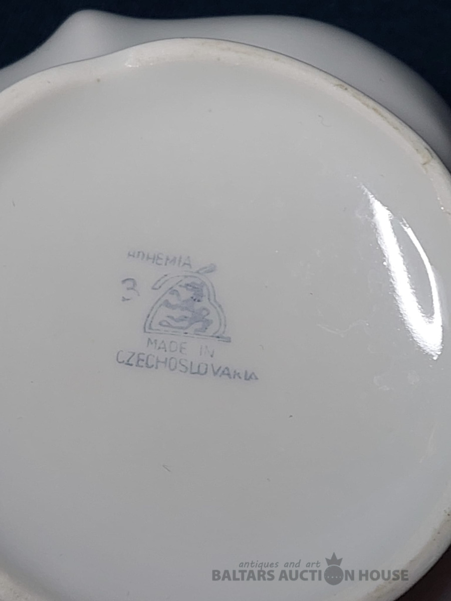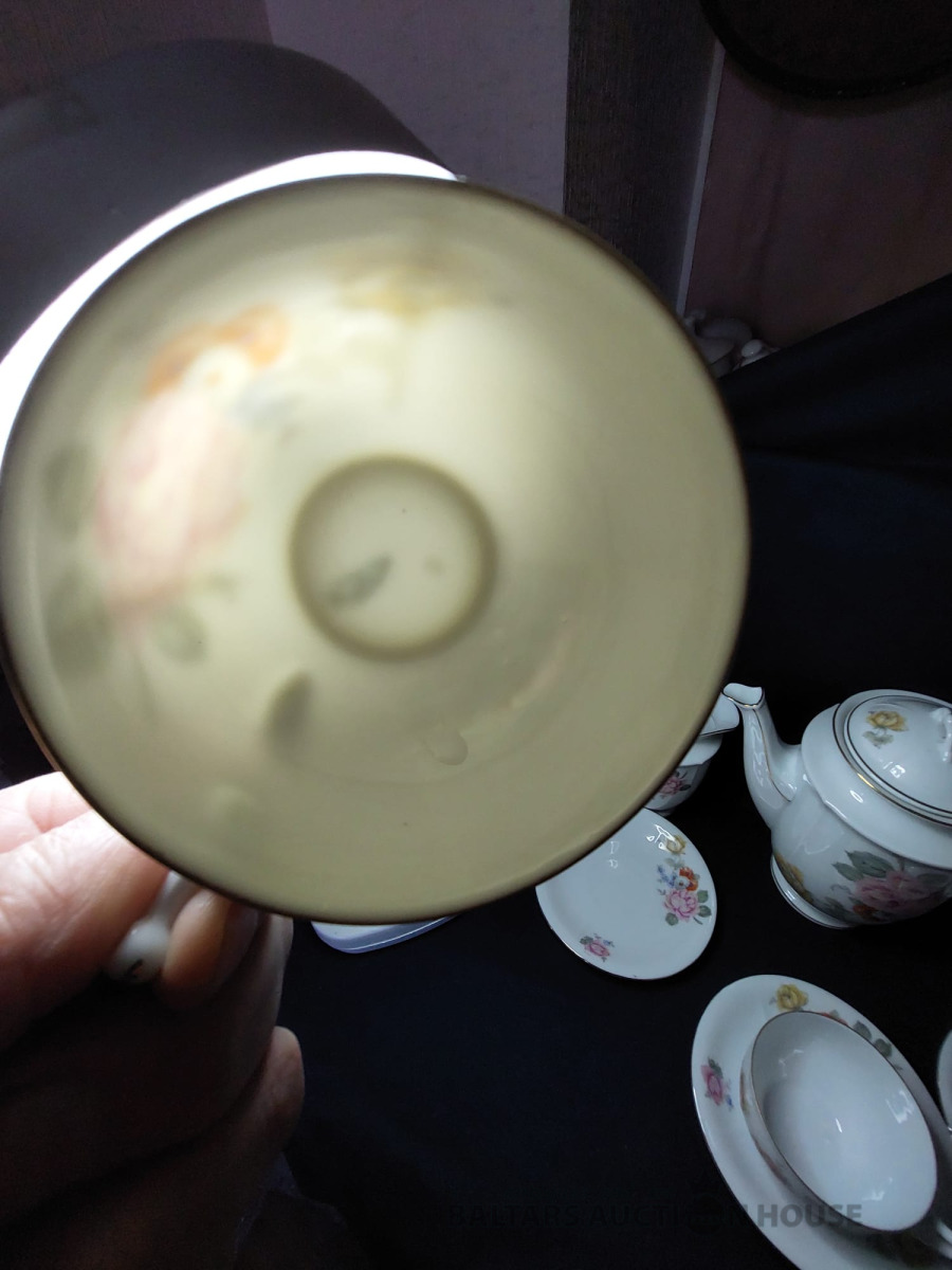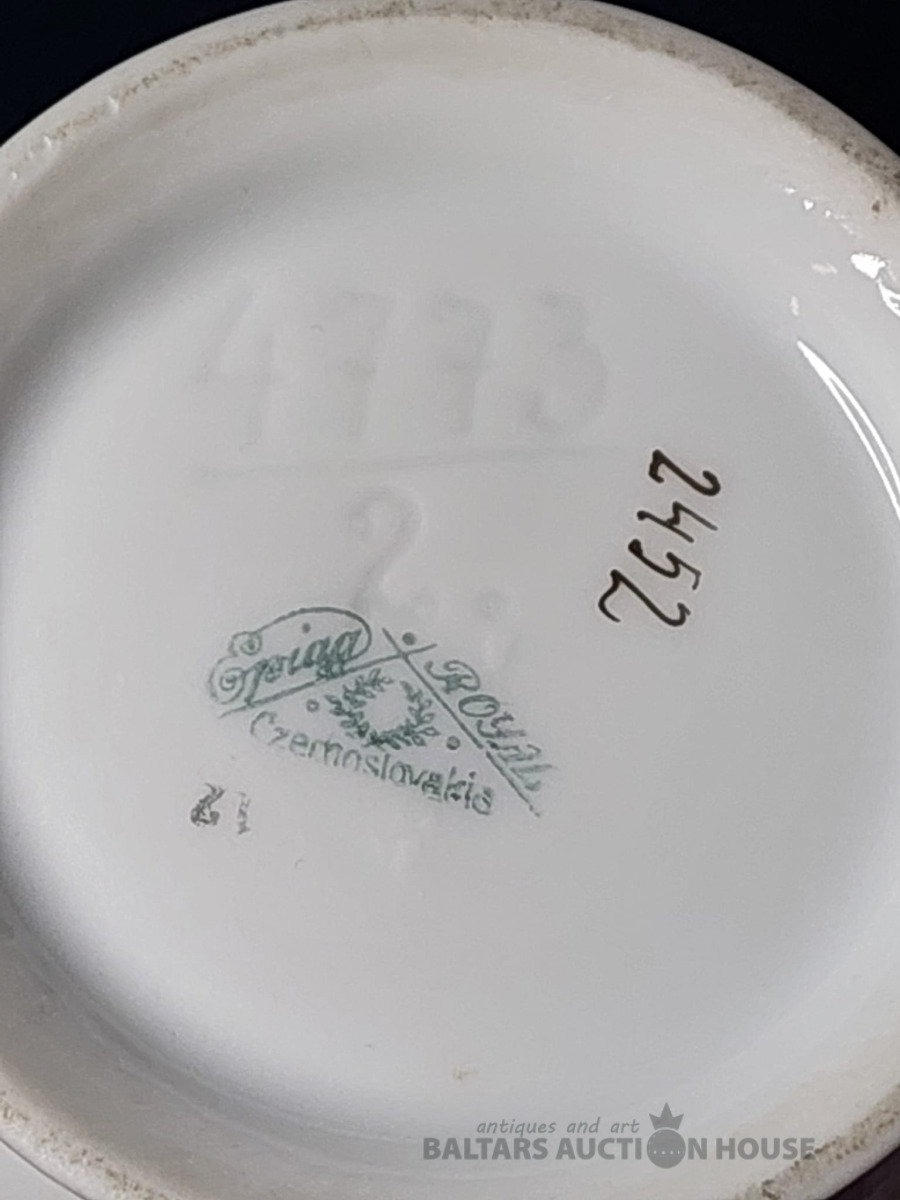 Plānsienas tējas servīze ražotājs: Epiag Royal. Czechoslovakia 1920-30 gadi, , Servīzē 4 personām ar dekolu ''kazu rozes''. Kannai ir plaisa, kura lietošanai netrauca.