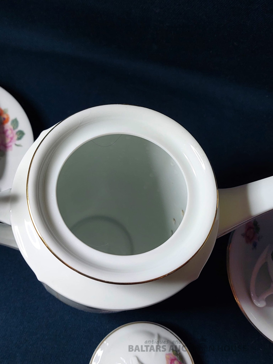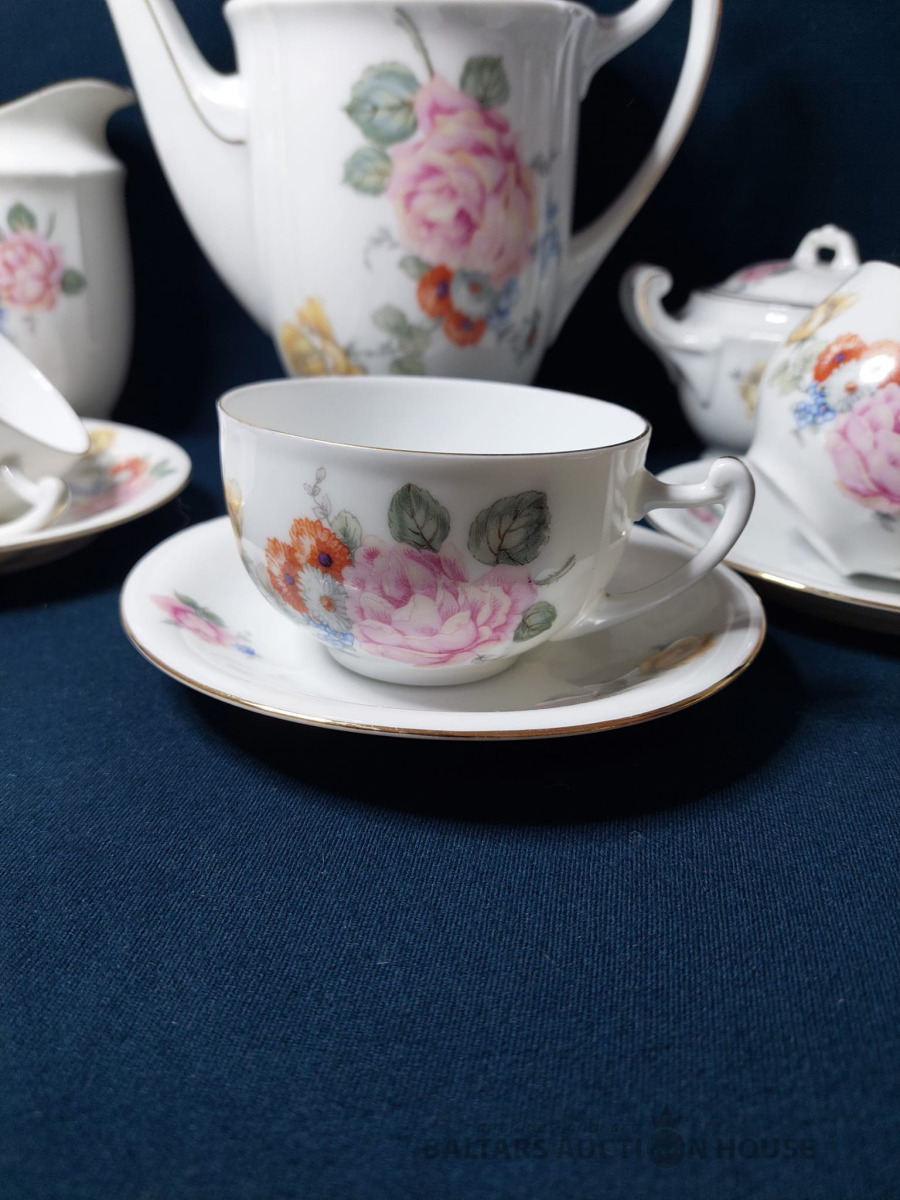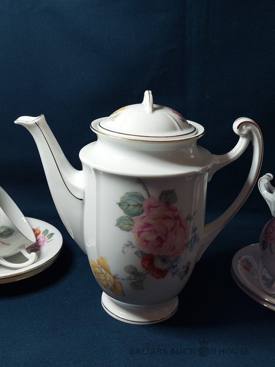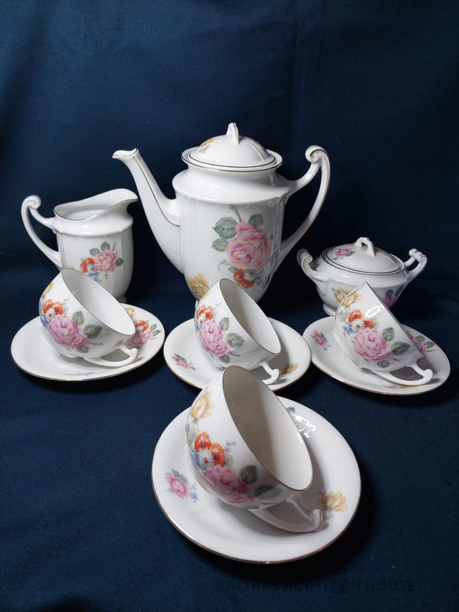 Plānsienas tējas servīze ražotājs: Epiag Royal. Czechoslovakia 1920-30 gadi, , Servīzē 4 personām ar dekolu ''kazu rozes''. Kannai ir plaisa, kura lietošanai netrauca.