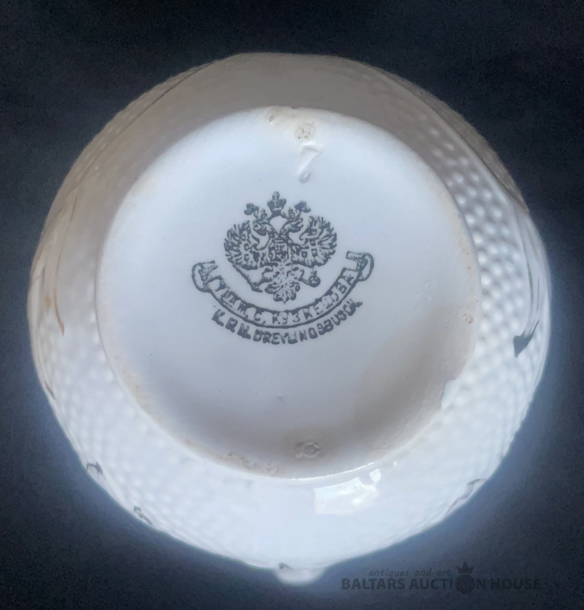 Krējuma trauks, fajanss, h=11,5 cm, Kuzņecova f-ka Rīgā, 19.gadsimta beigas