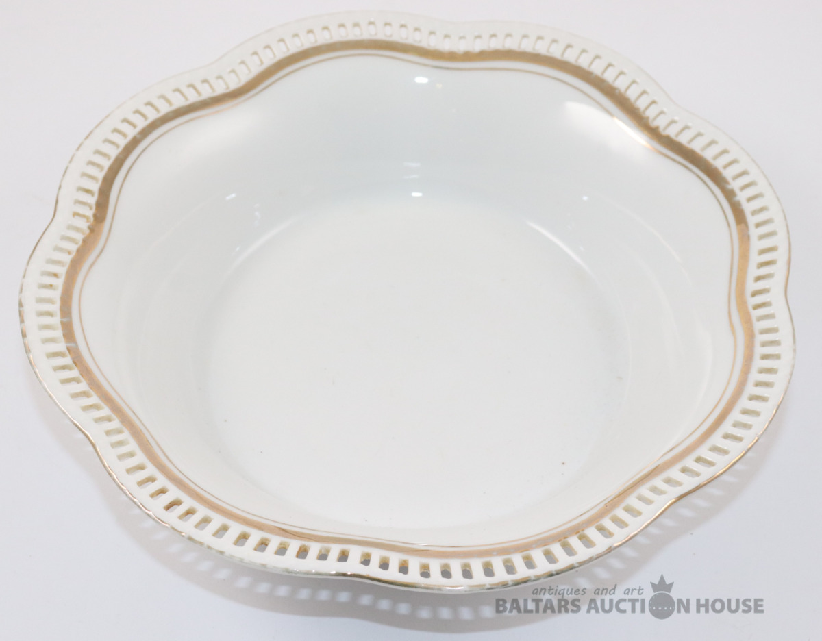 Augļu bļoda ar perforētu malu un zeltījumu. Schumann Arzberg, Vācija. d=23 cm