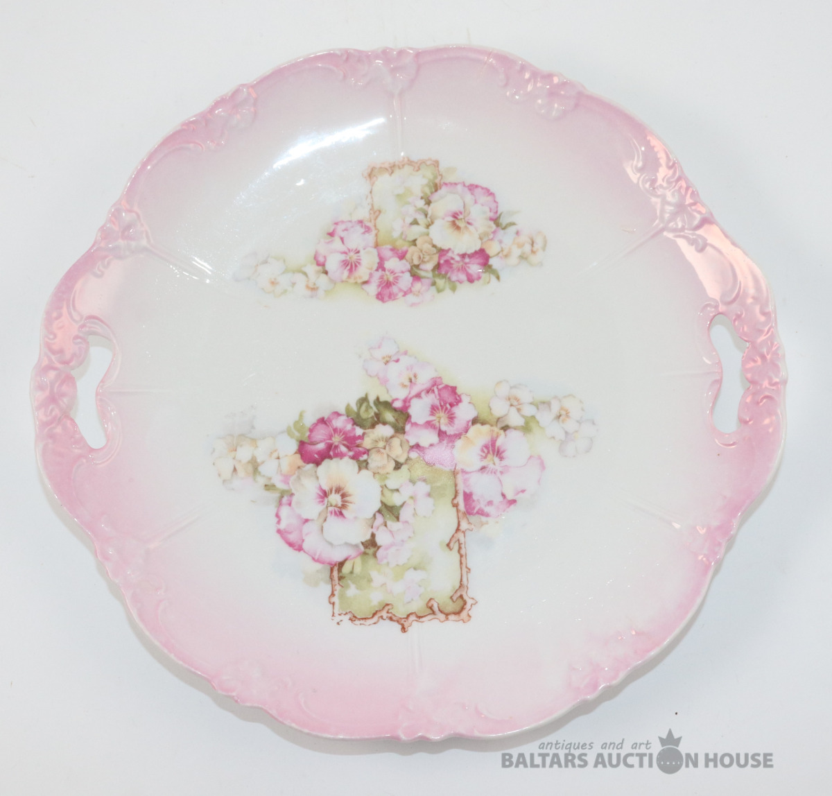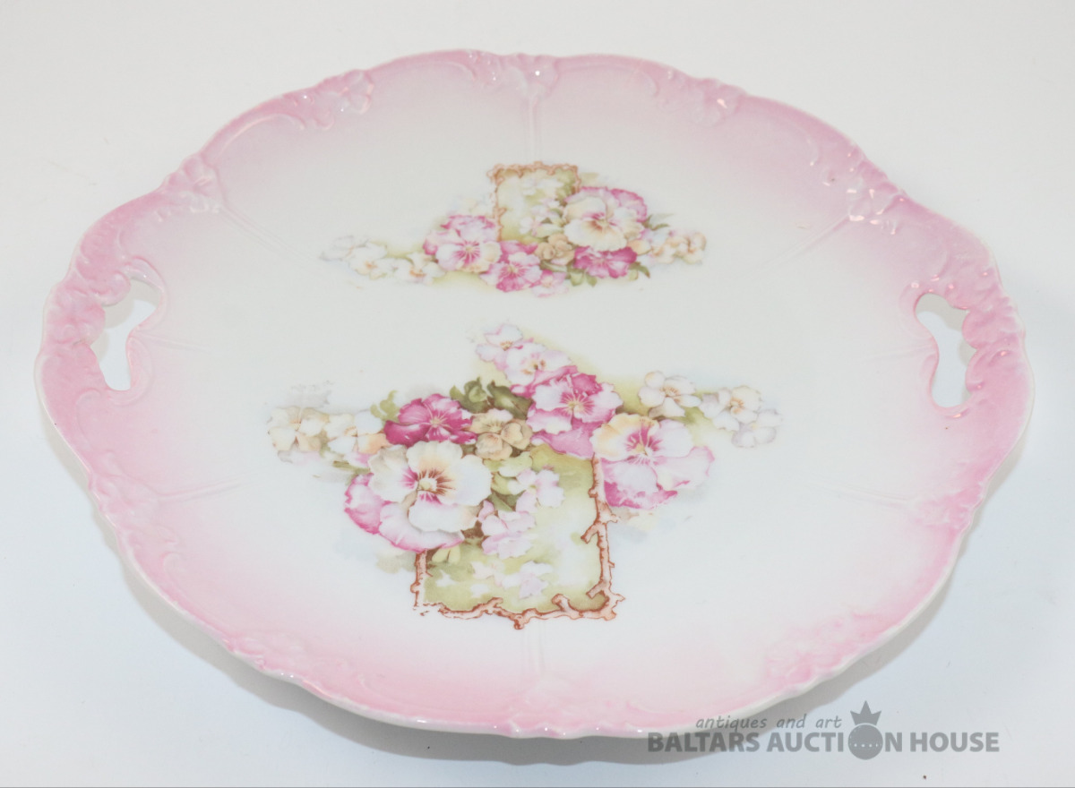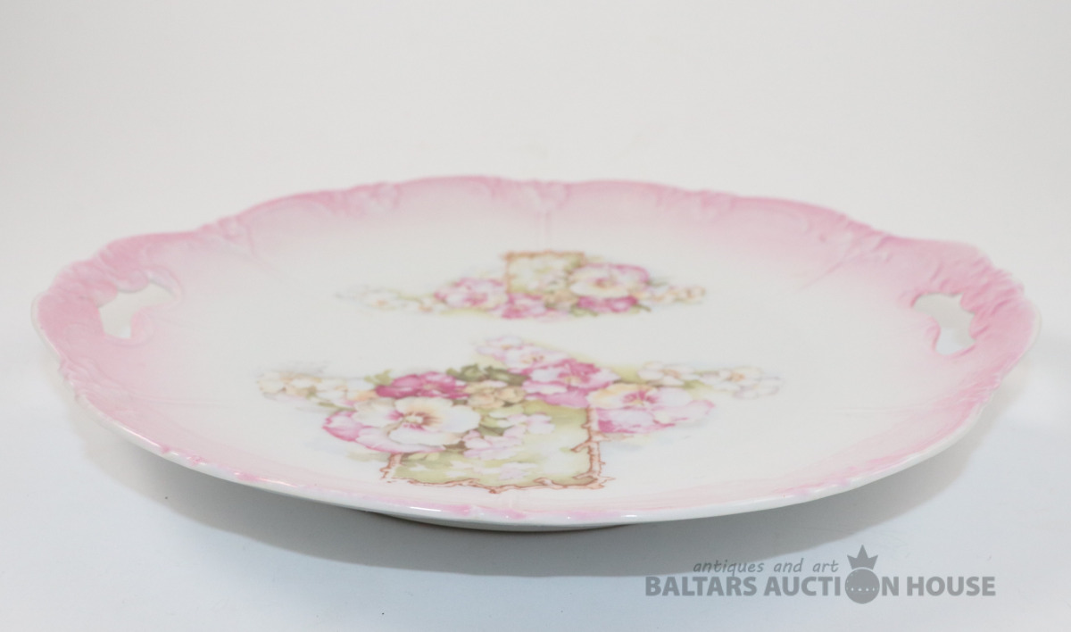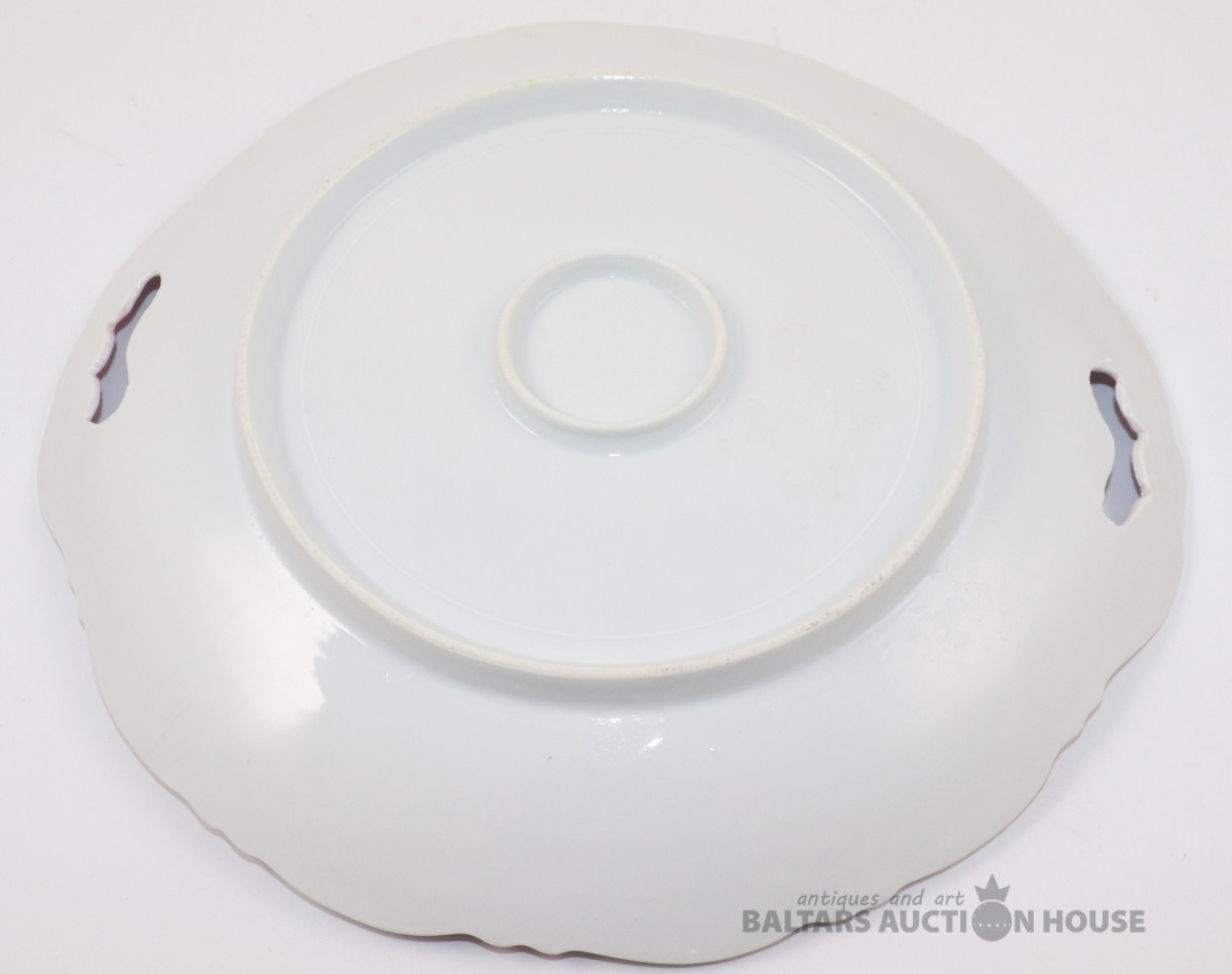 Vintage kūkas vai servējamais šķīvis ar rokturiem. Porcelāns. d=24 cm