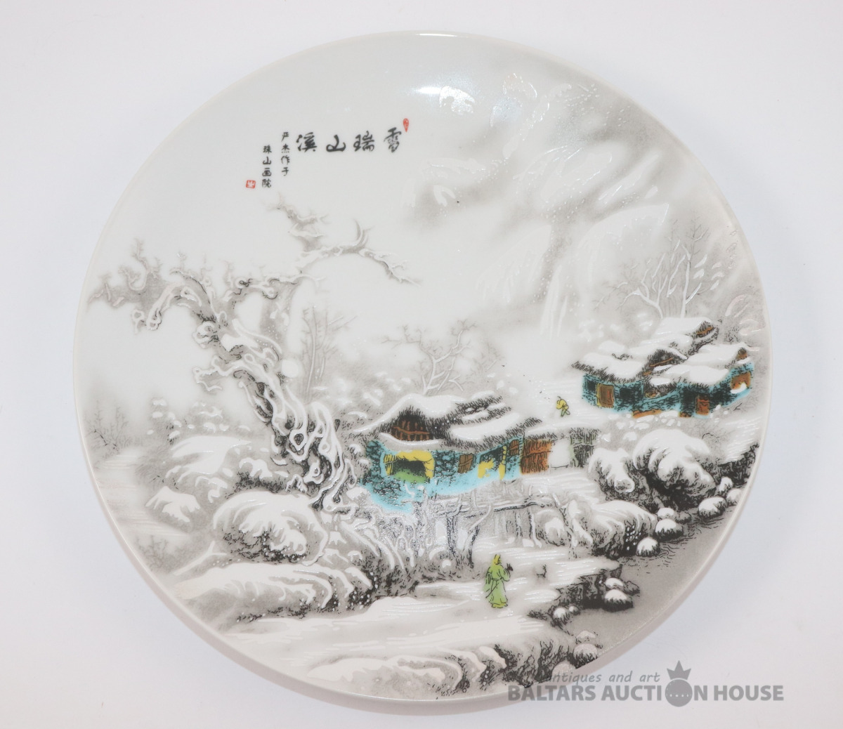 Dekoratīvs šķīvis "Sniegs kalnu ciematā". Porcelāns, d=27 cm
