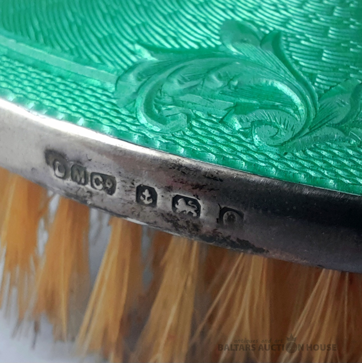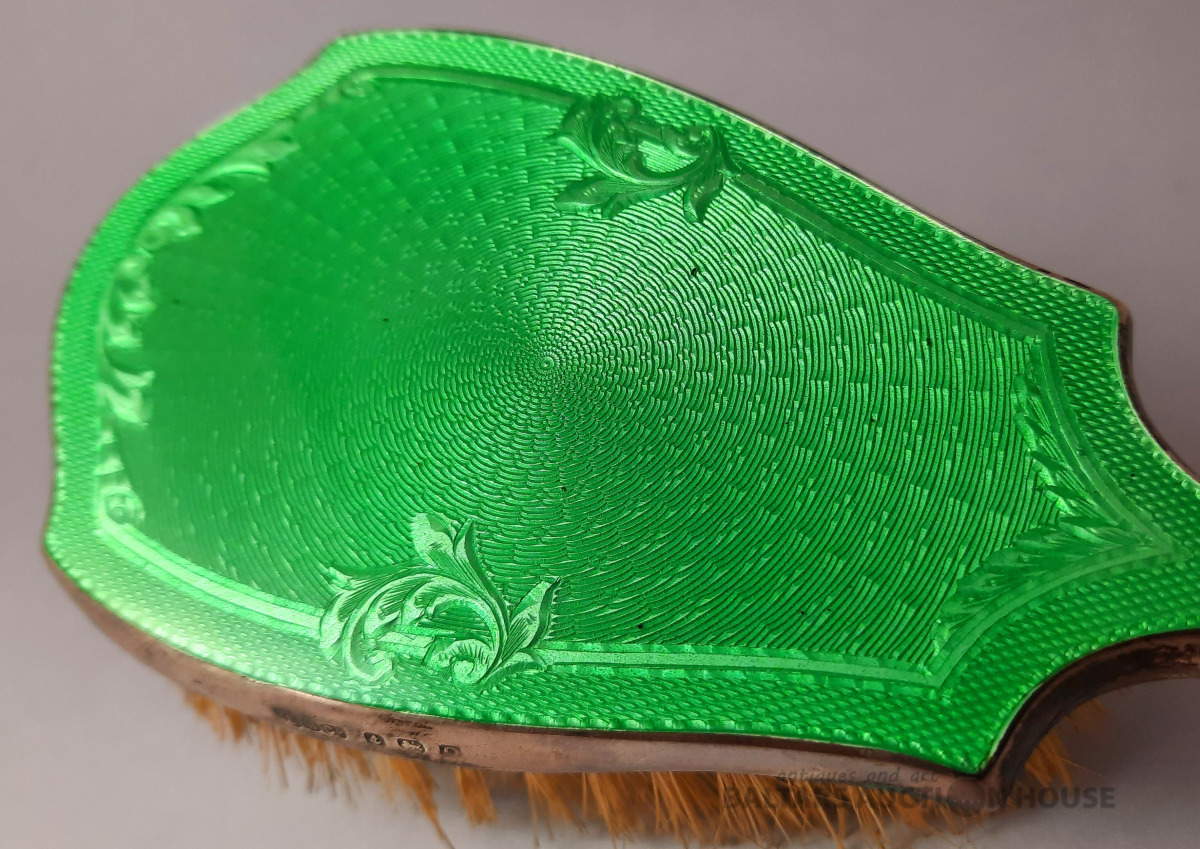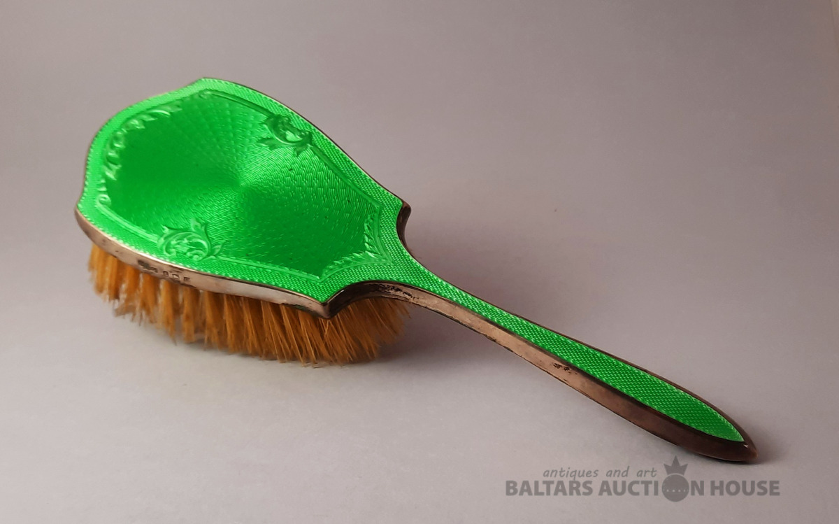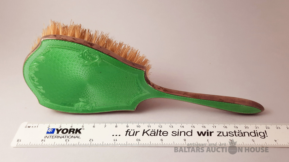 Antīka giloša emaljas drēbju otiņa, Anglija, piesātināti zaļa. Sudrabs, giloša, emalja, koks, dabīgie sari. 23,5 cm. Krāsains priekšmets.