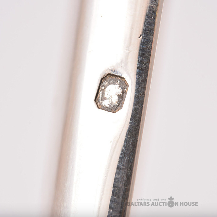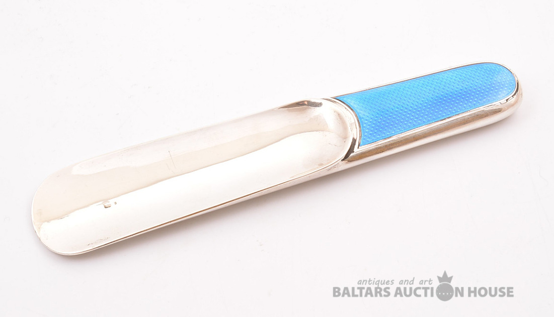 Apavu lāpstiņa, spilgti zila giljošas emalja, 950 proves raudze, 86,50 g, emalja, 19 cm, 20. gadsimts, Francija.
