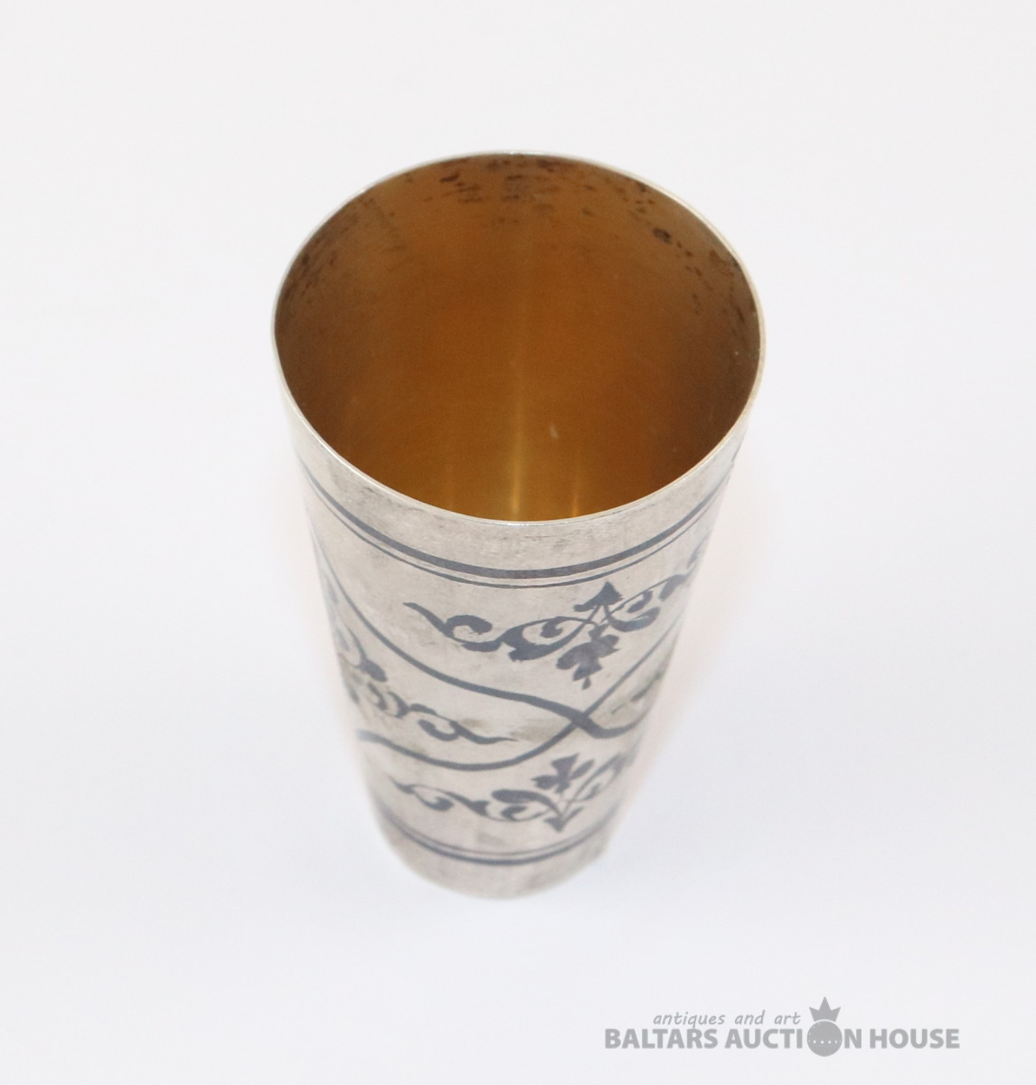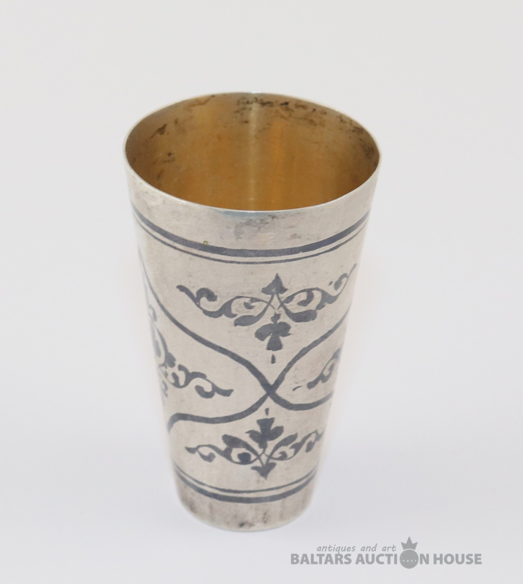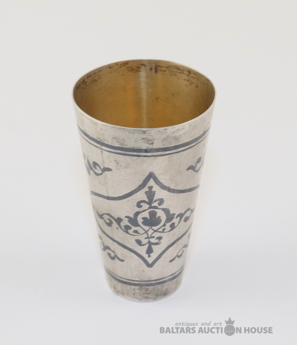 Glāze. Kubači, Sudrabs 875, zeltījums. Svars 29,81 g. h=6 cm. d=3,7 cm
