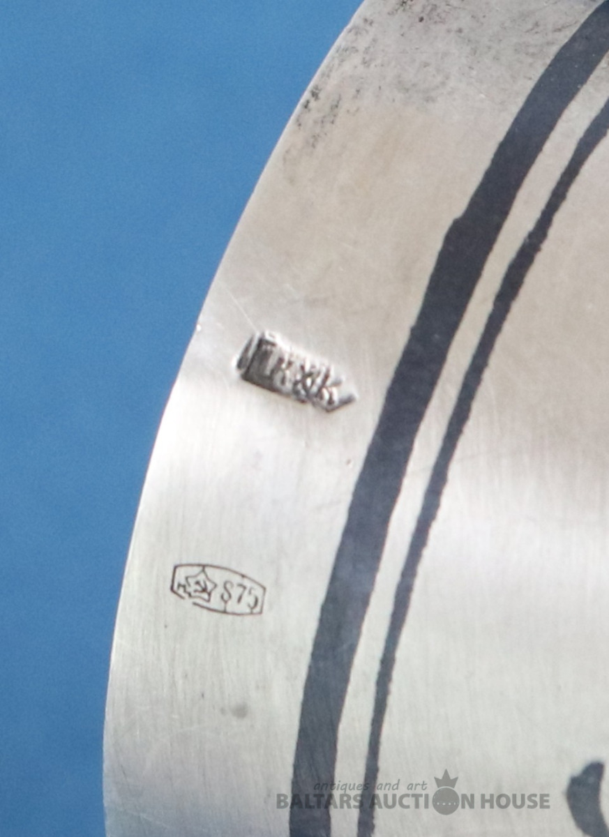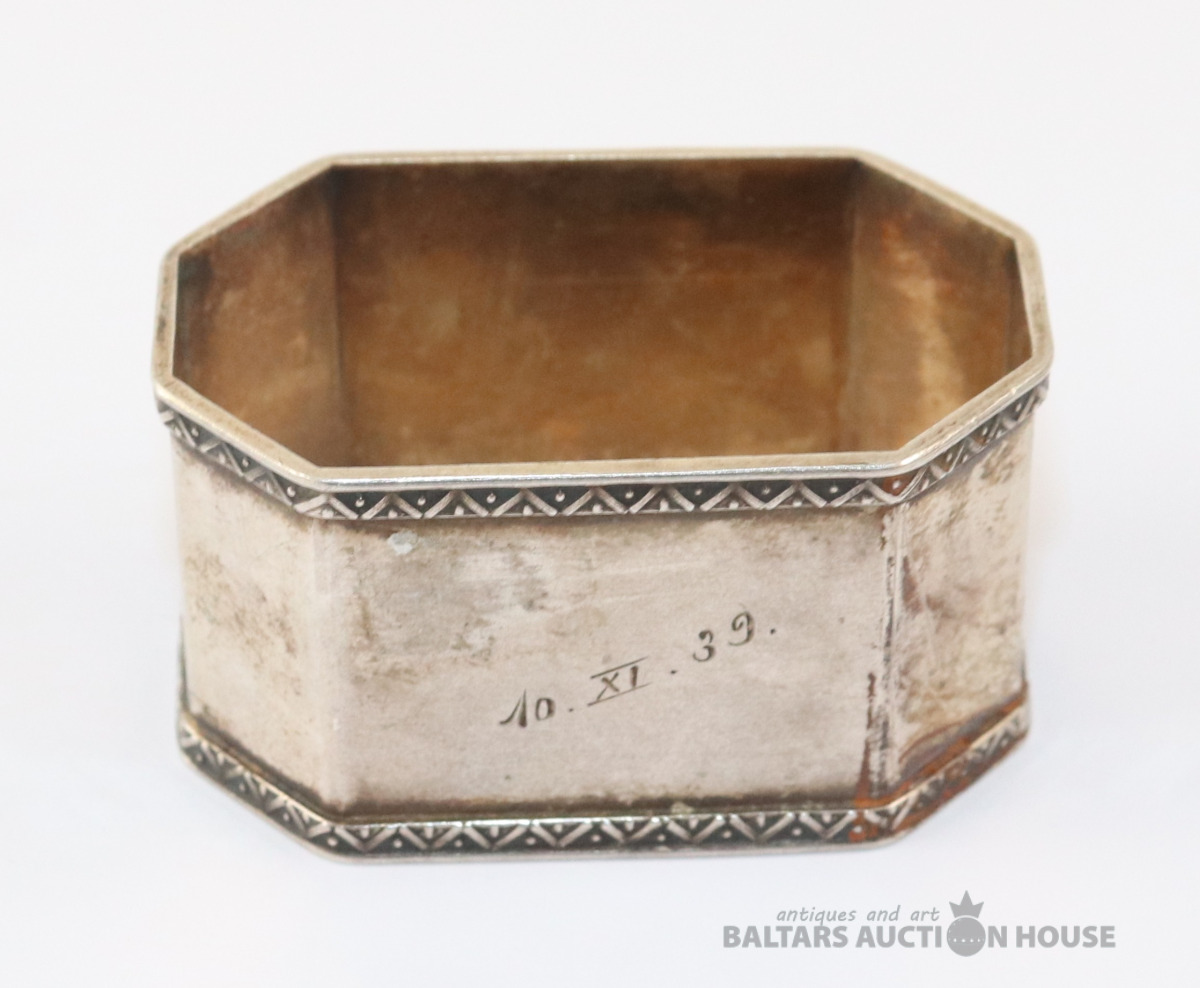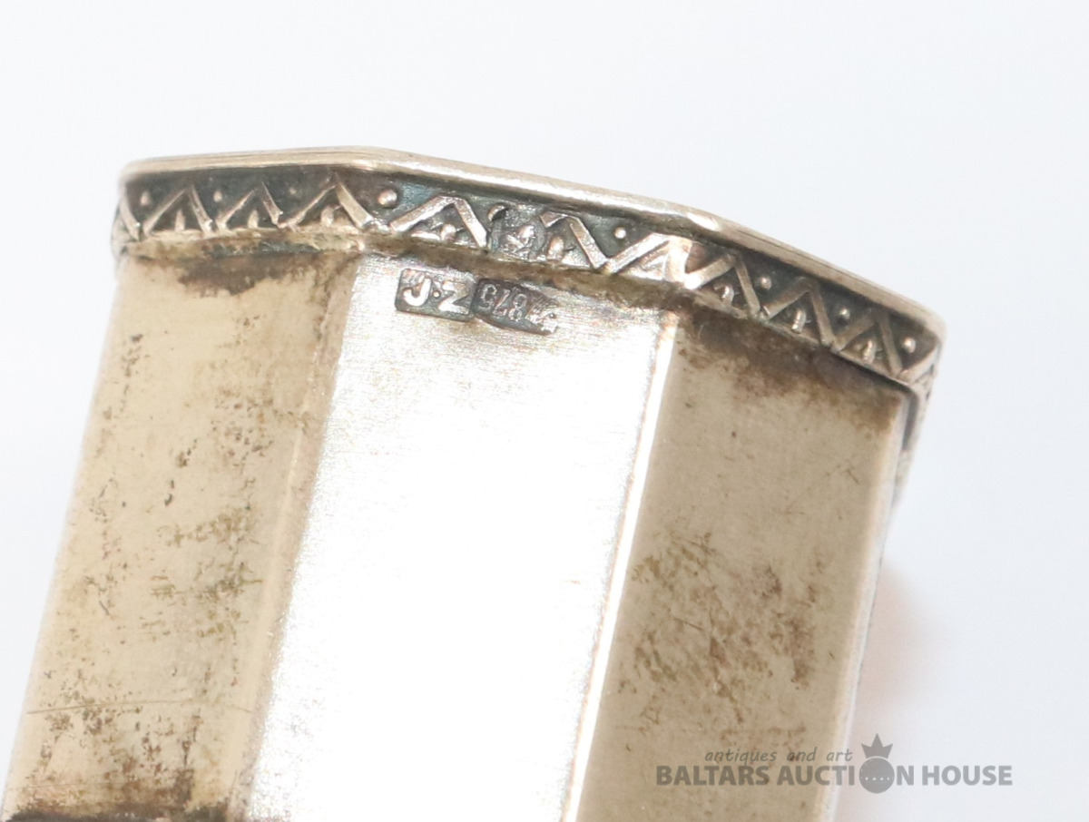 Salvešu turētājs. Sudrabs 875, Latvija. Svars 20,19 g. 2,7x3x5 cm