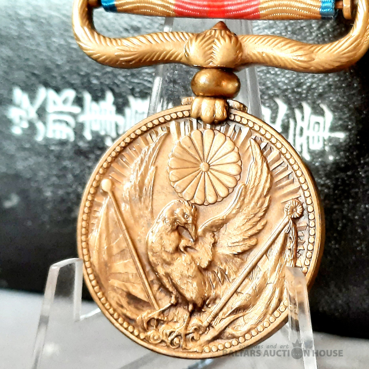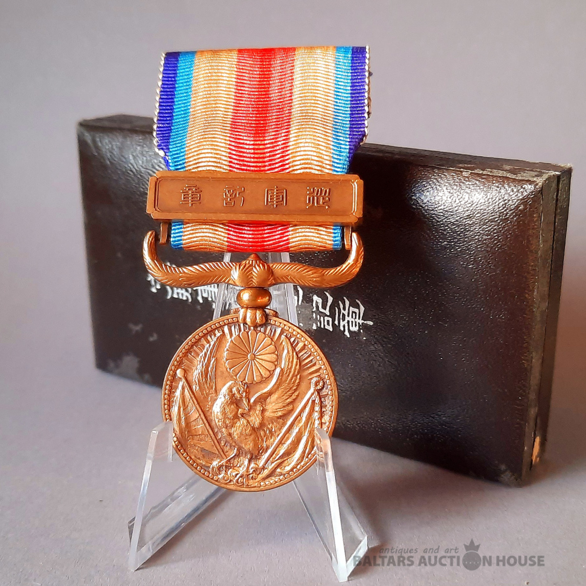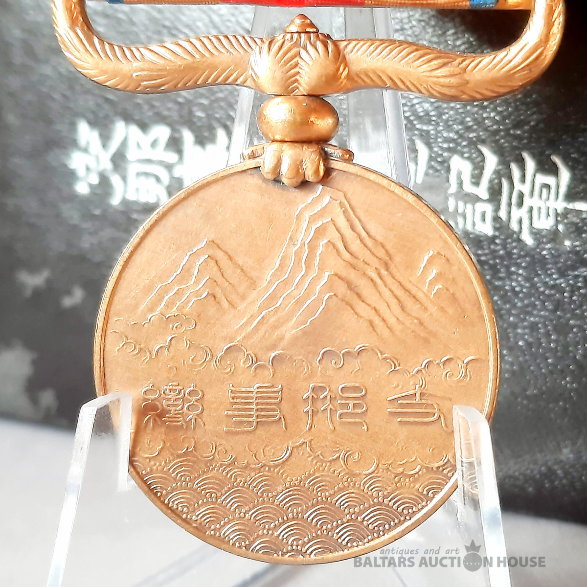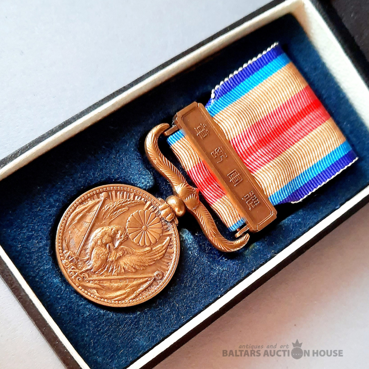 Attēlā redzama Japānas Ķīnas incidenta medaļa (支那事変従軍記章), kas izveidota 1939. gadā, lai apbalvotu militārpersonas, kas piedalījās Otrajā Ķīnas un Japānas karā.