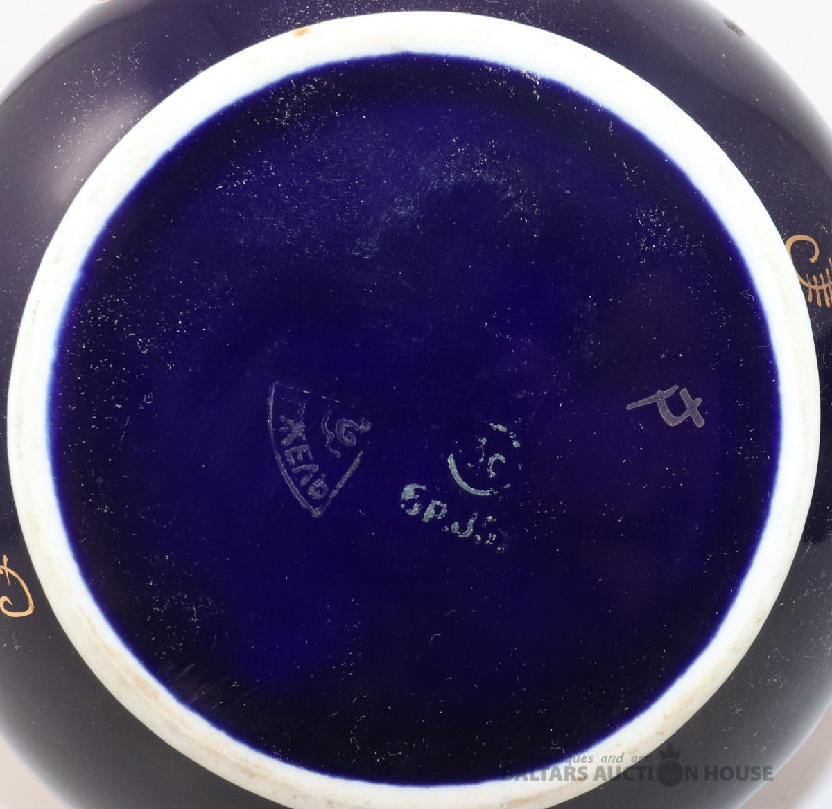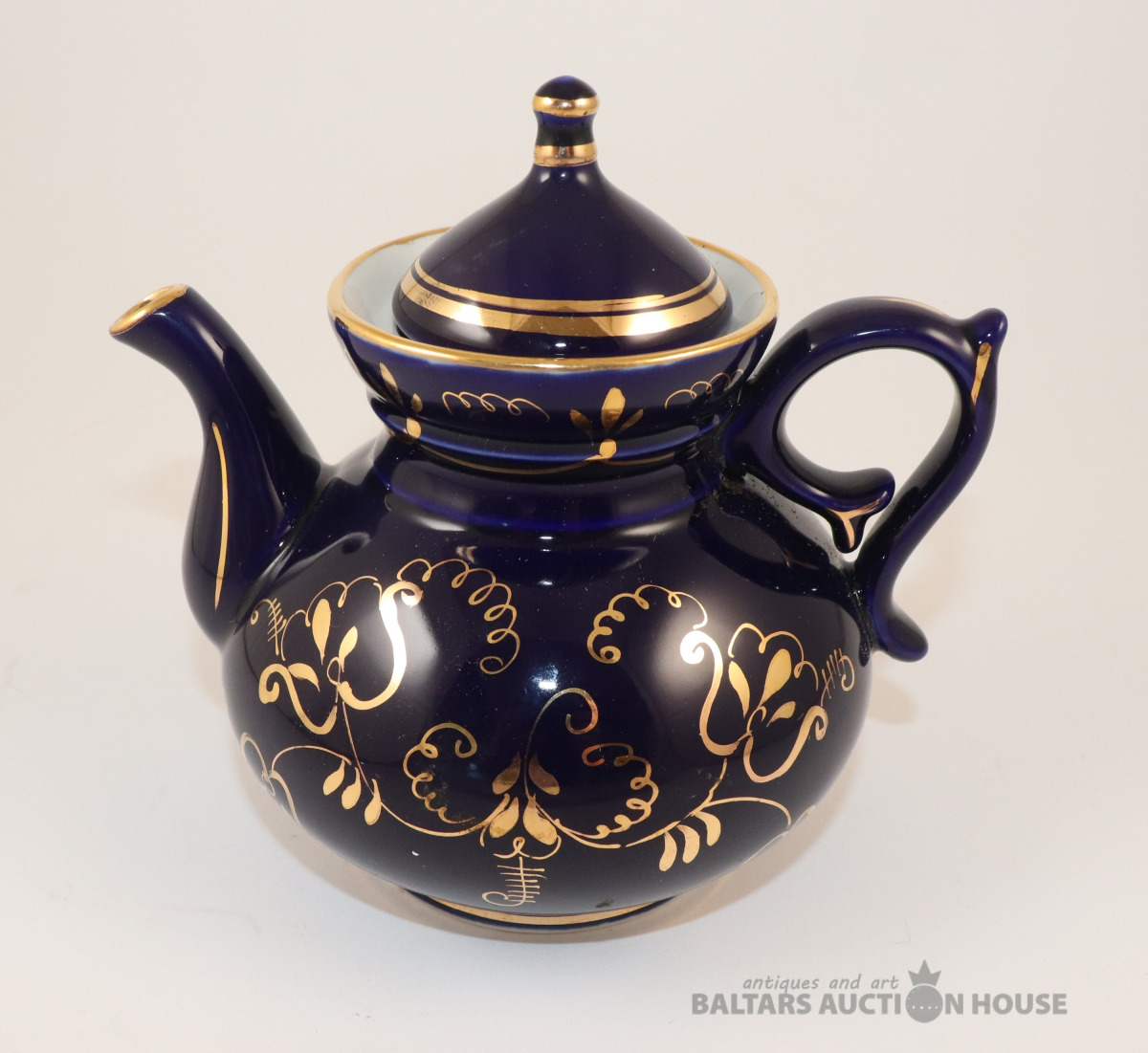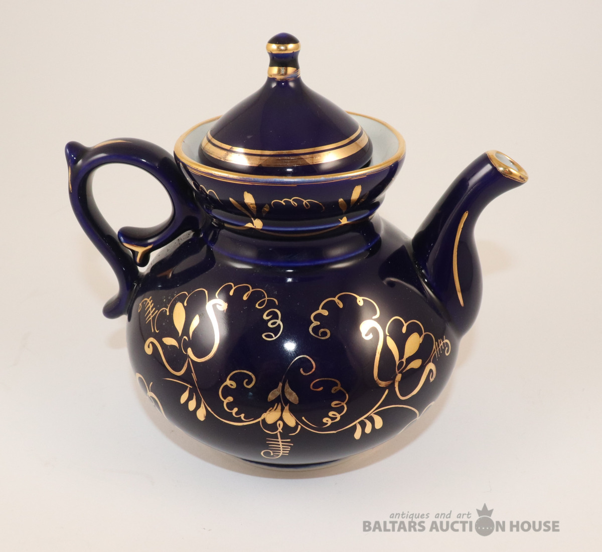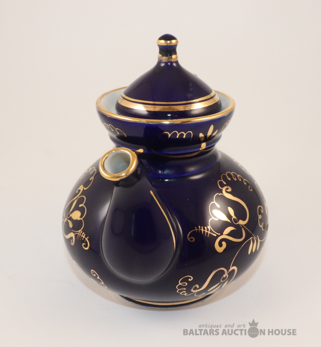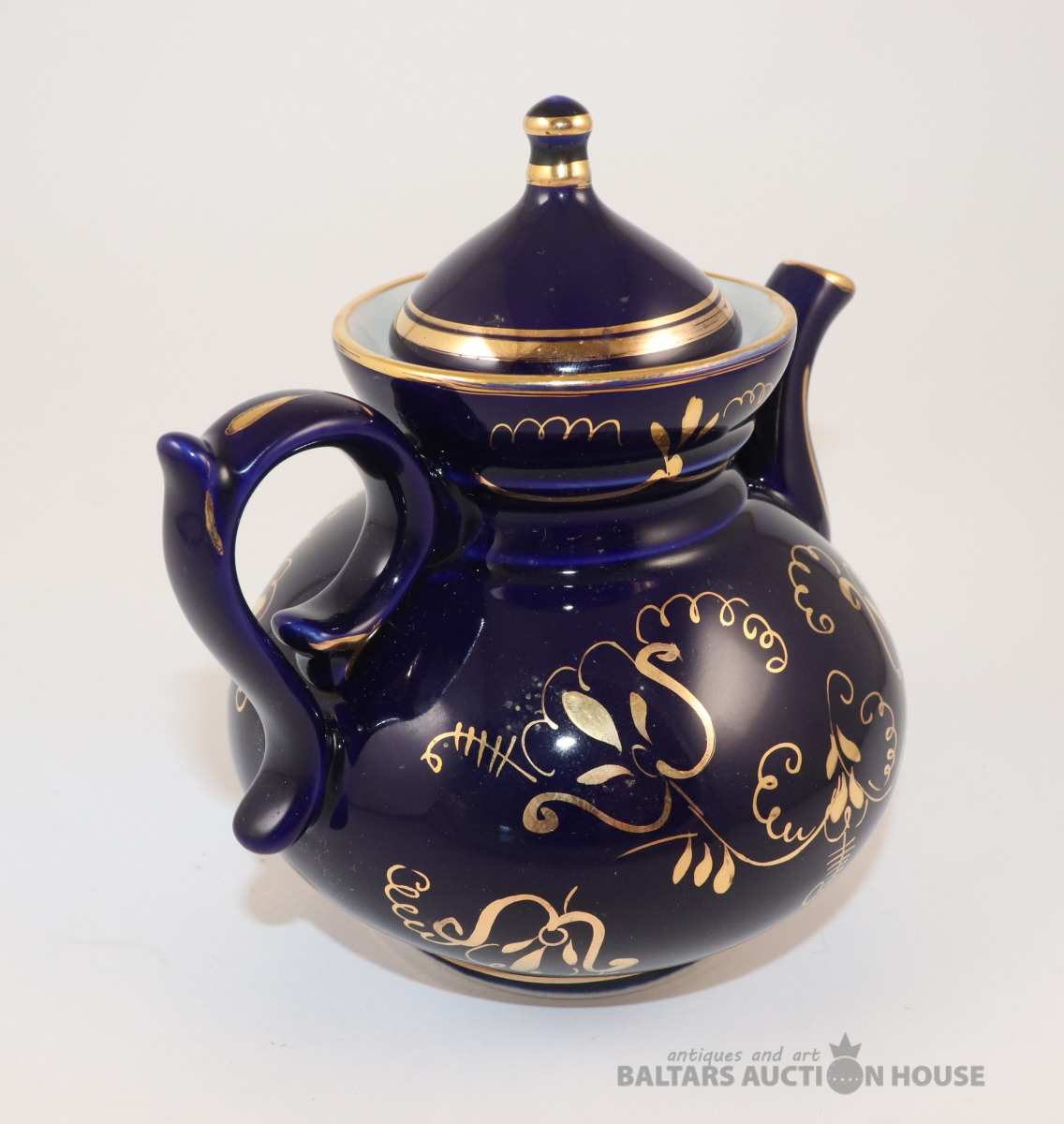 Kobalta tējkanna ar zelta dekolu. Vozroždenie, Krievija. h=17 cm