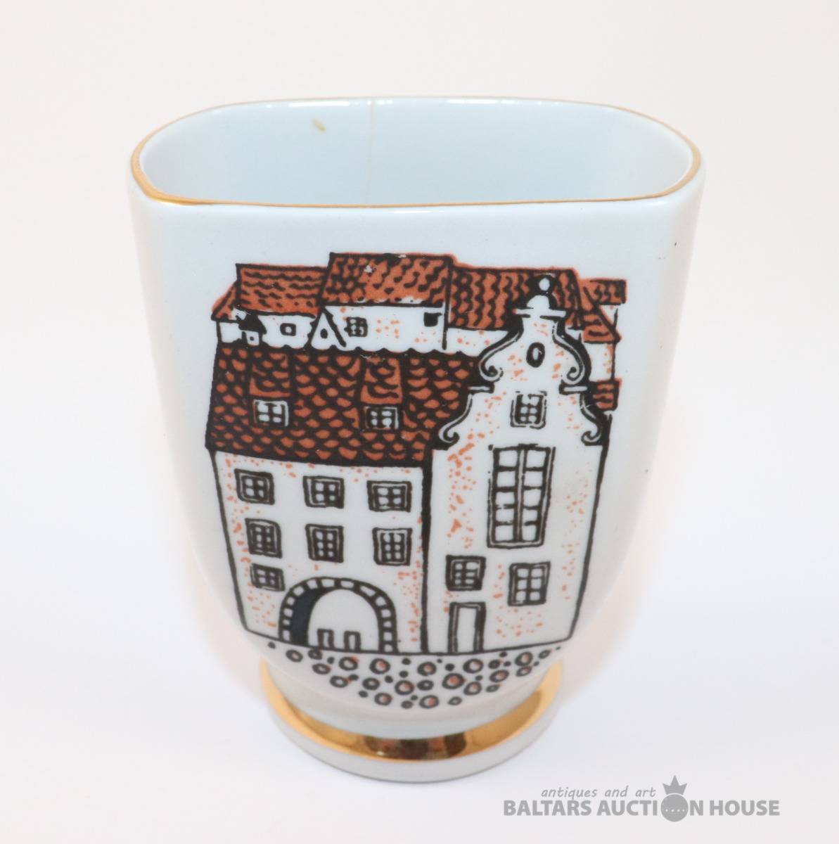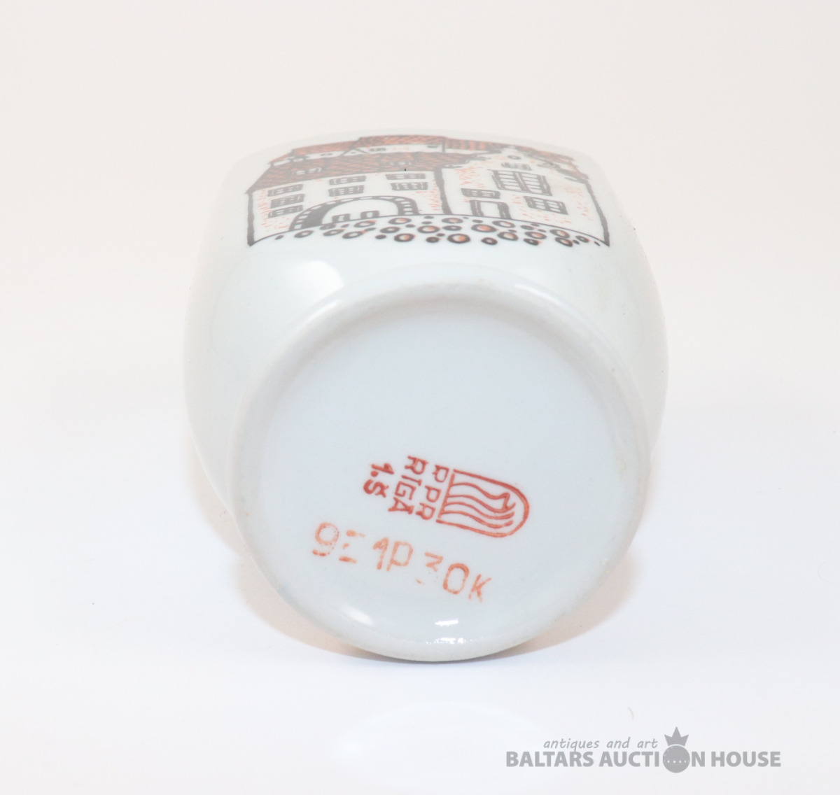 Salvešu turētājs ar Vecrīgas skatu. Porcelāns, RPF. h=9 cm