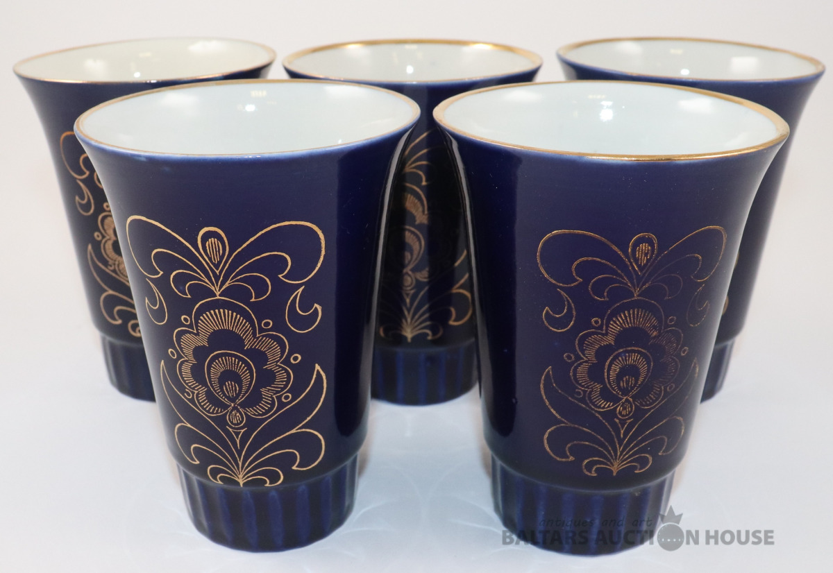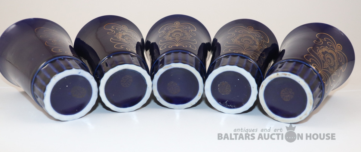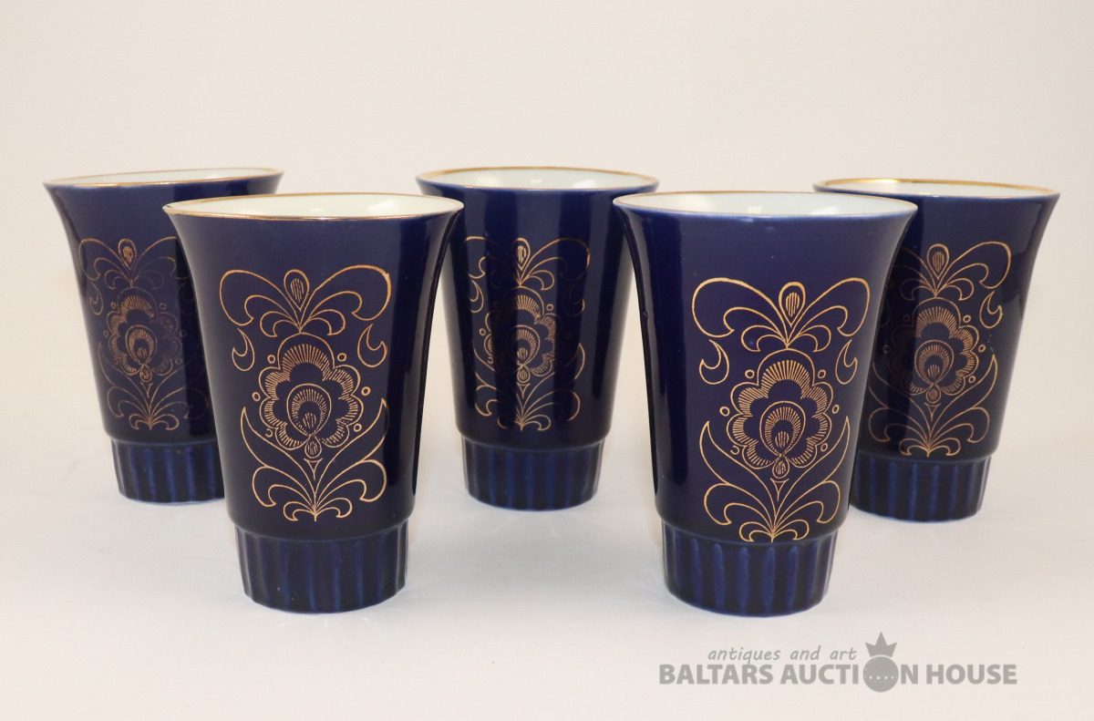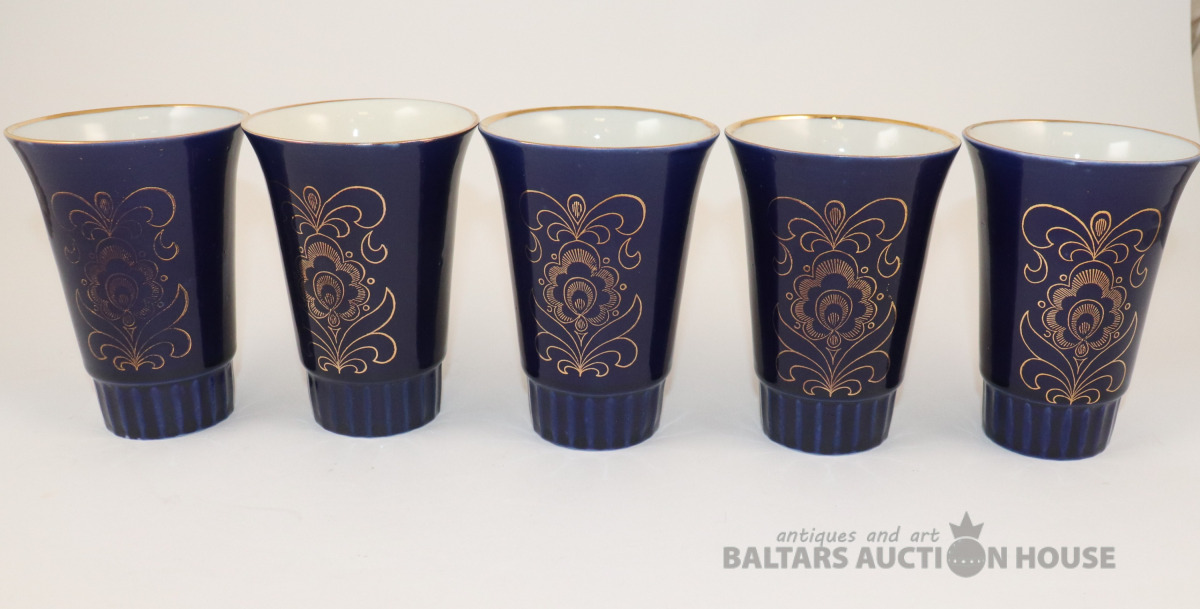 Komplekts ar 5 kobalta glāzēm. Vozroždenie, Krievija. h=11,5 cm