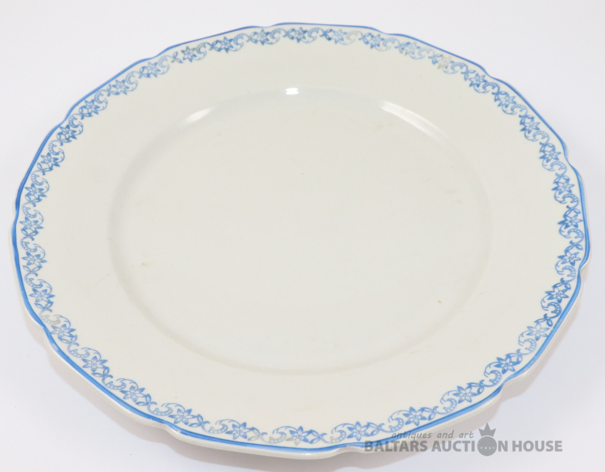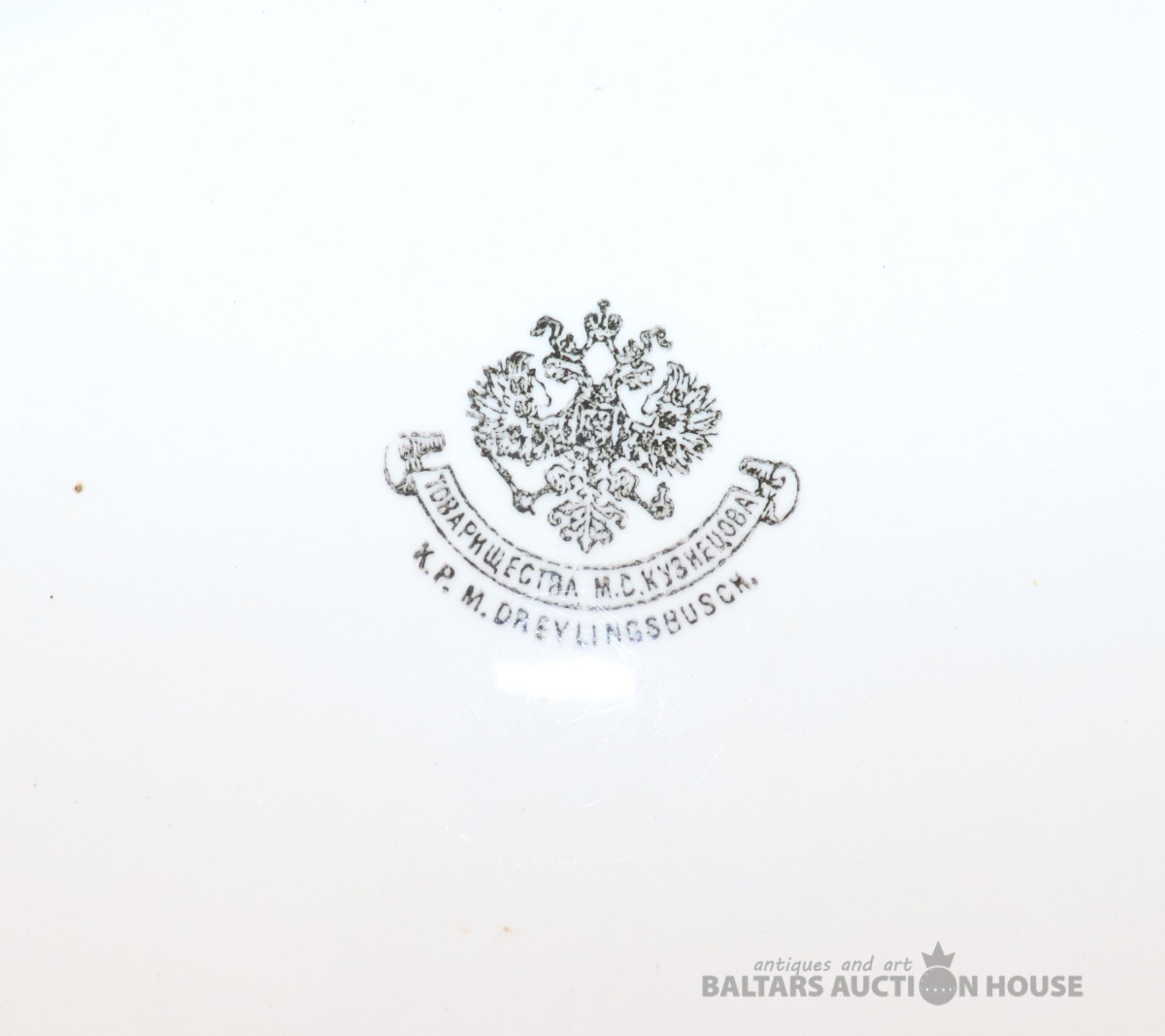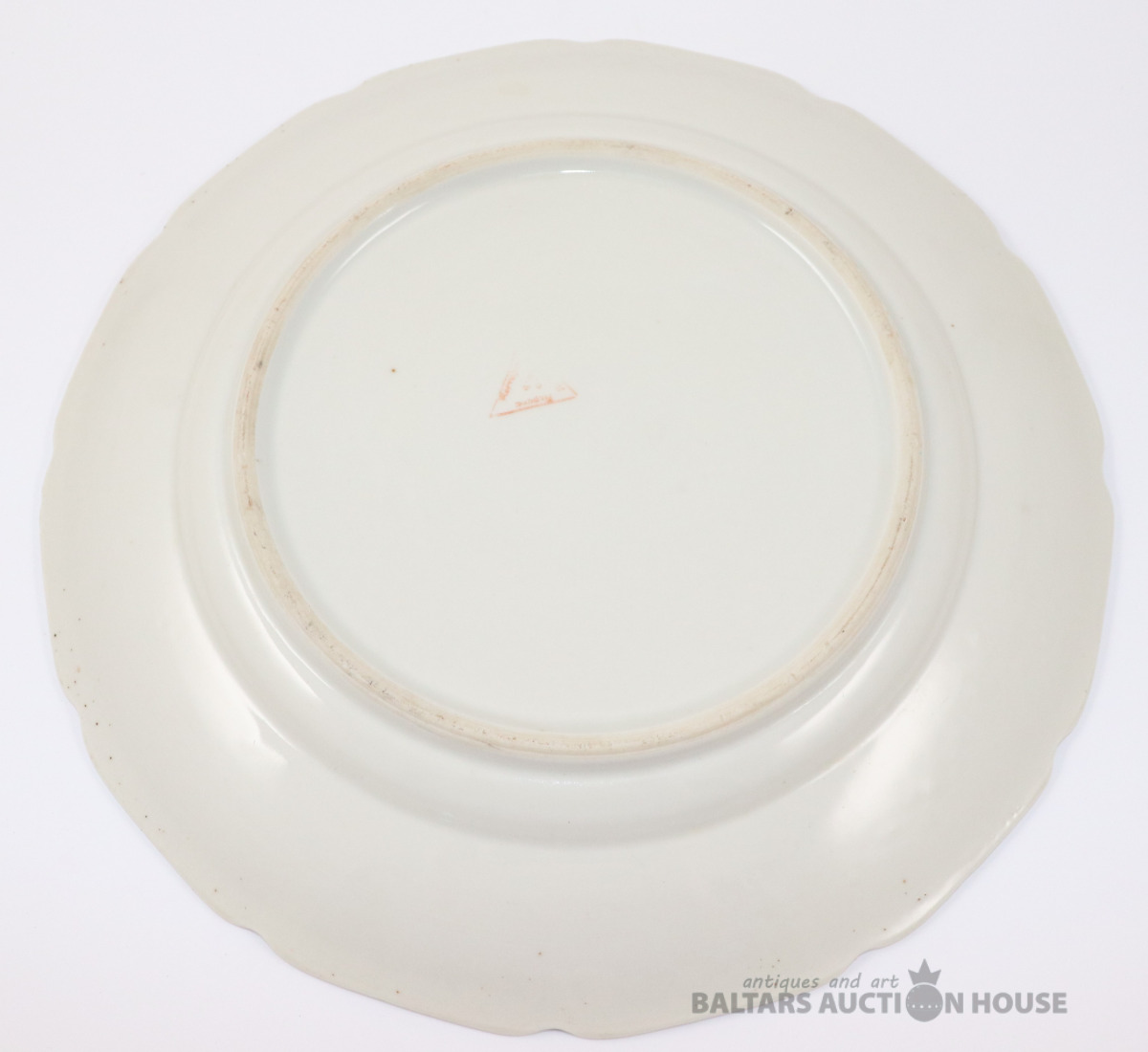 Šķīvis ar reti sastopamu zīmogu, trīsstūris un uzraksti tajā iekšā Нарком Мостпром Латв СССР Р.Ф.З. Porcelāns, RPF. d=24,5 cm