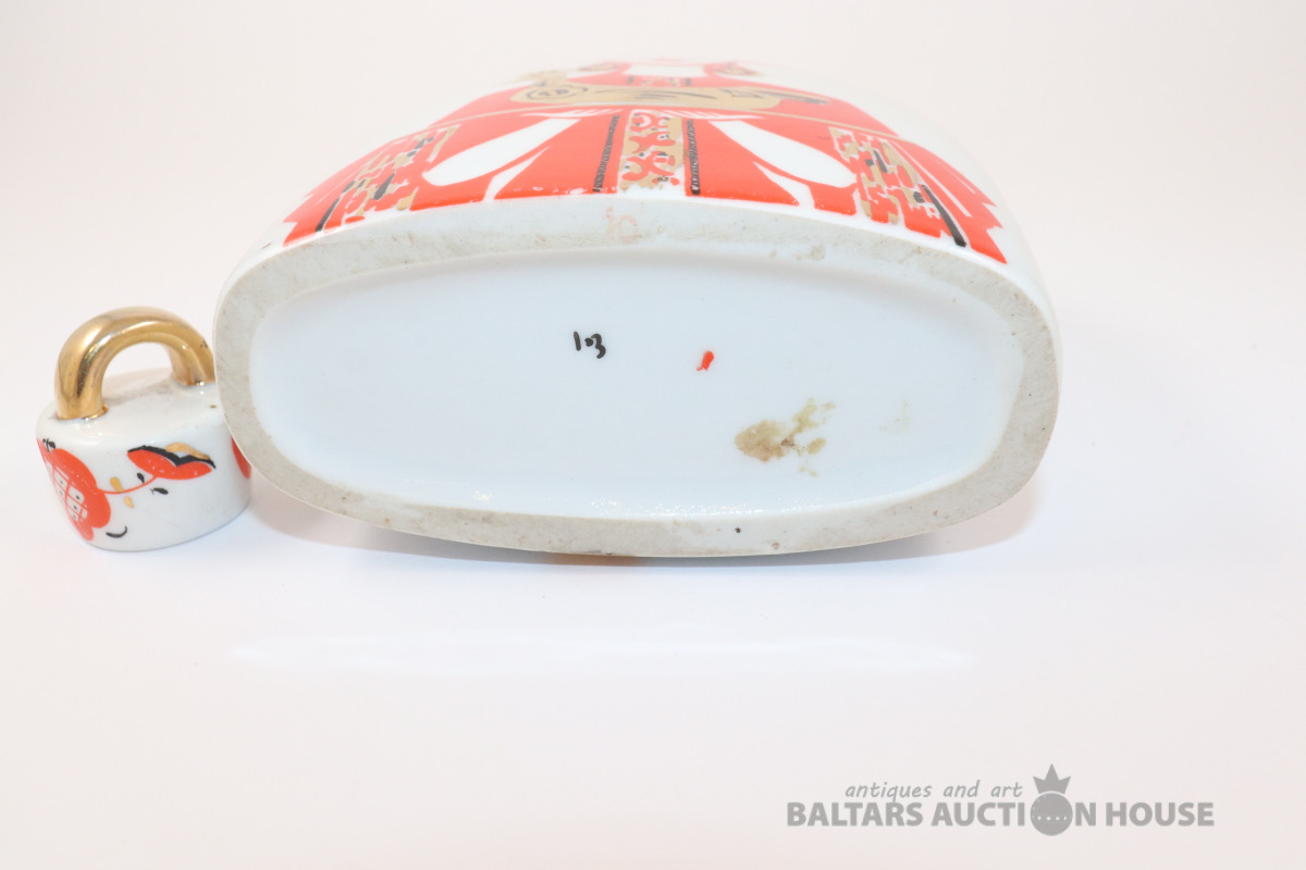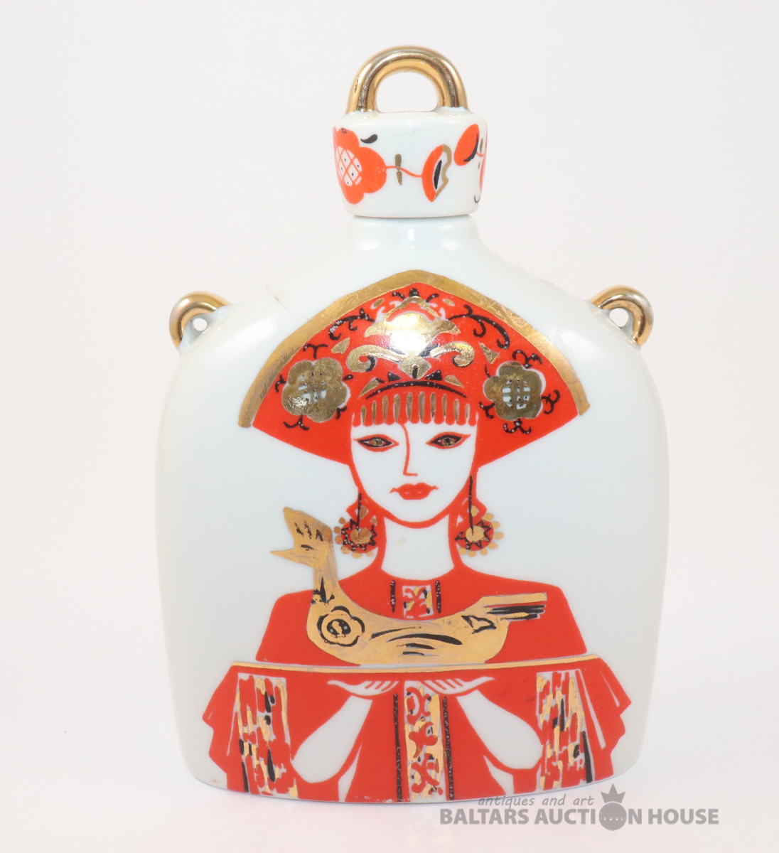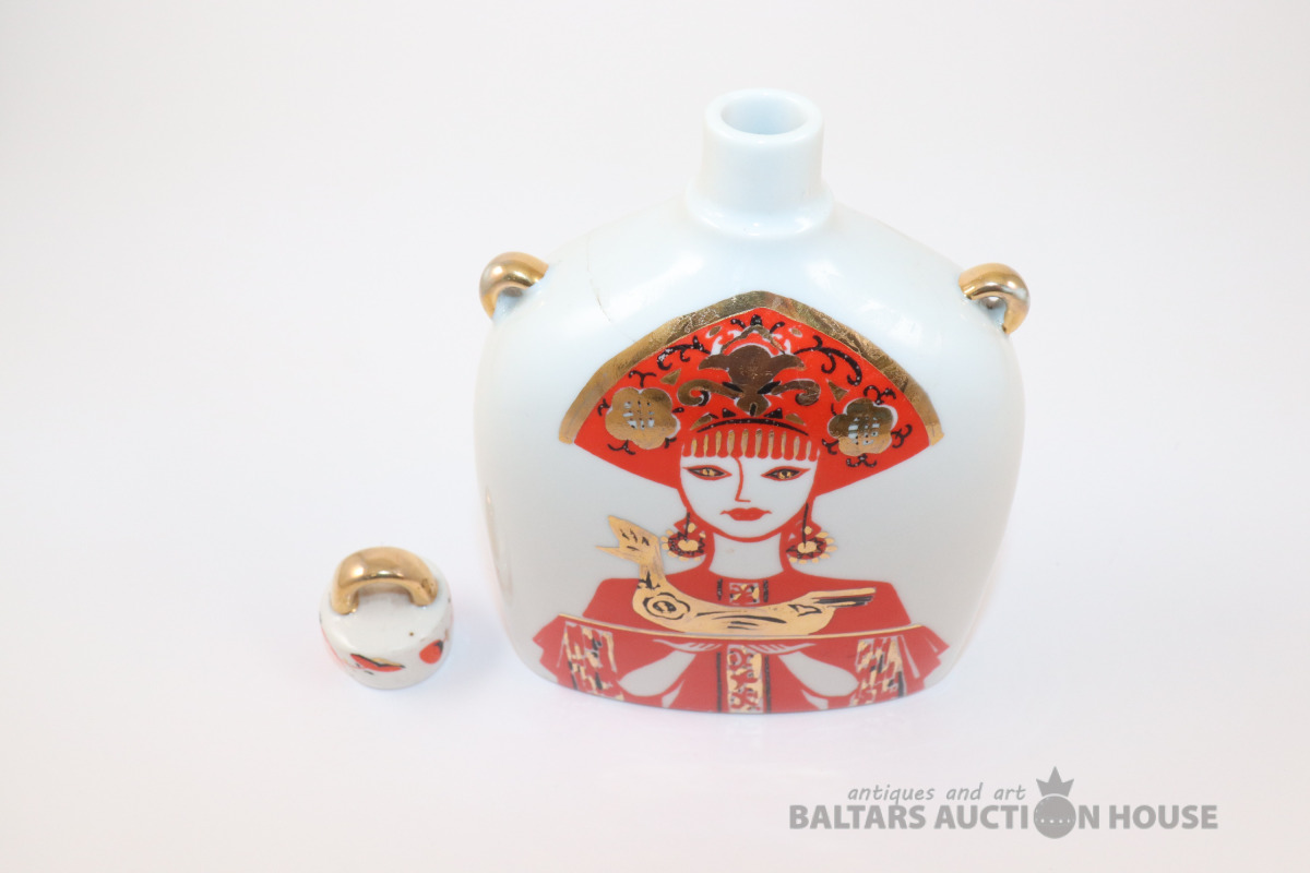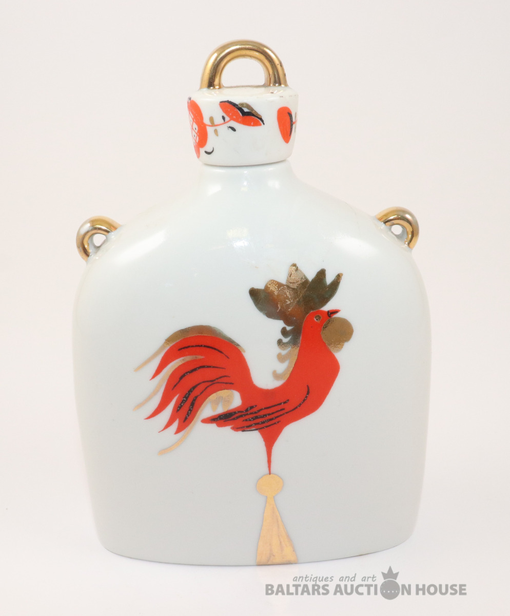 Karafe ar gaiļa un sievietes dizainu. Porcelāns, LFZ. h=17 cm