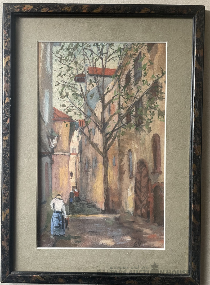 Monogramma E.V., VECRĪGA, 24x15 cm, papīrs, jaukta tehnika, ap 1980.g.