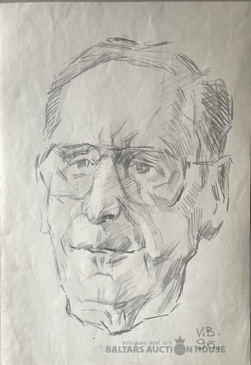 Monogramma V.B. VĪRIEŠA ( Viktora ) PORTRETS, papīrs, zīmulis. 29x20 cm, 1996.g.