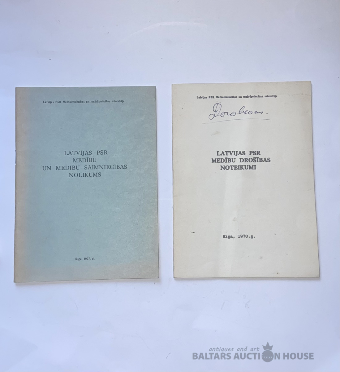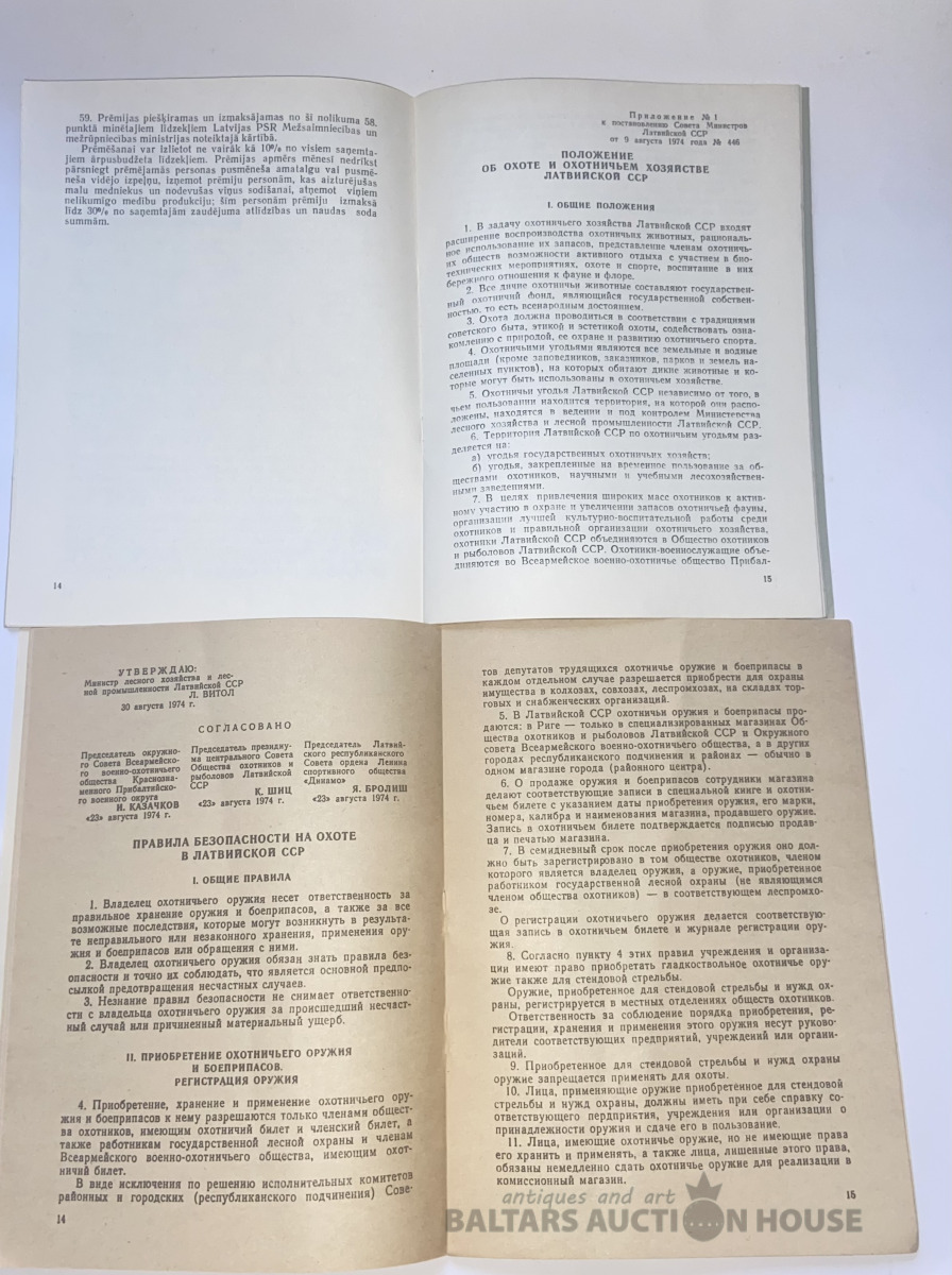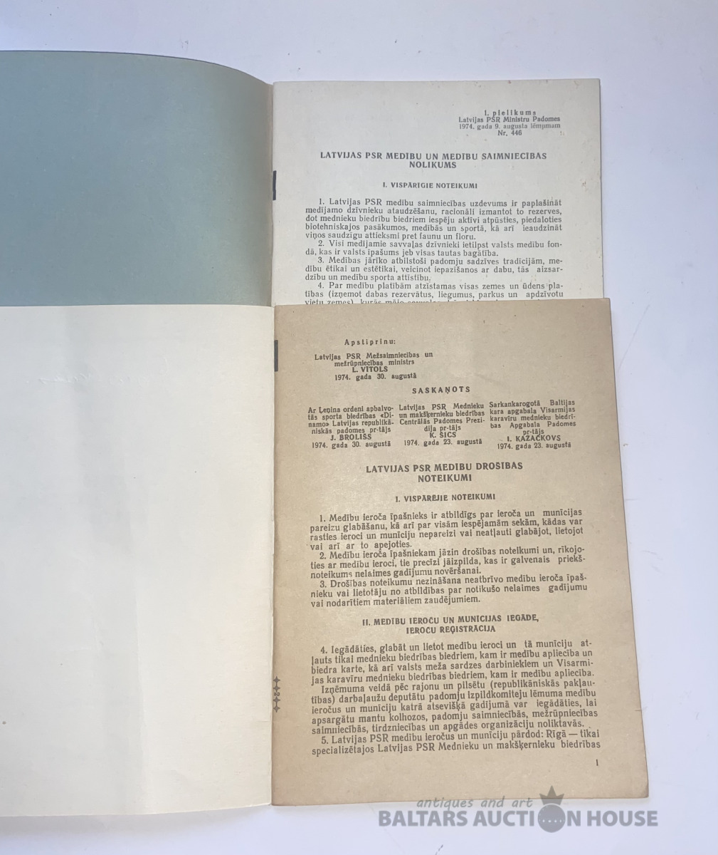 LPSR medību drošības noteikumi 1978.g.29.lpp. , latviešu/krievu val. ; LPSR medību un medību saimniecības nolikums 1977.g. 29.lpp. latviešu/krievu valodā.