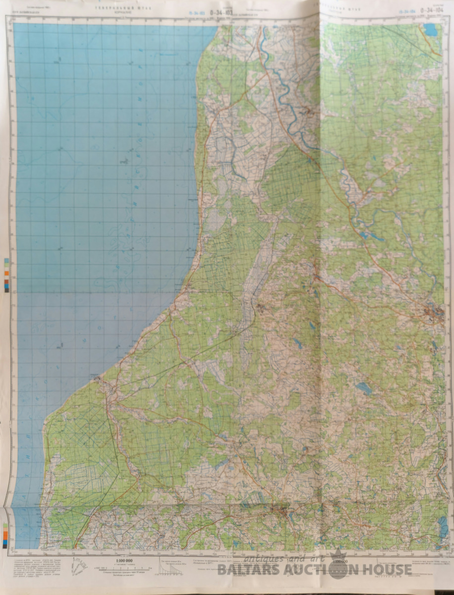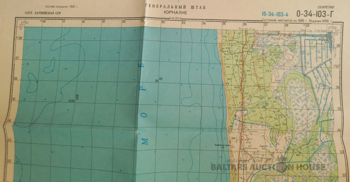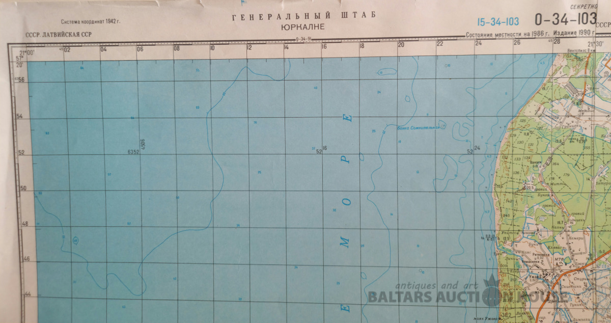 Slepenā "Ģenerālštāba karte" - Jūrkalne un Piltene. 65x83cm