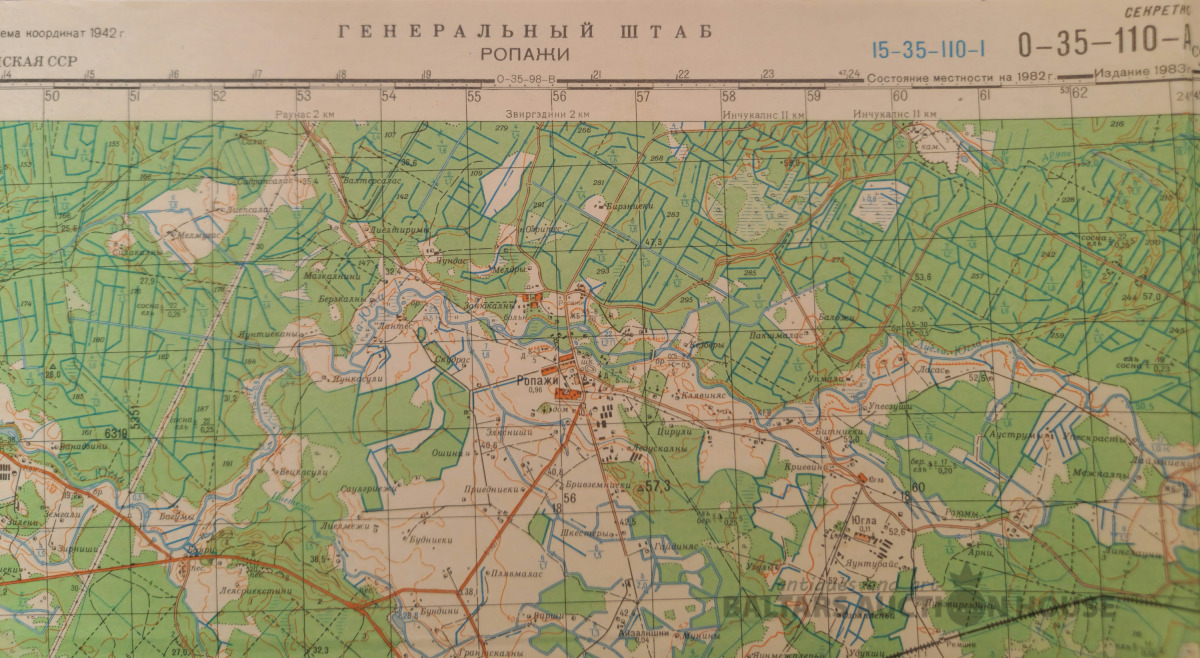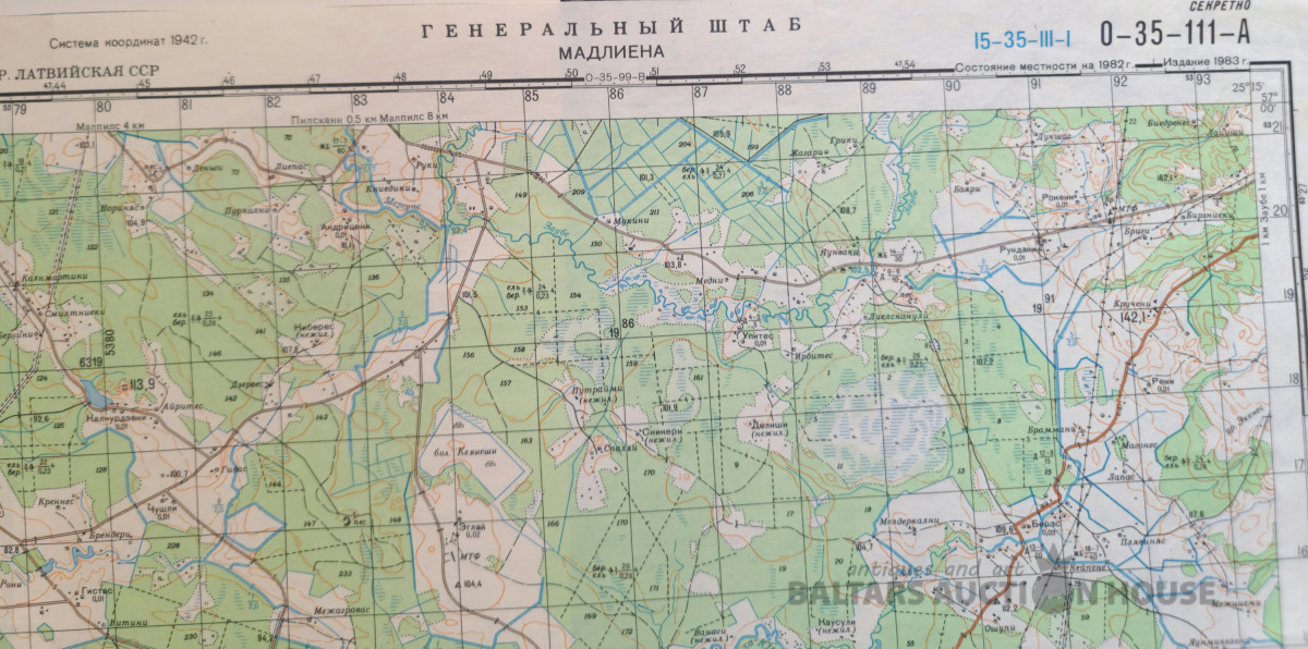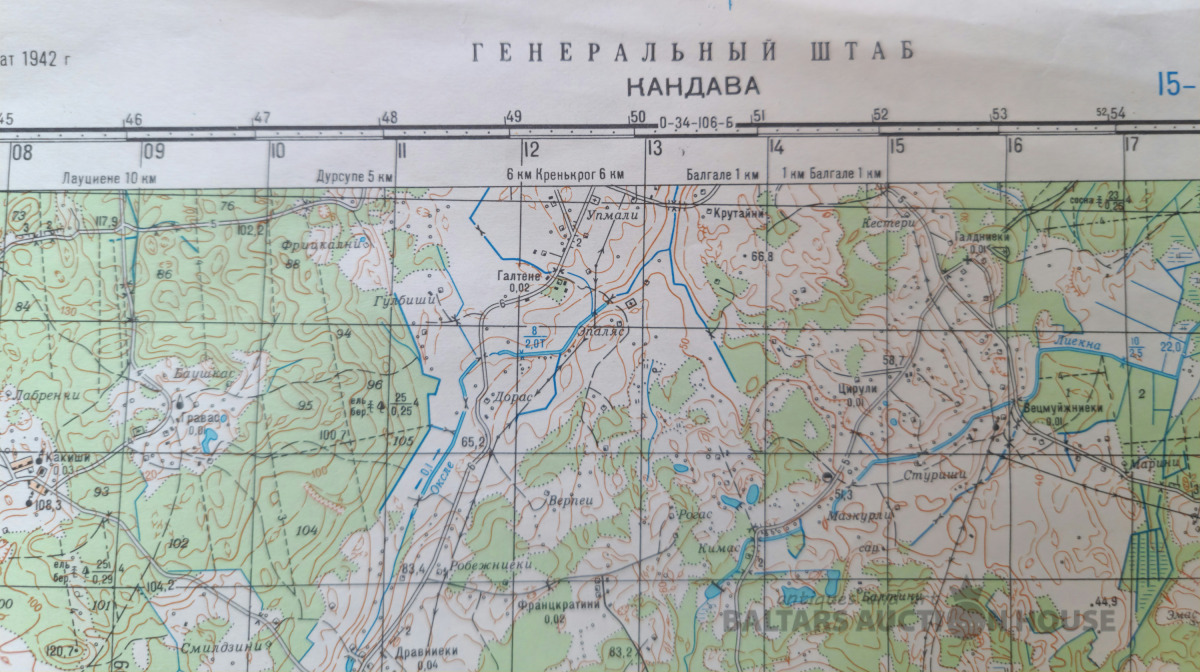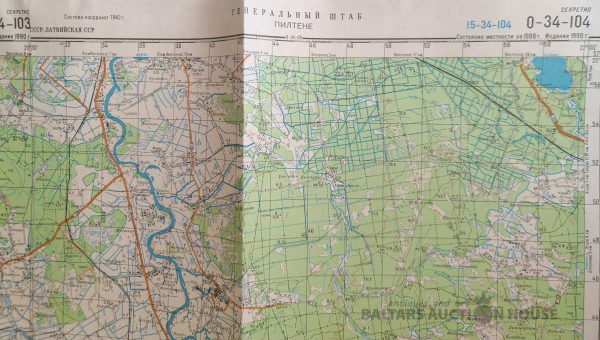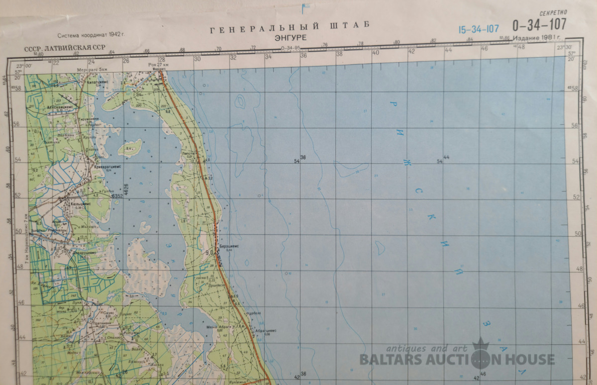 Slepenā "Ģenerālštāba karte" - Kandava, Engure un Ragaciems. 95x120cm