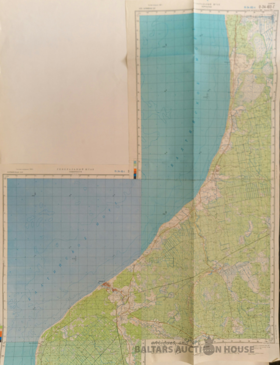 Slepenā "Ģenerālštāba karte" - Pāvilosta un Jūrkalne. 65 x 120cm