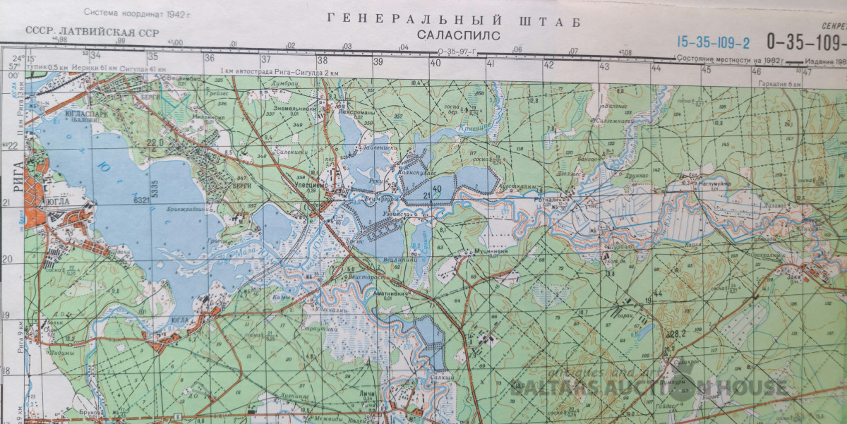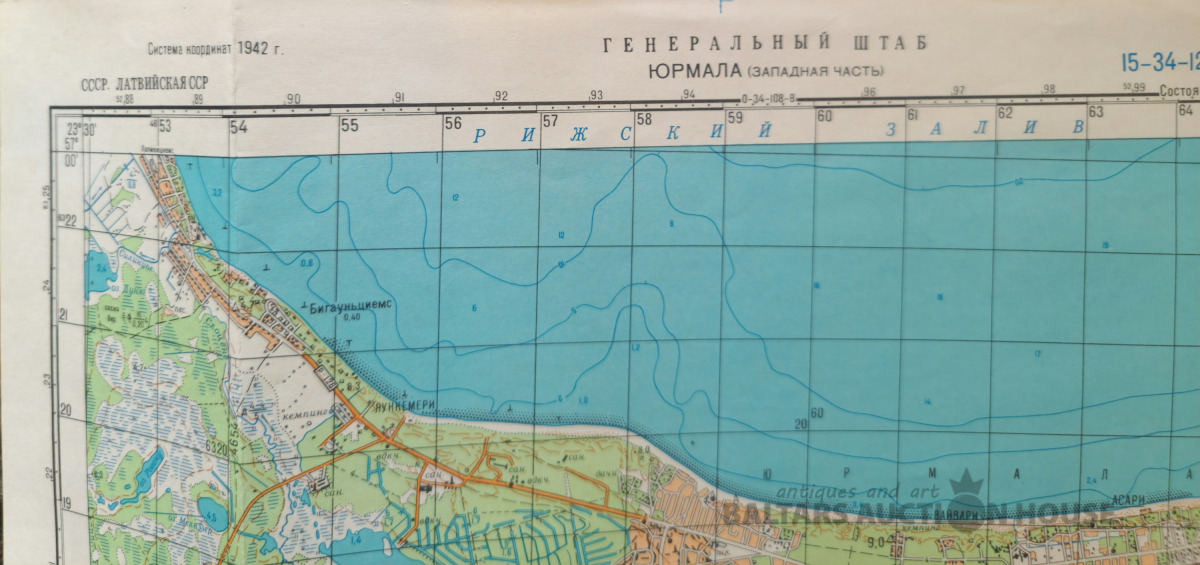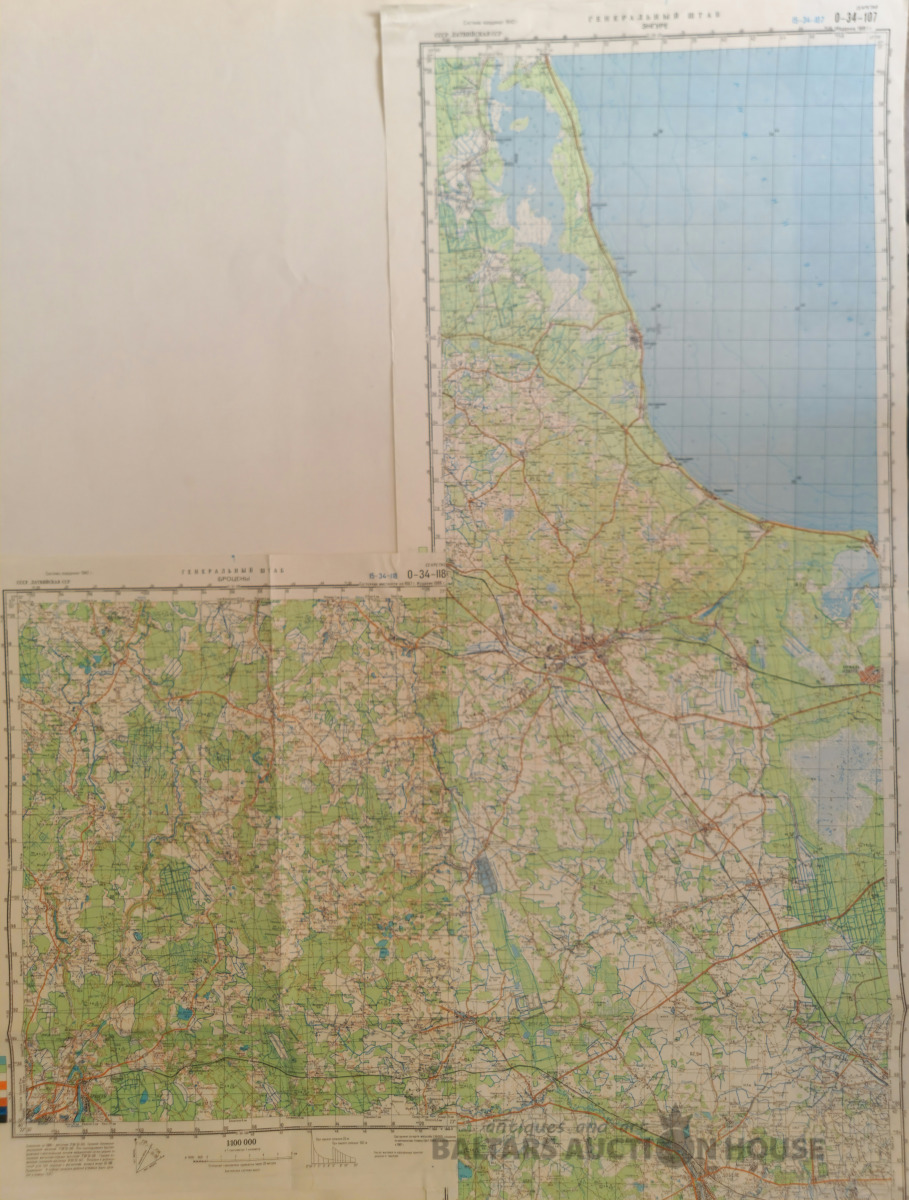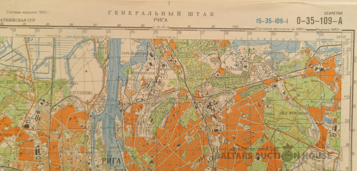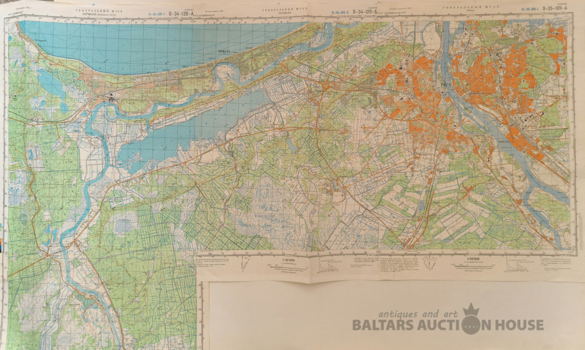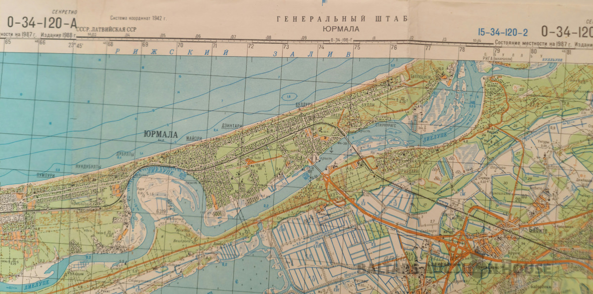 Slepenā "Ģenerālštāba karte" - Jūrmala, Jūrmala un Rīga. 96x82cm