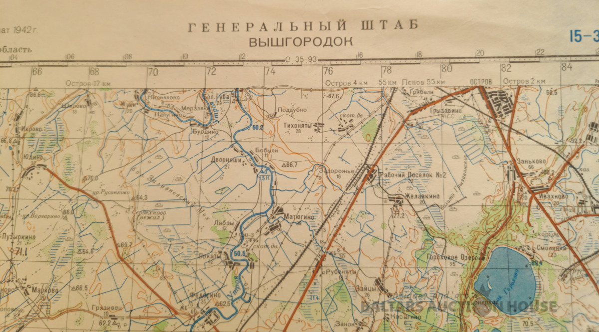 Slepenā "Ģenerālštāba karte" - Pitalovo un Višgorodok. 66x82cm