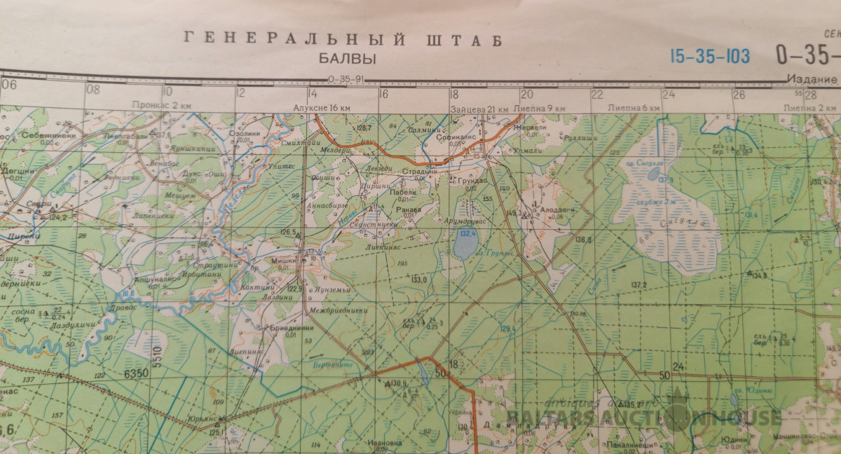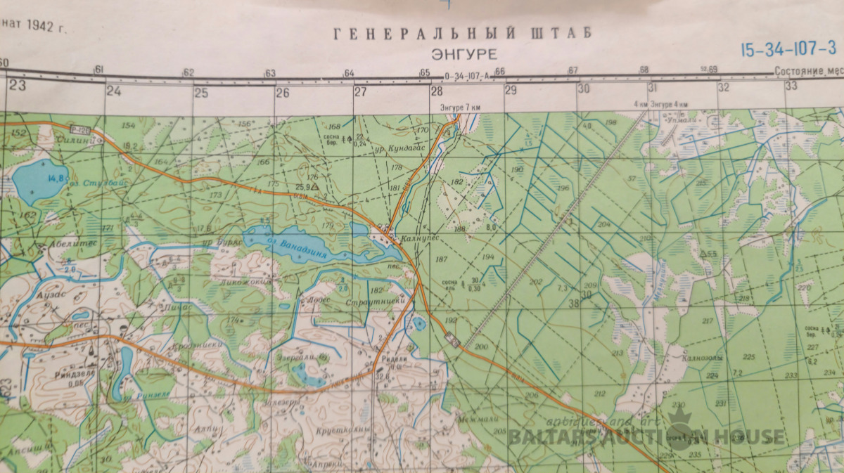 Slepenā "Ģenerālštāba karte" - Brocēni un Engure 66x120cm