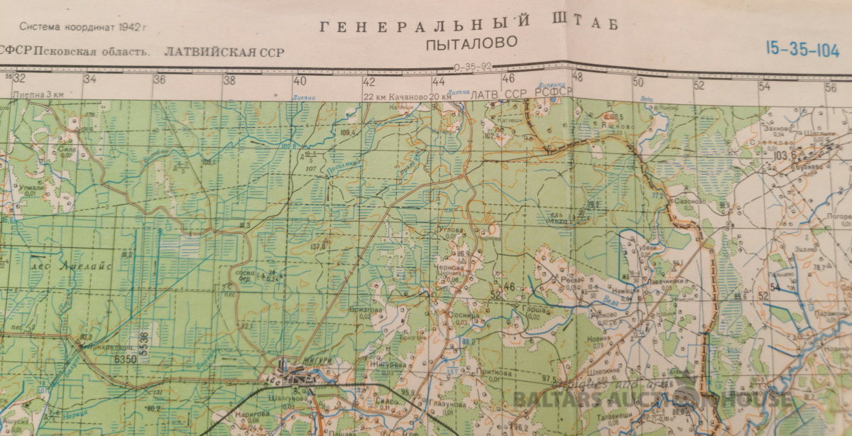 Slepenā "Ģenerālštāba karte" - Balvi, Pitalovo un Višgorodok. 83x95cm