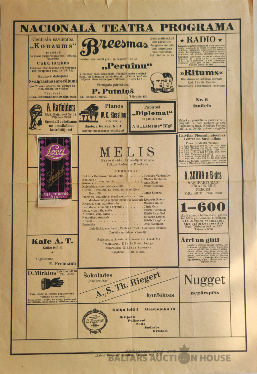 Nacionālā teātra programma ar reklāmām.