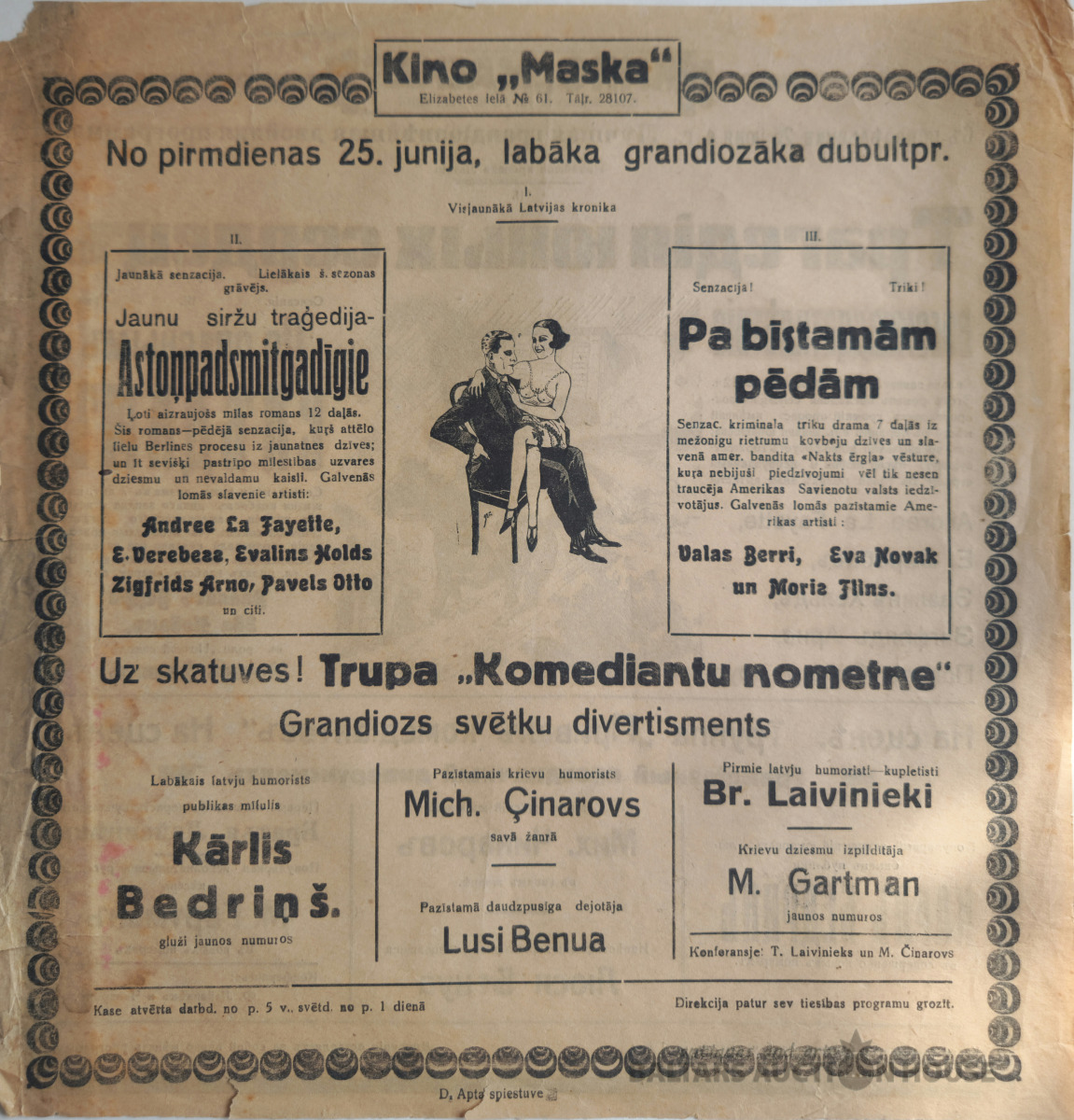 Kino "Maska" reklāmas lapa