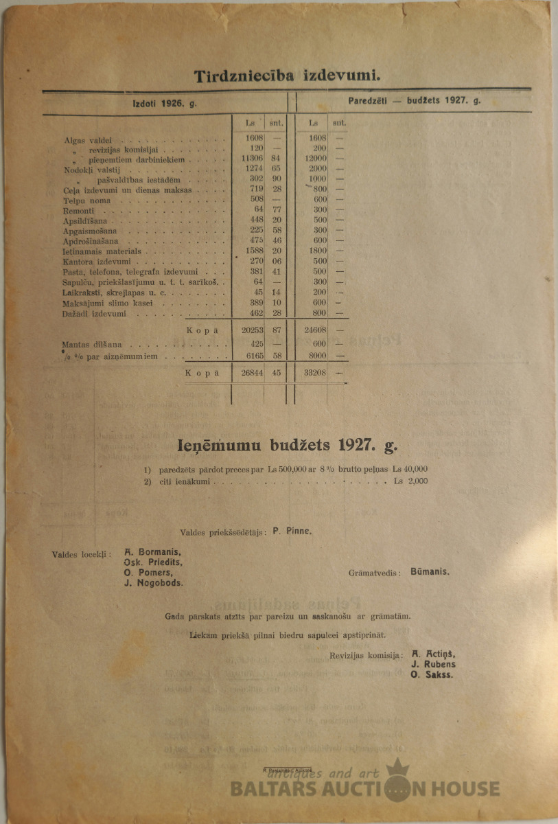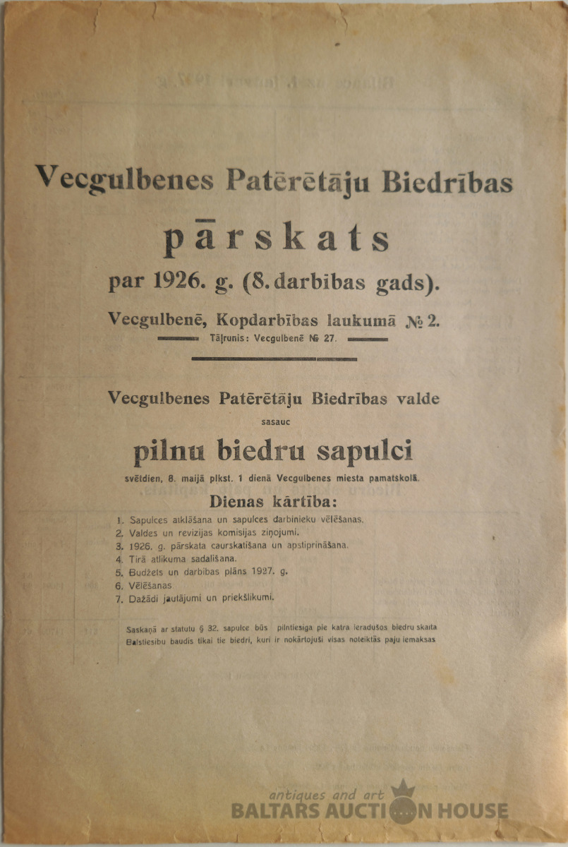 Vecgulbenes patērētāju biedrības pārskats par 1926.g.
