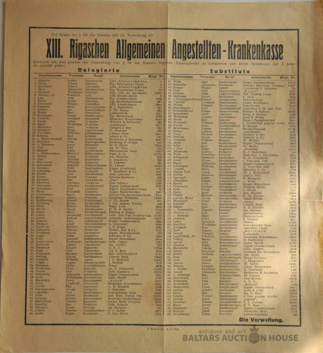 "13. Rīgas vispārējā darbinieku veselības apdrošināšana". R. Ruetz & Ko Rīga