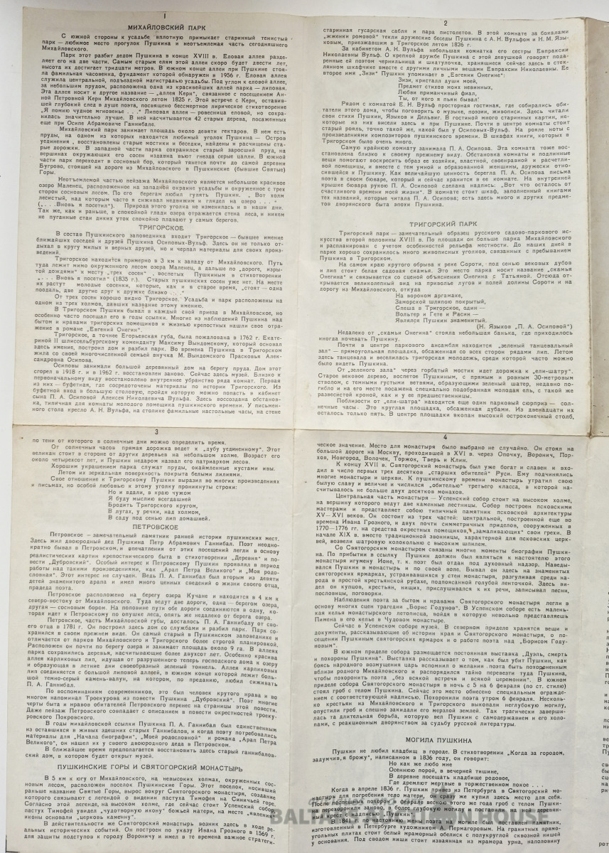Туристическая схема. Пушкинский заповедник.