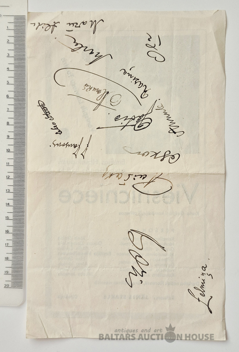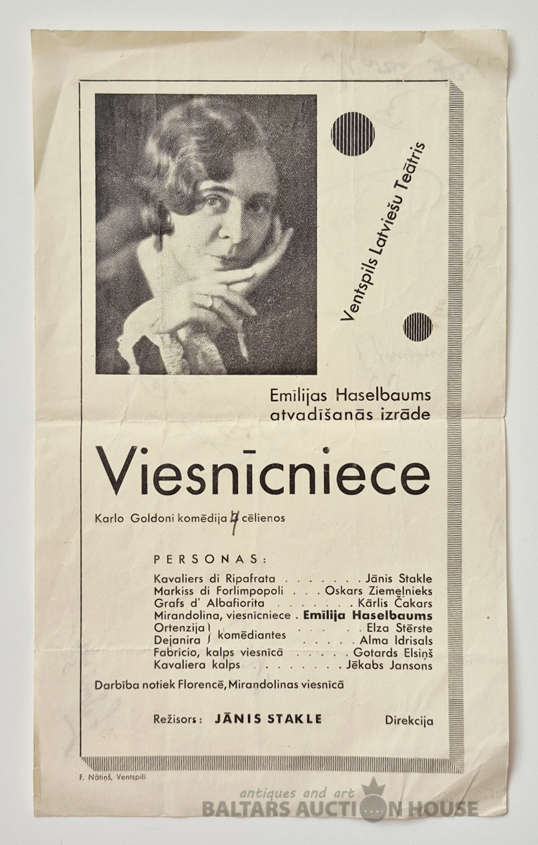 Reklāma Ventspils Latviešu Teātra izrāde "Viesniece"ar parakstiem.