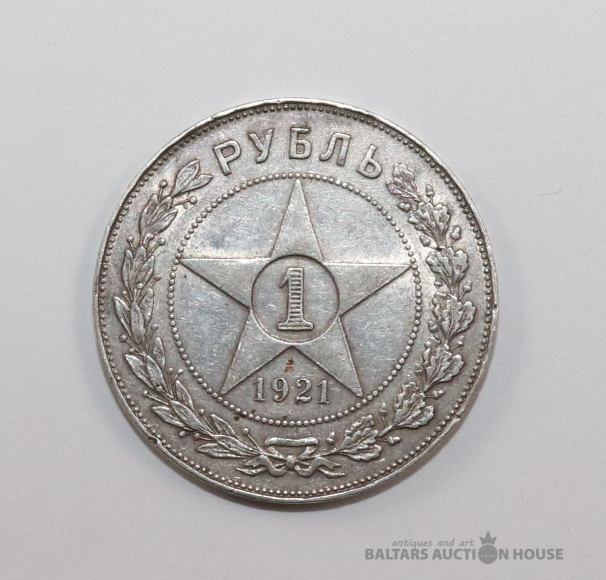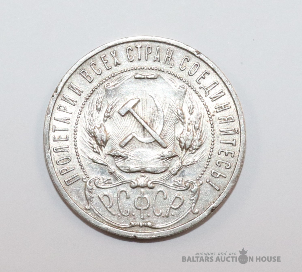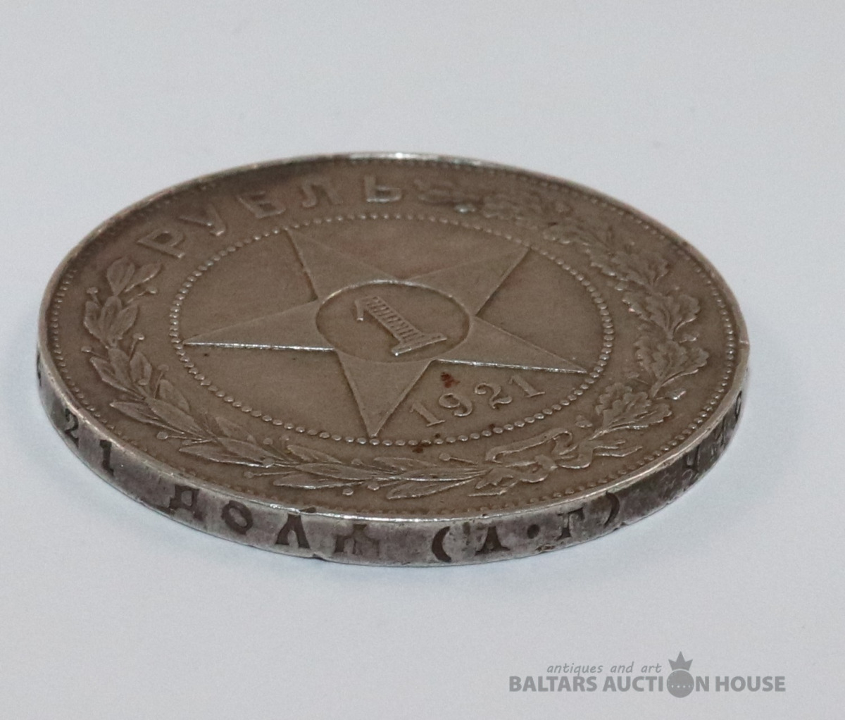 Monēta 1 rublis, 1921. g. Sudrabs, svars 20 g. А.Г.