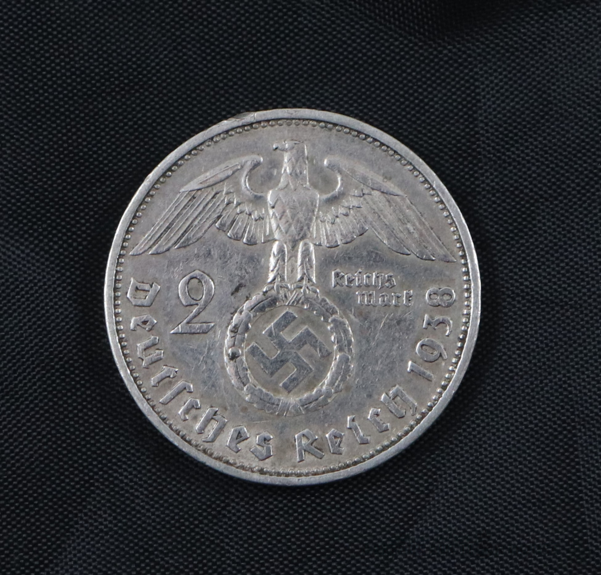 Monēta 2 markas, 1938. g. Sudrabs. Svars 8,03 g