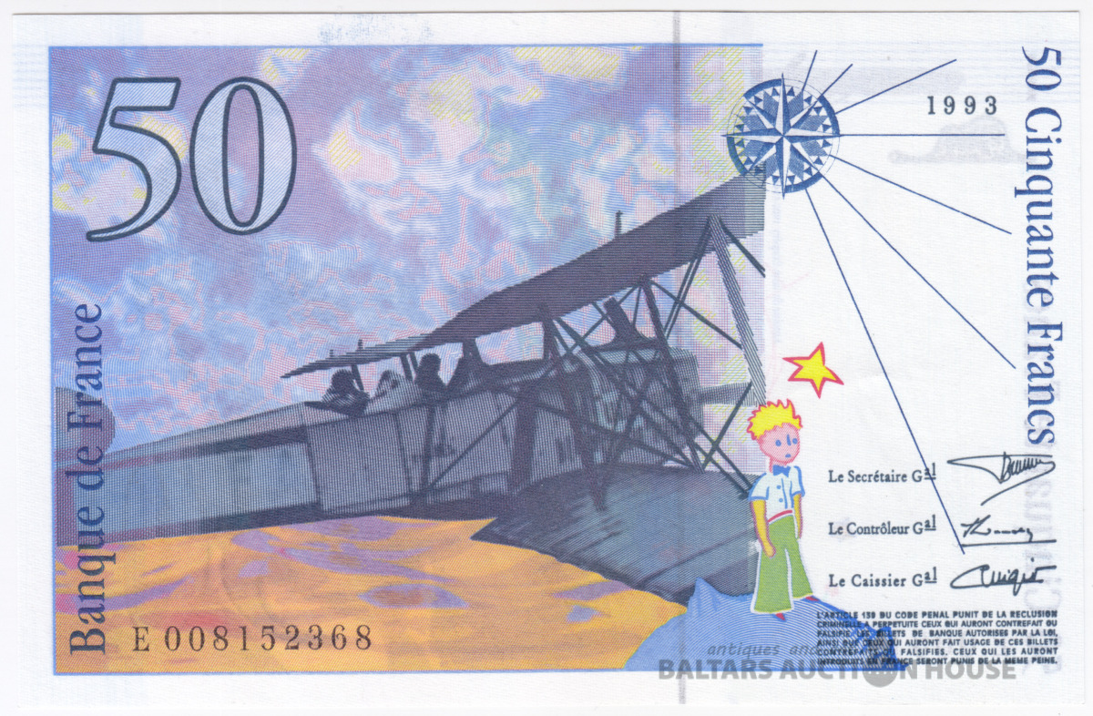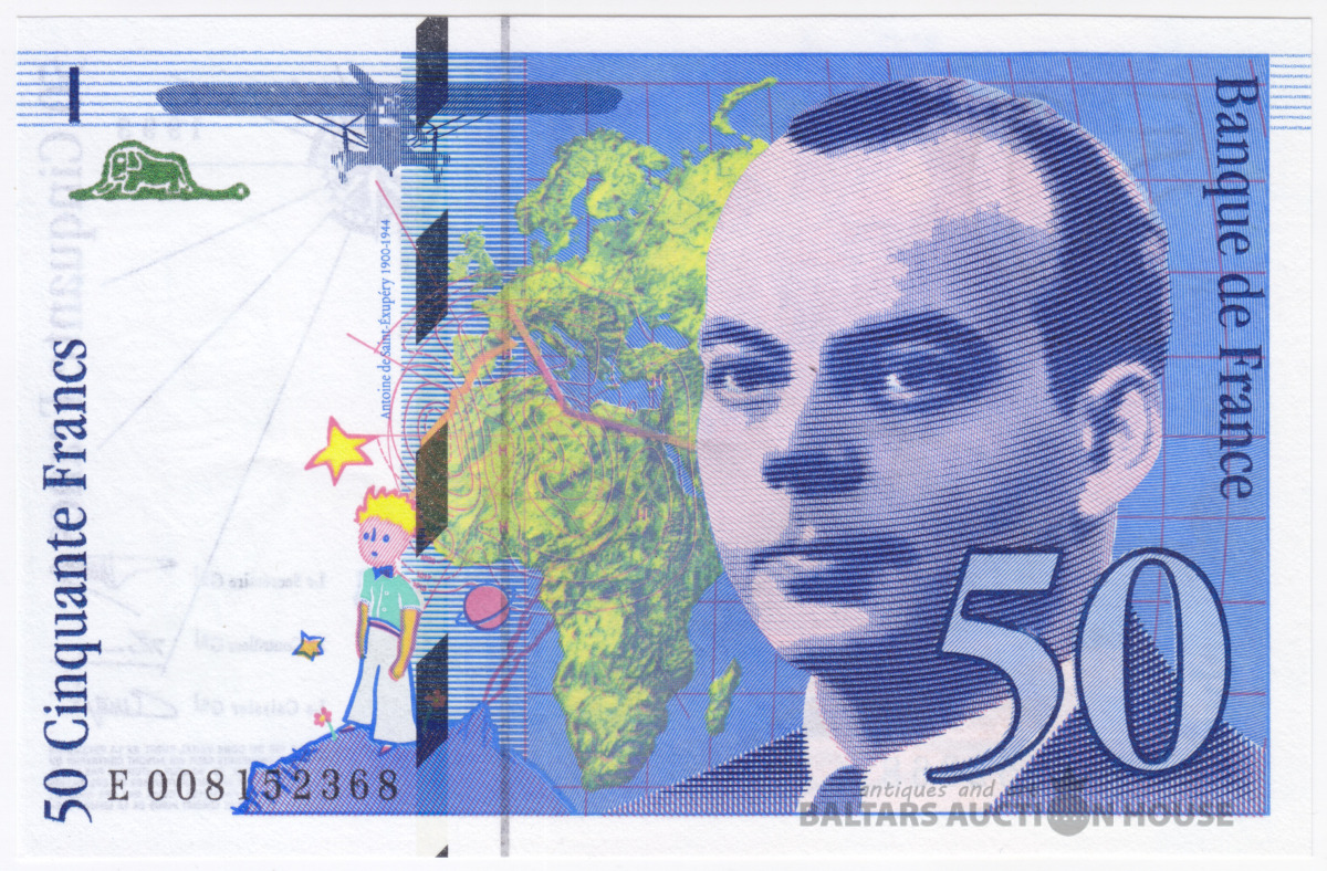 Banknote, Francija, 50 Franki, 1993, Antuāns de Sent-Ekziperijs, UNC
