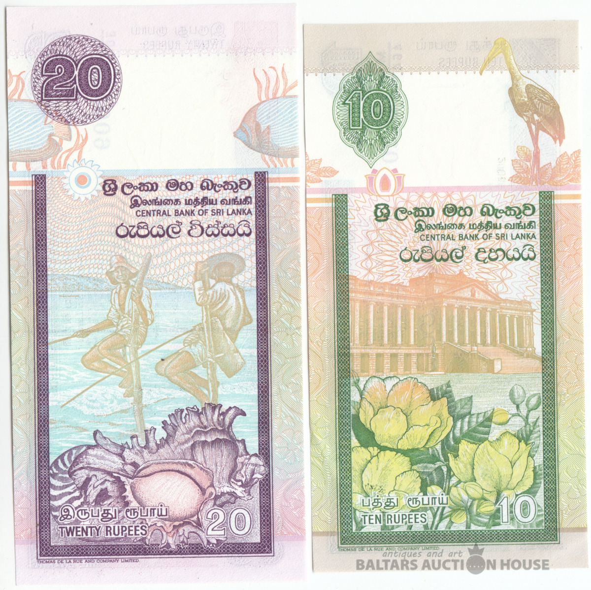 Banknotes, Šrilanka 10, 20 Rupijas 2005, UNC