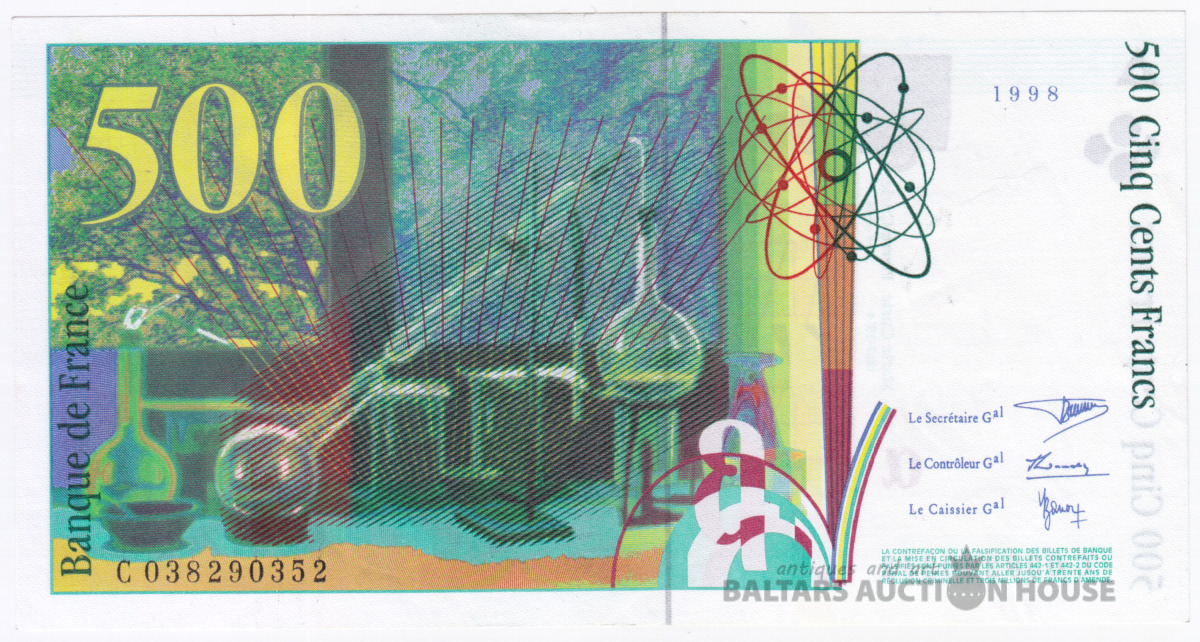 Banknote, Francija, 500 Franki, 1998, Pjers un Marija Kirī, UNC