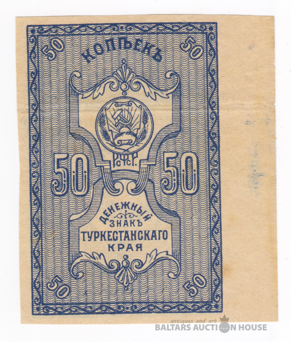 Banknote, Krievija/Russia, 50 kop. 1918(ND), Turkestan, aUNC,Rets