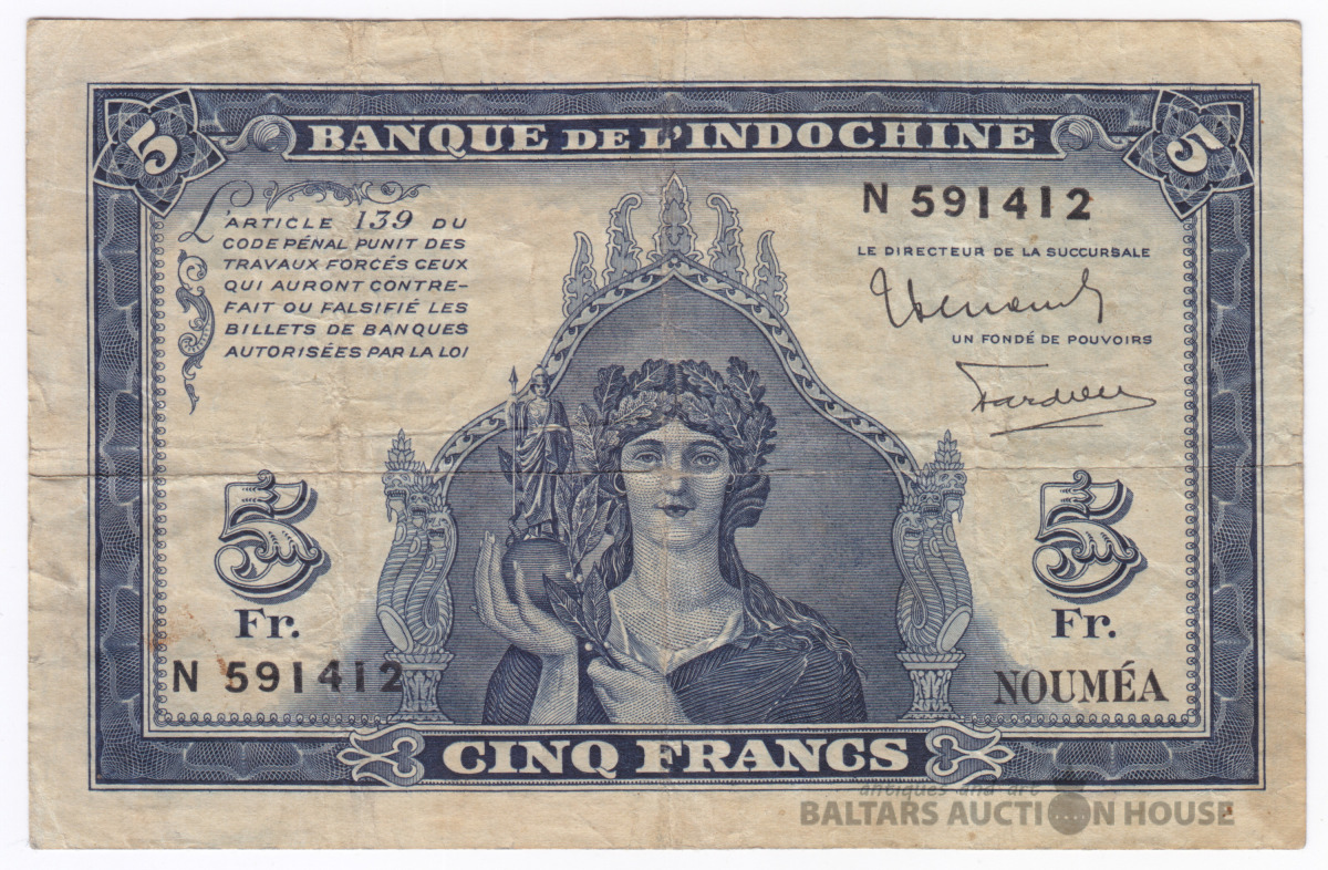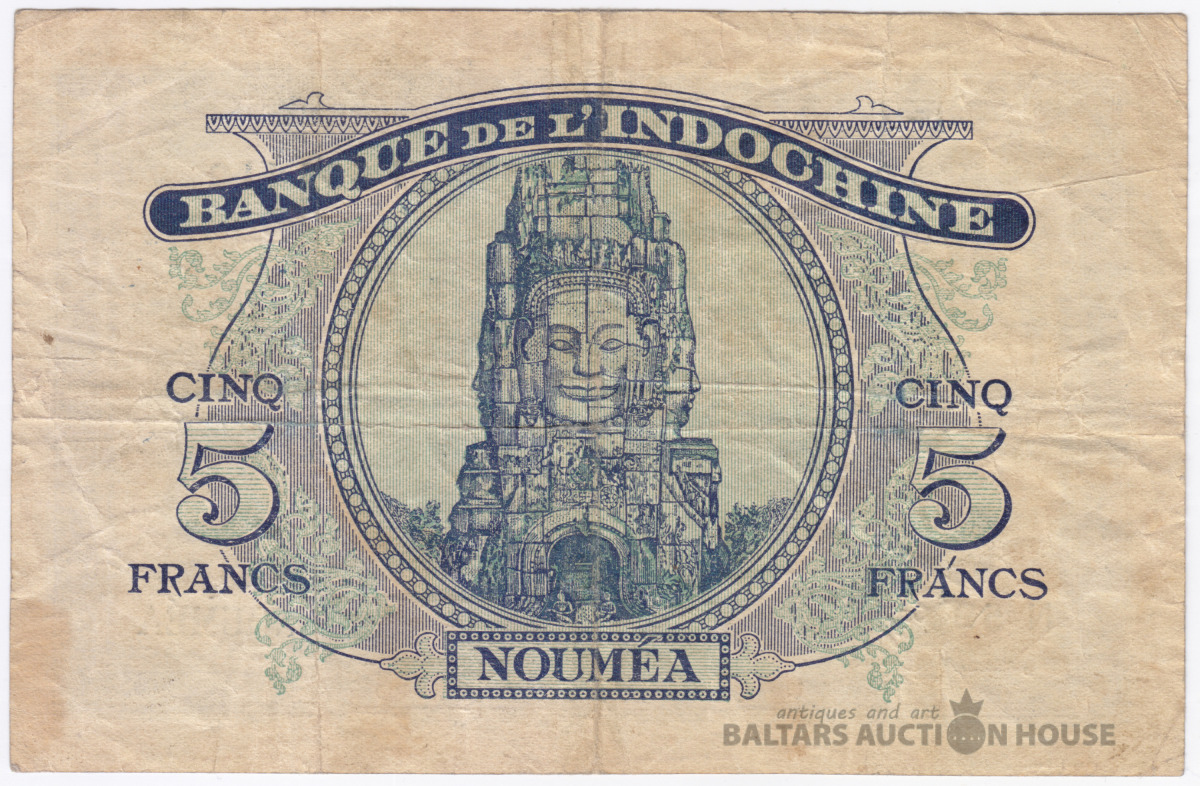 Banknote, Jaunkaledonija, 5 Franki (1944), VF+/aXF,